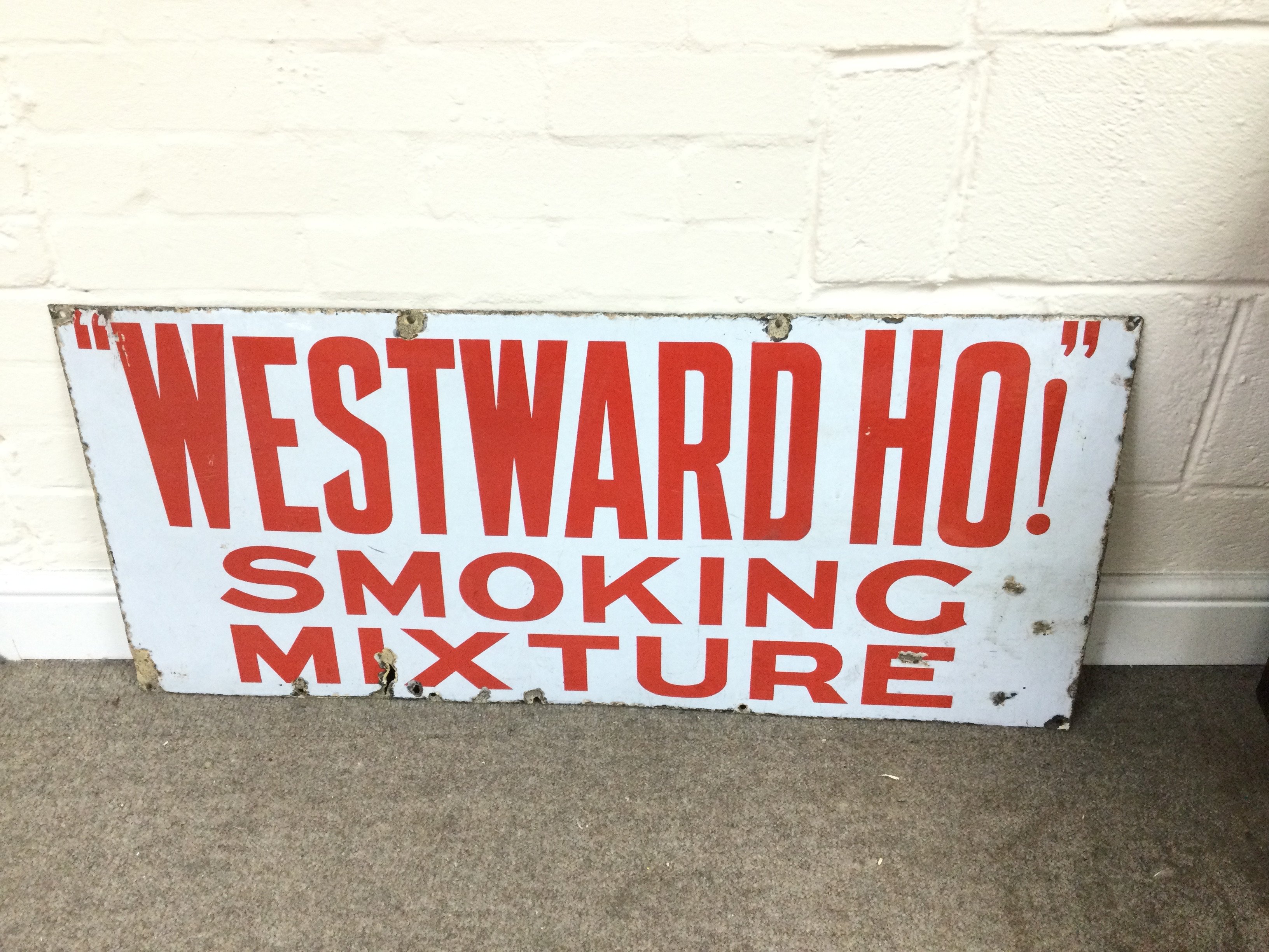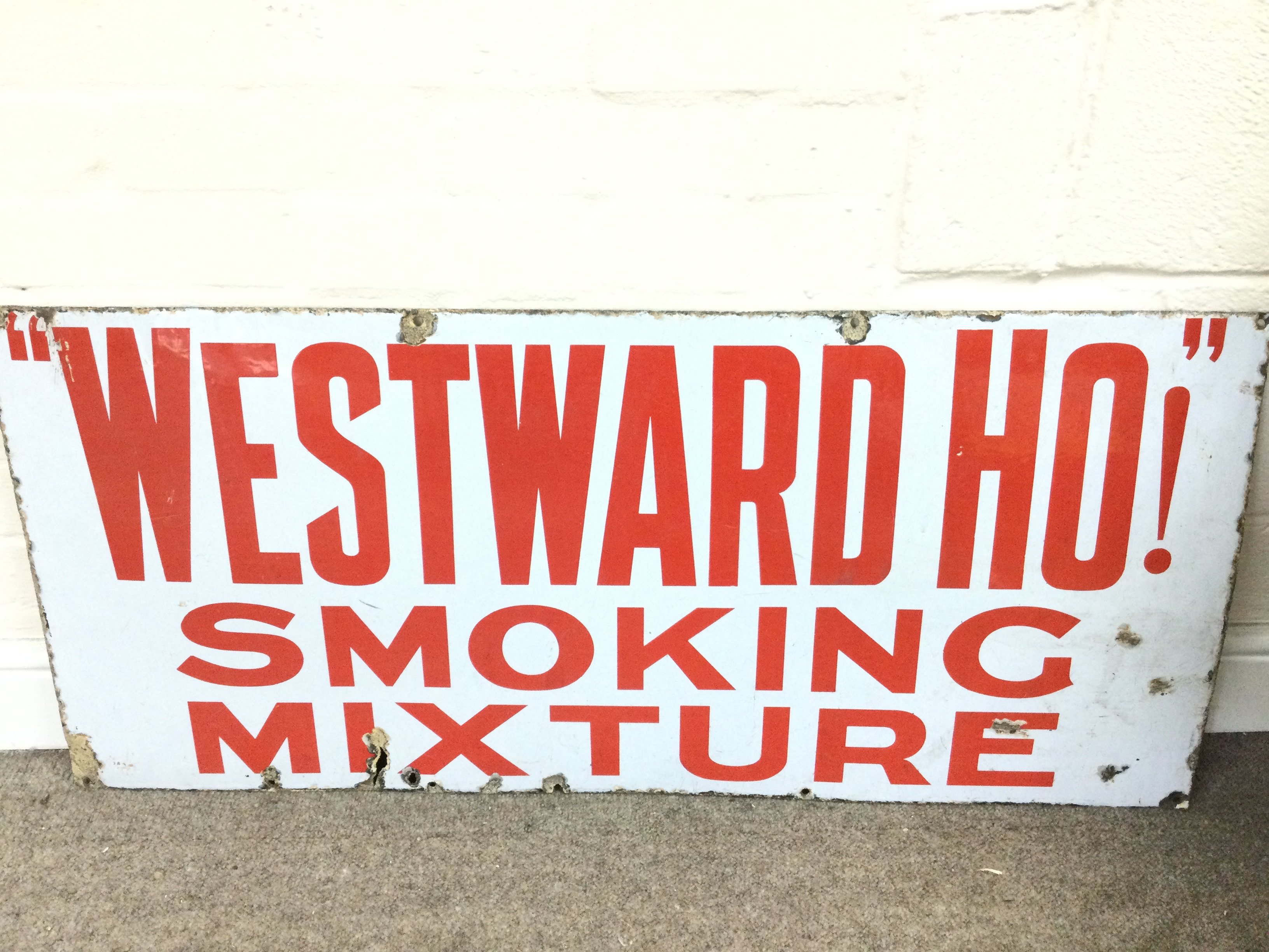 ENAMEL WESTWARD HO SMOKING MIXTURE SIGN 40 X 18 inches approximately
