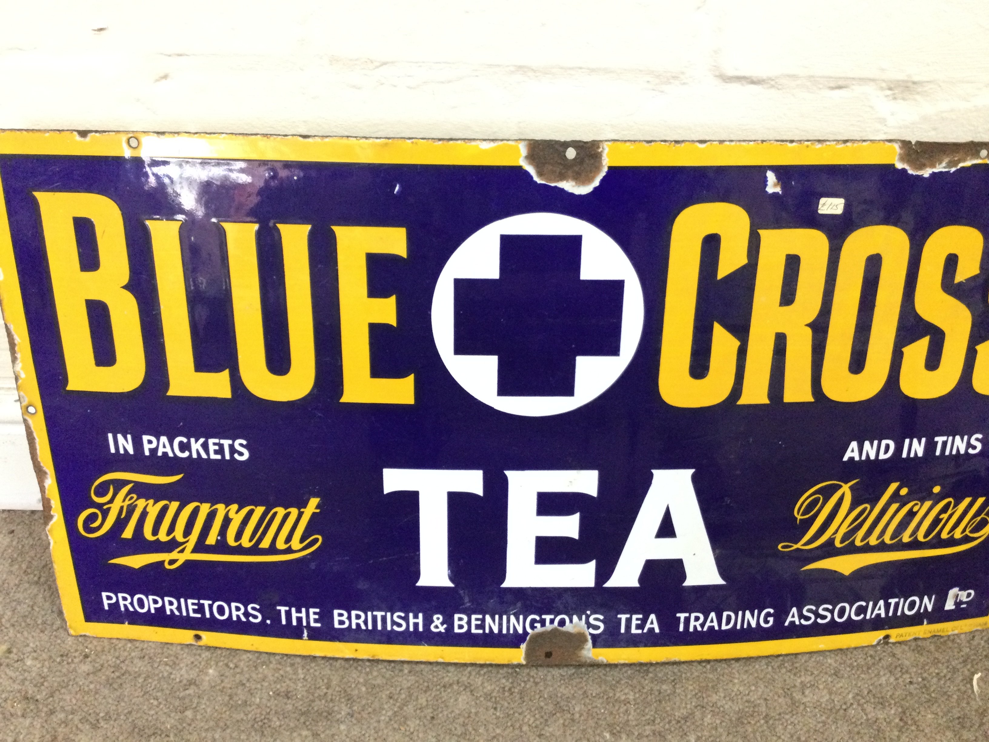 Blue Cross' Tea Enamel Sign 28 x 15 inches approximately