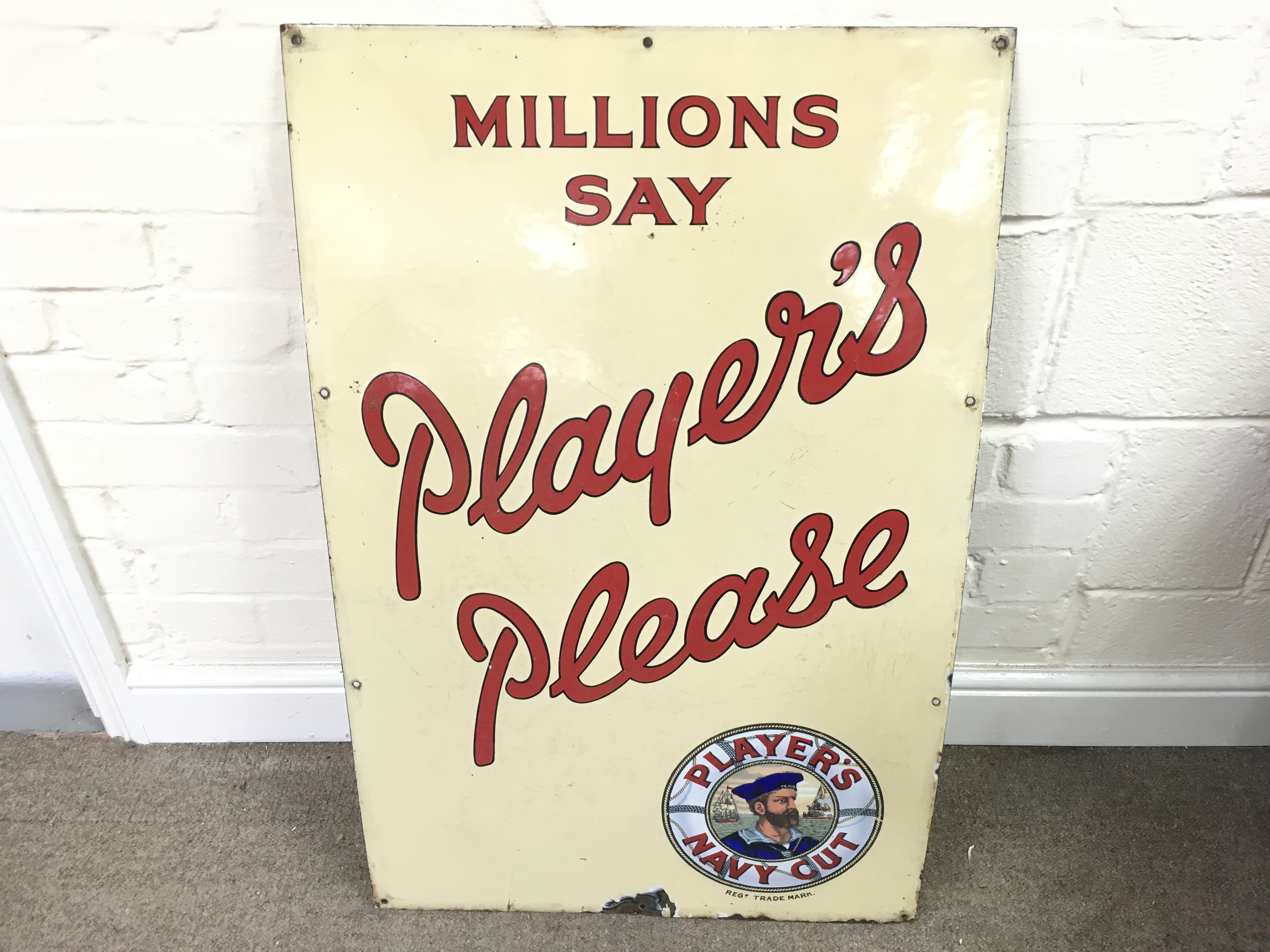 Millions Say Players Please Cigarette Enamel Sign 22.5 x 34.5 inches approximately