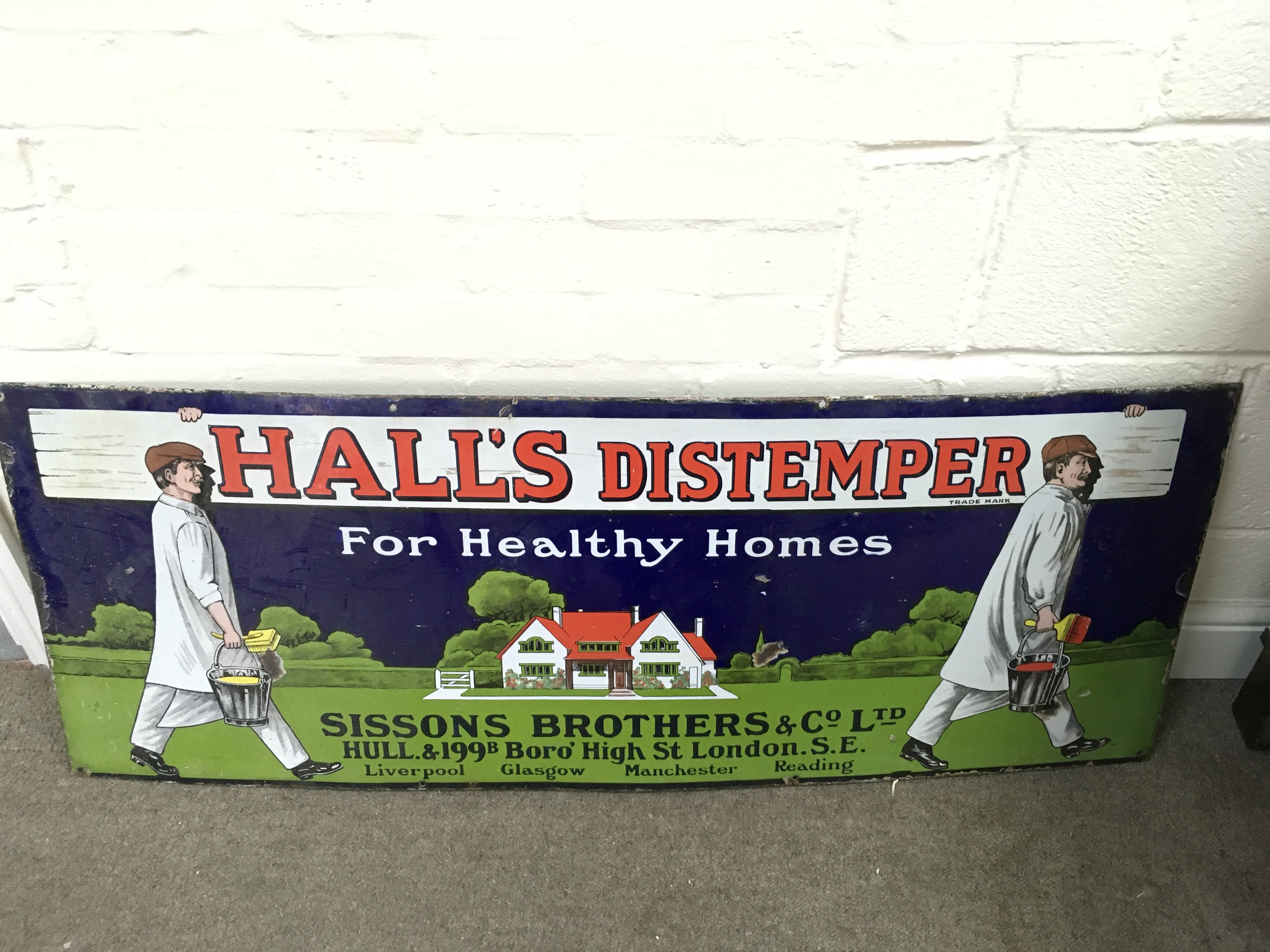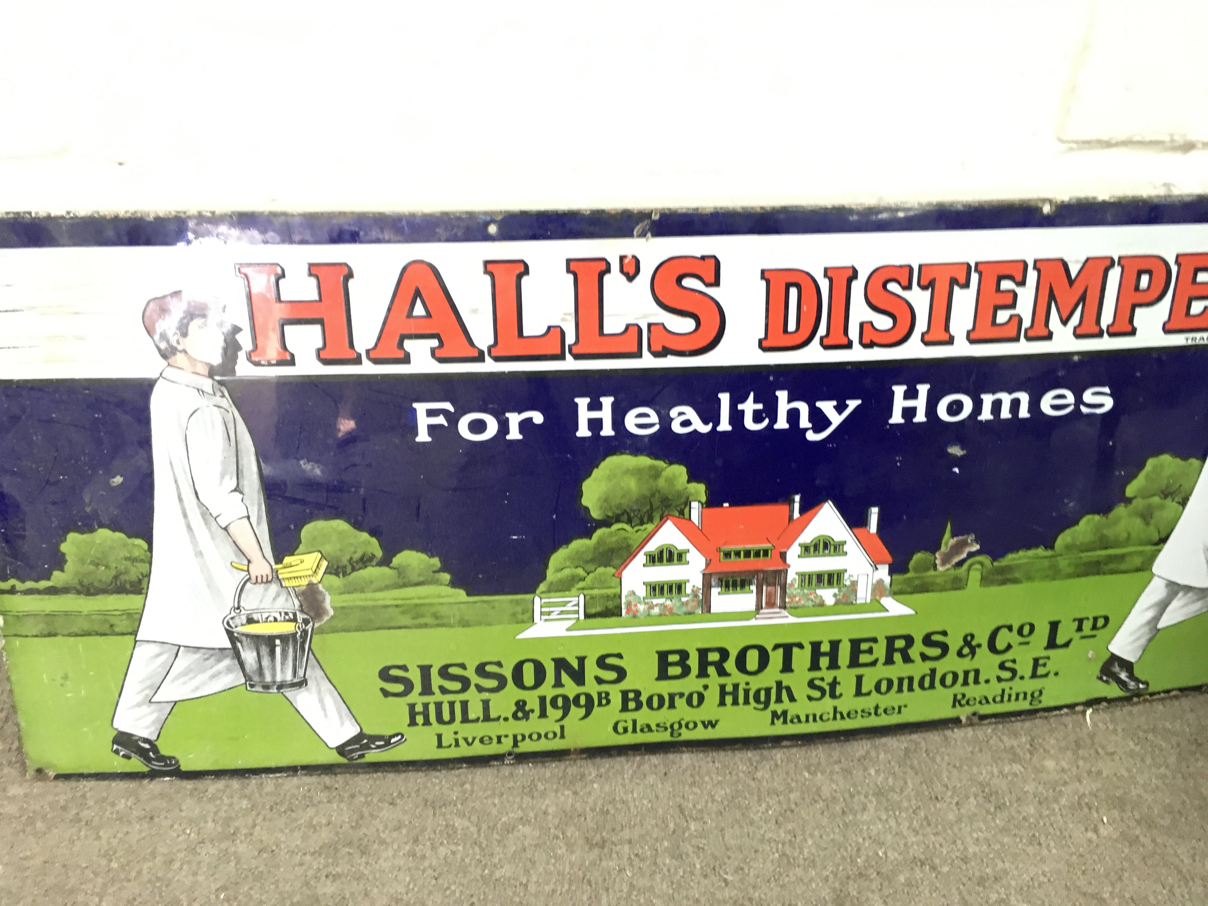 Hall's Distemper Enamel Advertising Sign 48 x 18 inches approximately