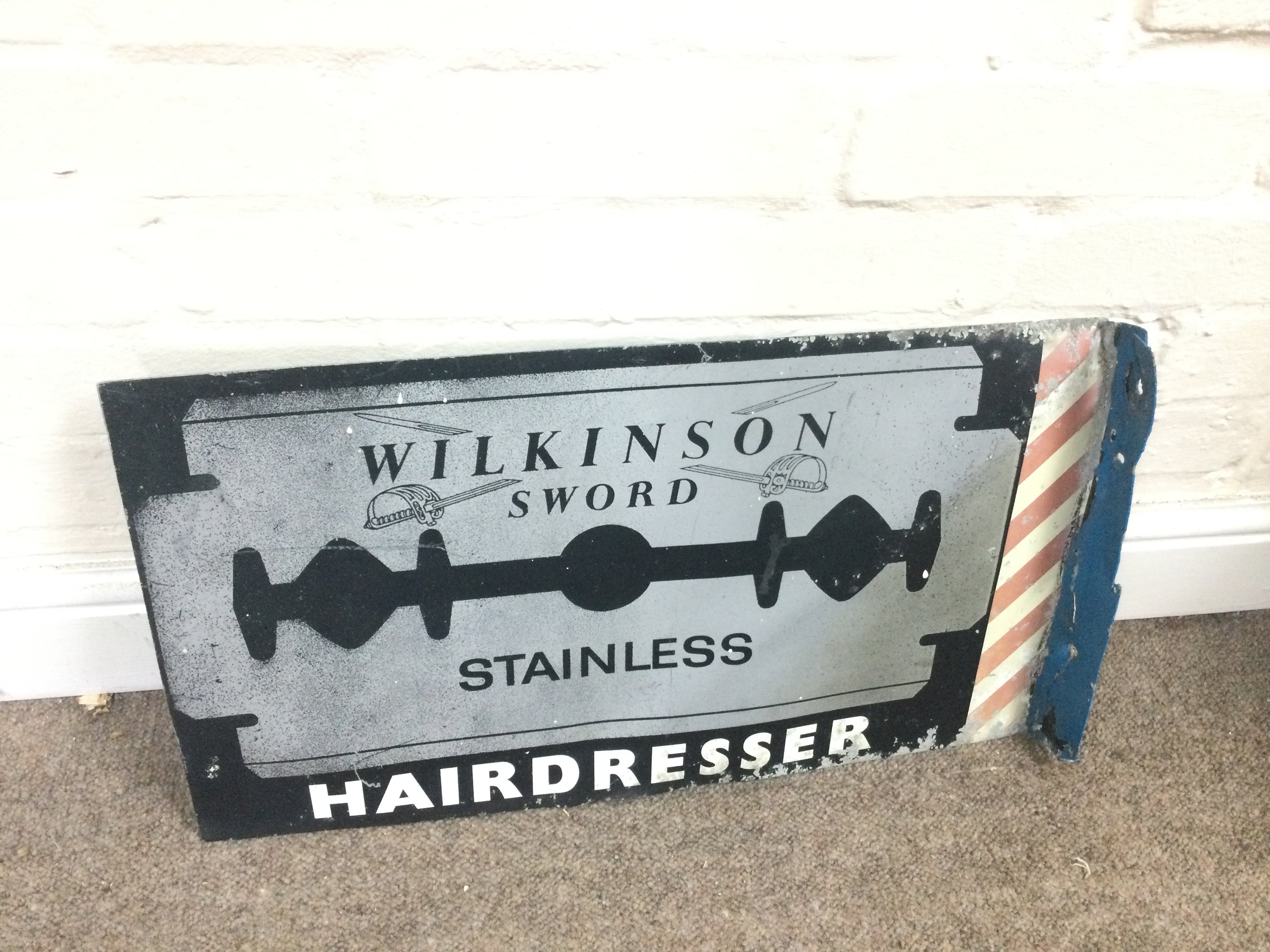Aluminium Wilkinson Sword Hairdresser Sign 22 x 12.5 inches approximately