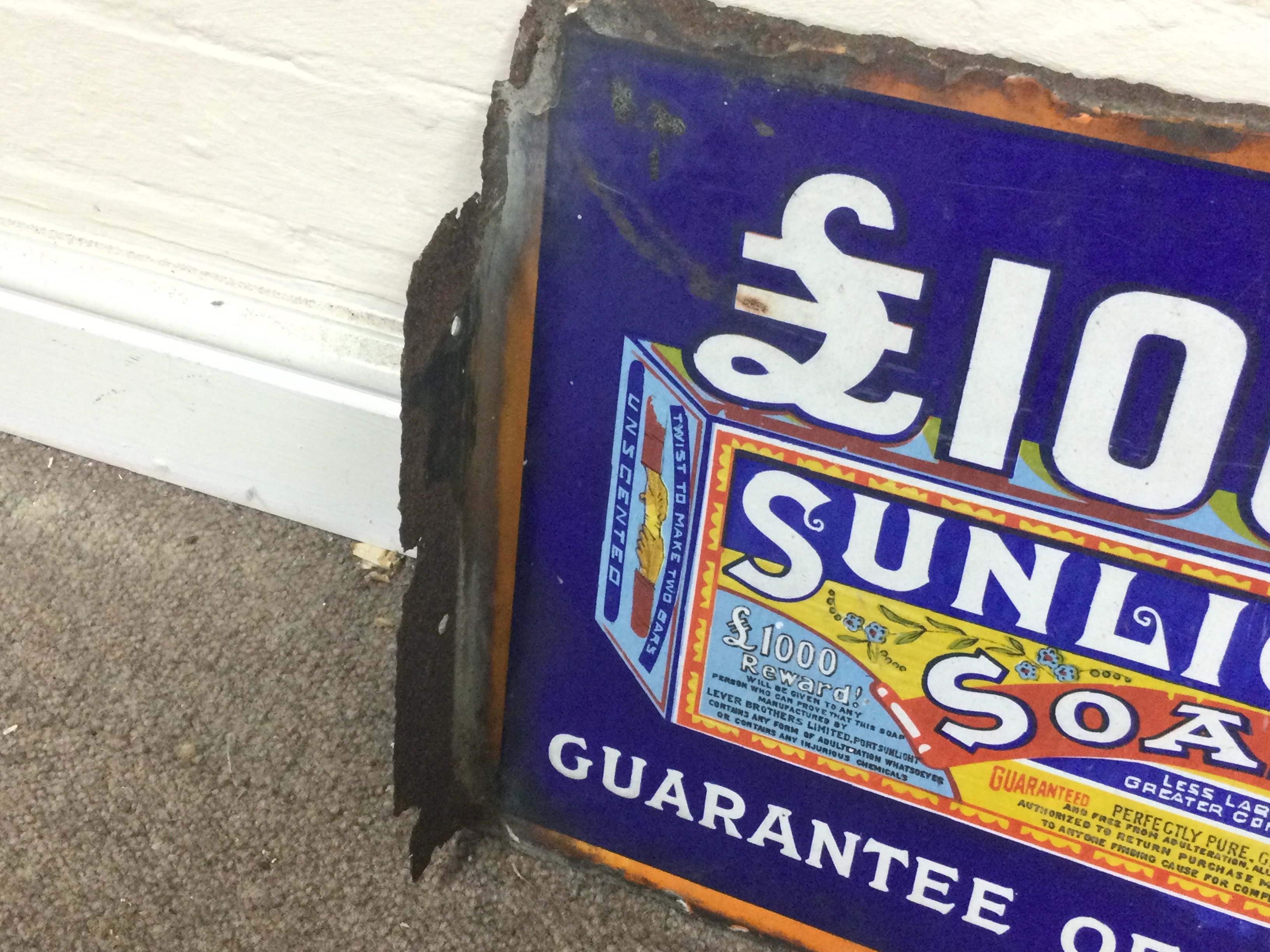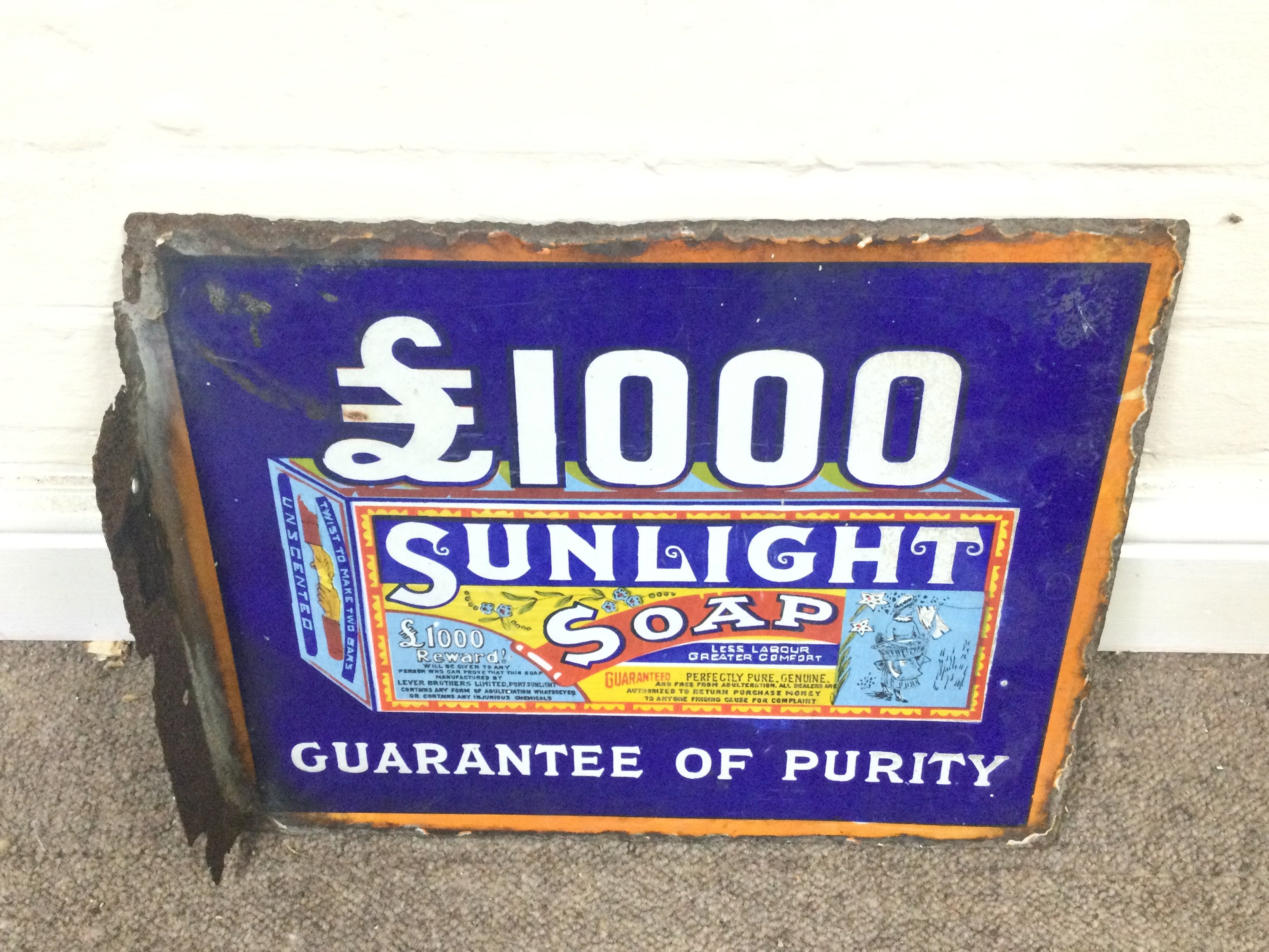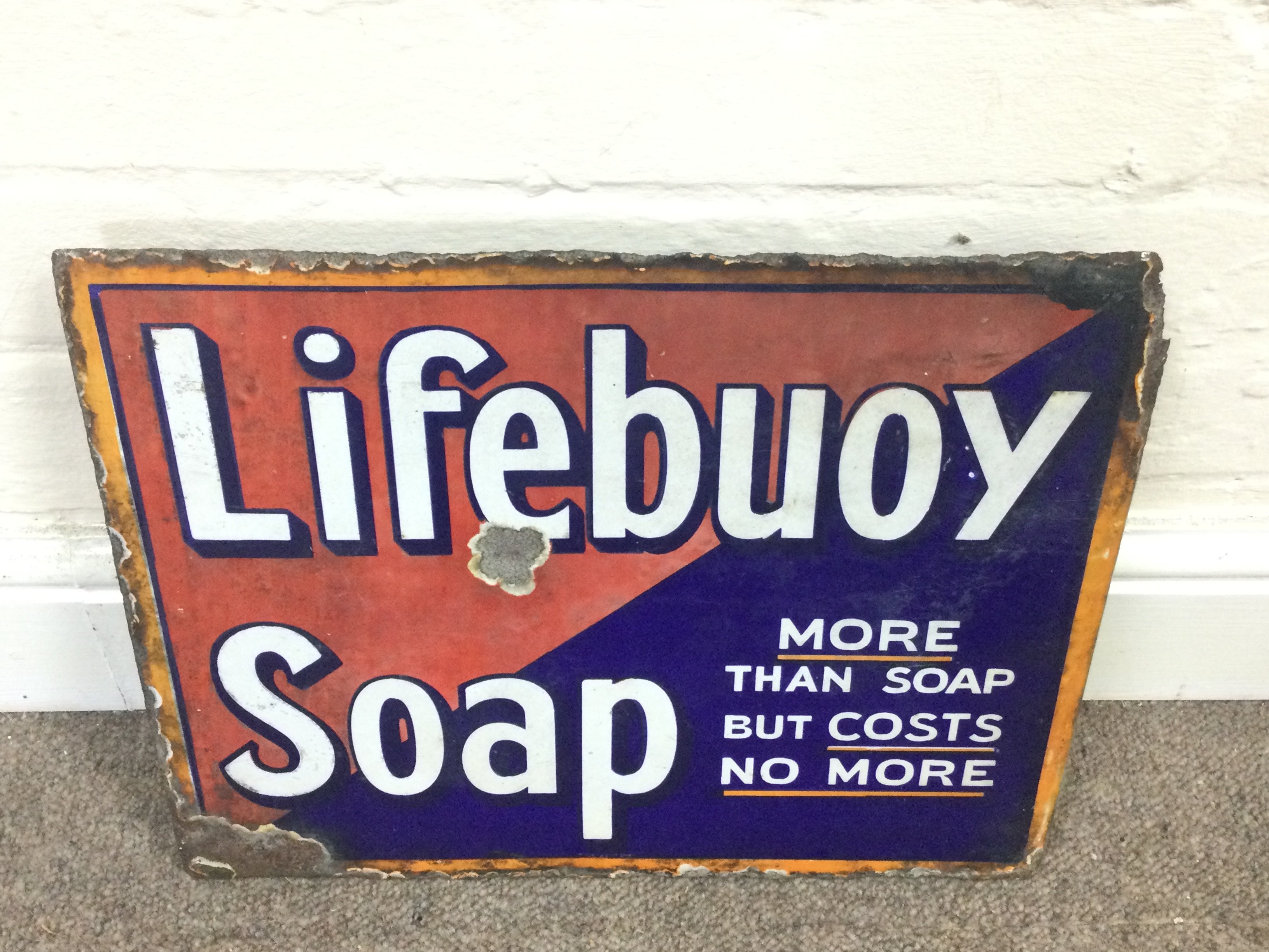 Sunlight Soap and Lifebuoy soap flanged enamel sign. 15 x 12 inches approximately