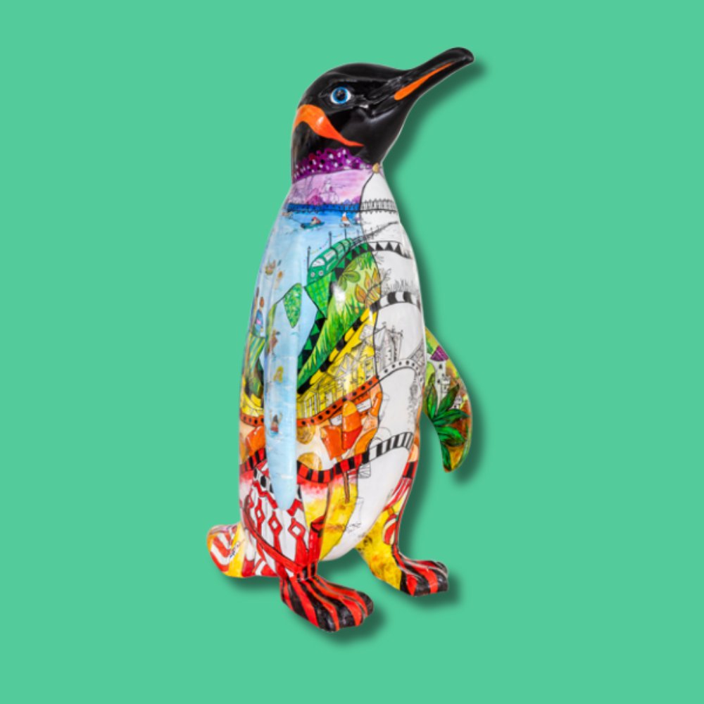 Harmony - Sponsor: loveit coverit / Artist: Sally Chinea / Harmony reflects a lifetime of living, socialising, working, raising a family, and enjoying the many sides of Southend, a town she loves. Southend is not only a seaside destination filled with fun, colour,and entertainment but also home to beautiful gardens, parks, rich history, and vibrant arts venues, all thriving in harmony despite challenging conditions. Sally is a local artist known for exhibiting and street art, specialising in site-specific works and community engagement. She transforms found, discarded objects into artworks reflecting history and labour. With 30 years working in education, she leads Arts Award programmes and creative workshops, including those focused on mental health and wellbeing. She also ran the Rochford and Hadleigh Art Trails. - Height 1600mm width 890mm Depth 1090mm weight 30kg
