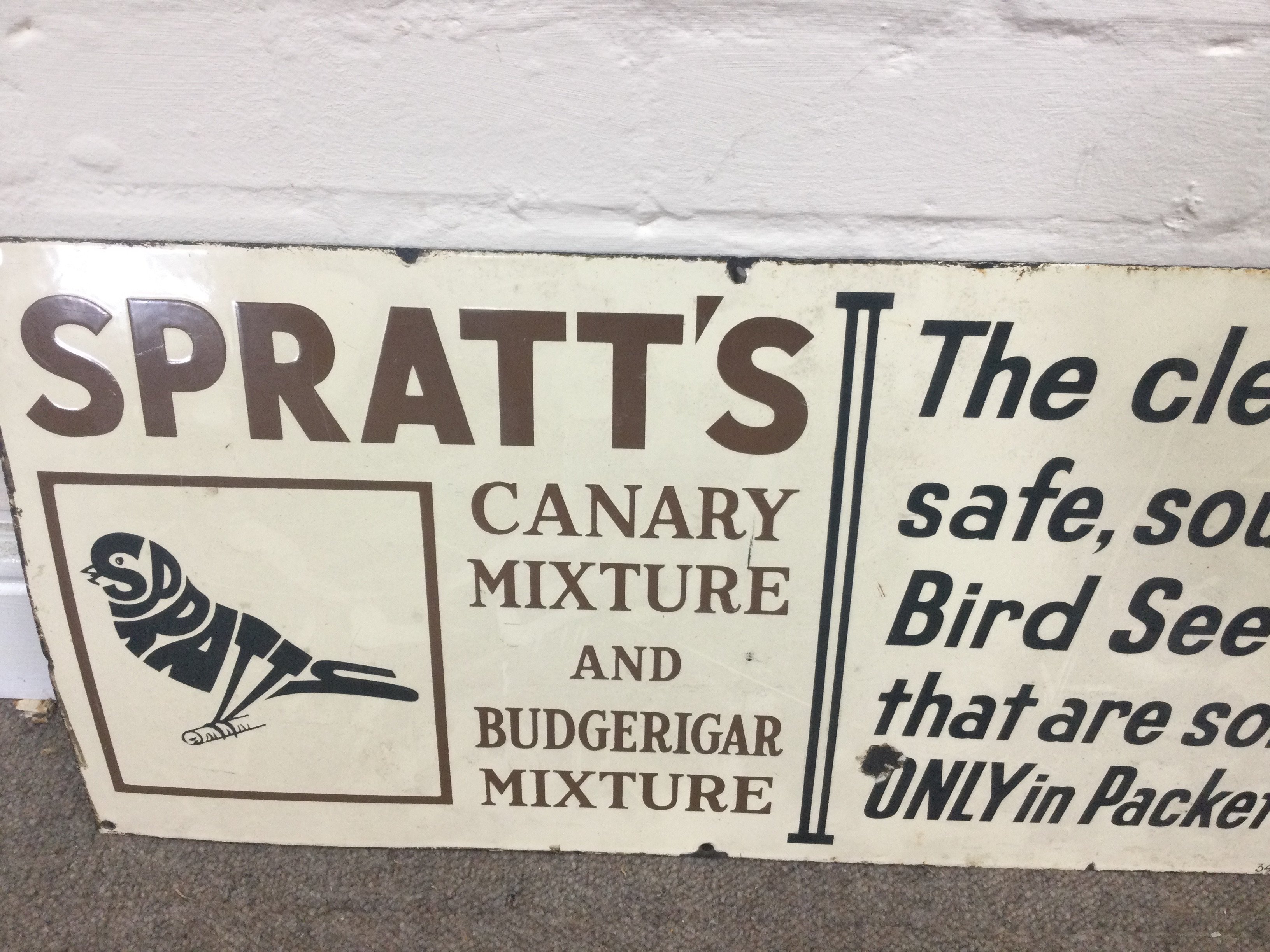 SPRATT'S BIRD SEED ENAMEL SIGN 24 x 12 inches