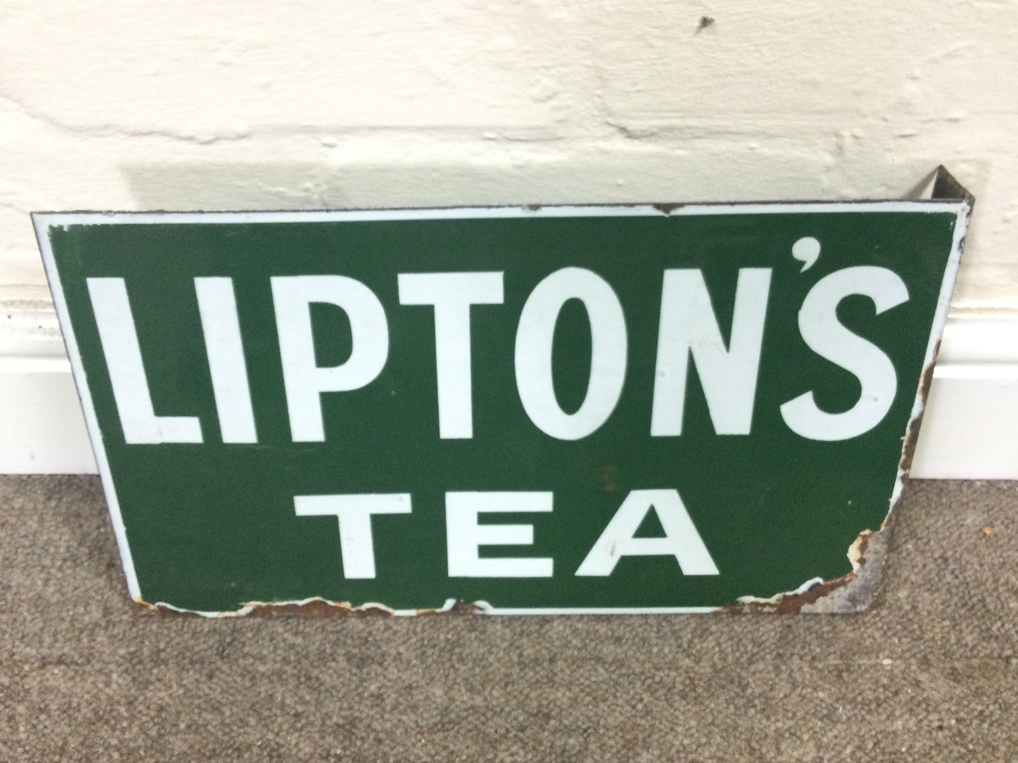 Lipton's Tea, a double sided flanged enamel advertising sign 15 x 9 inches approximately