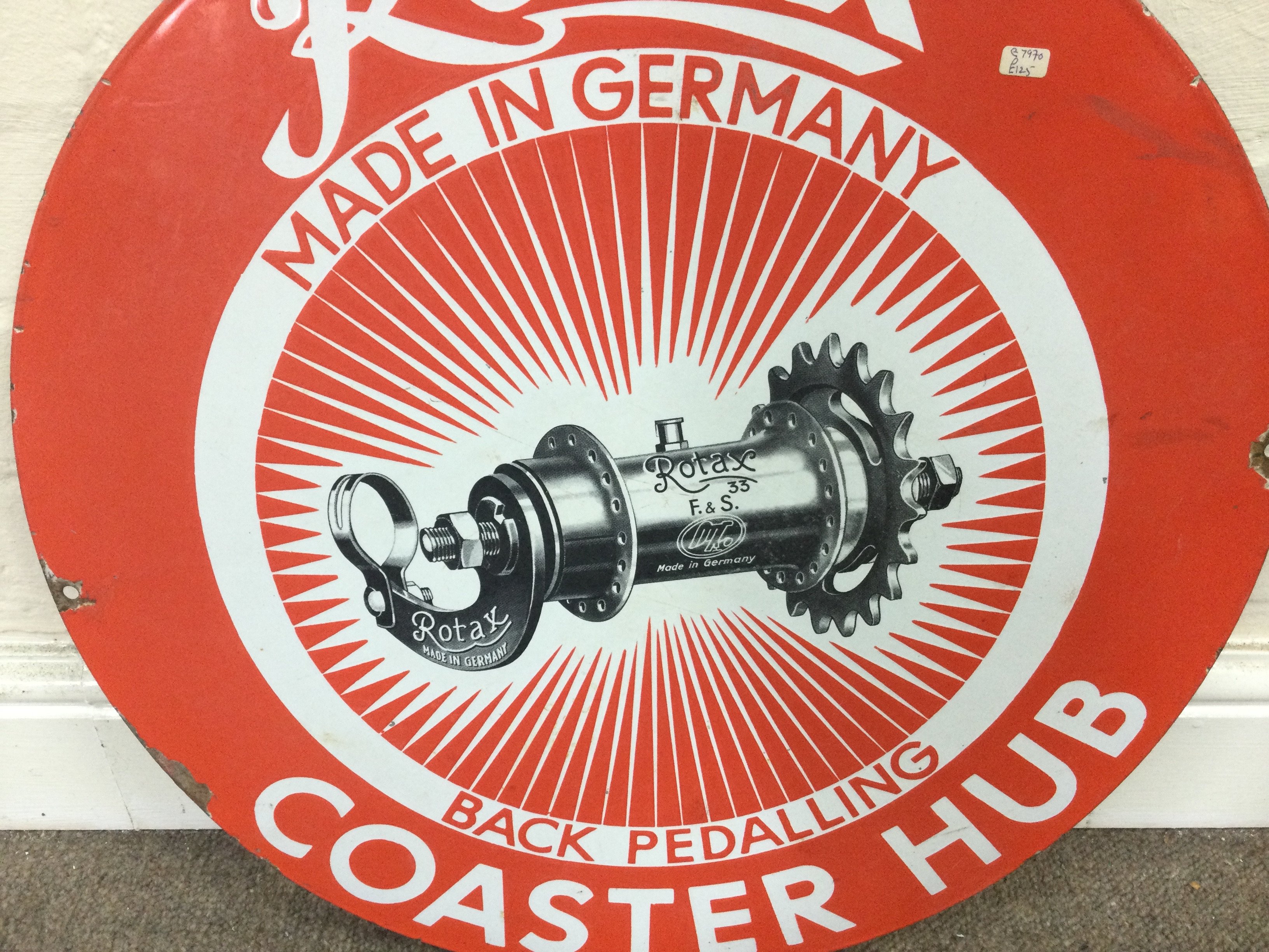 Vintage Enamel Germany Cycle Rotax Coaster Hub Back Pedalli 19 inch diameter
