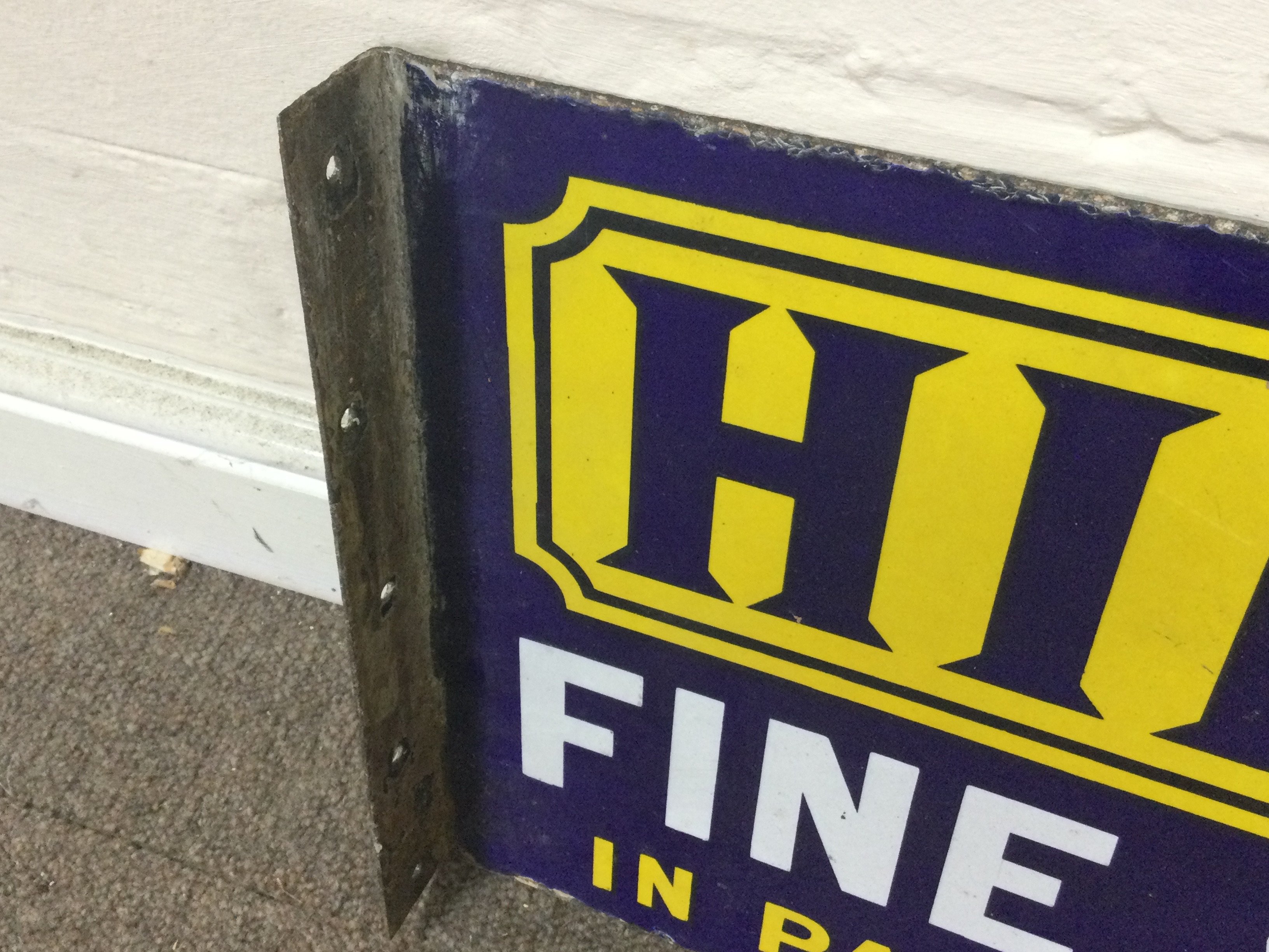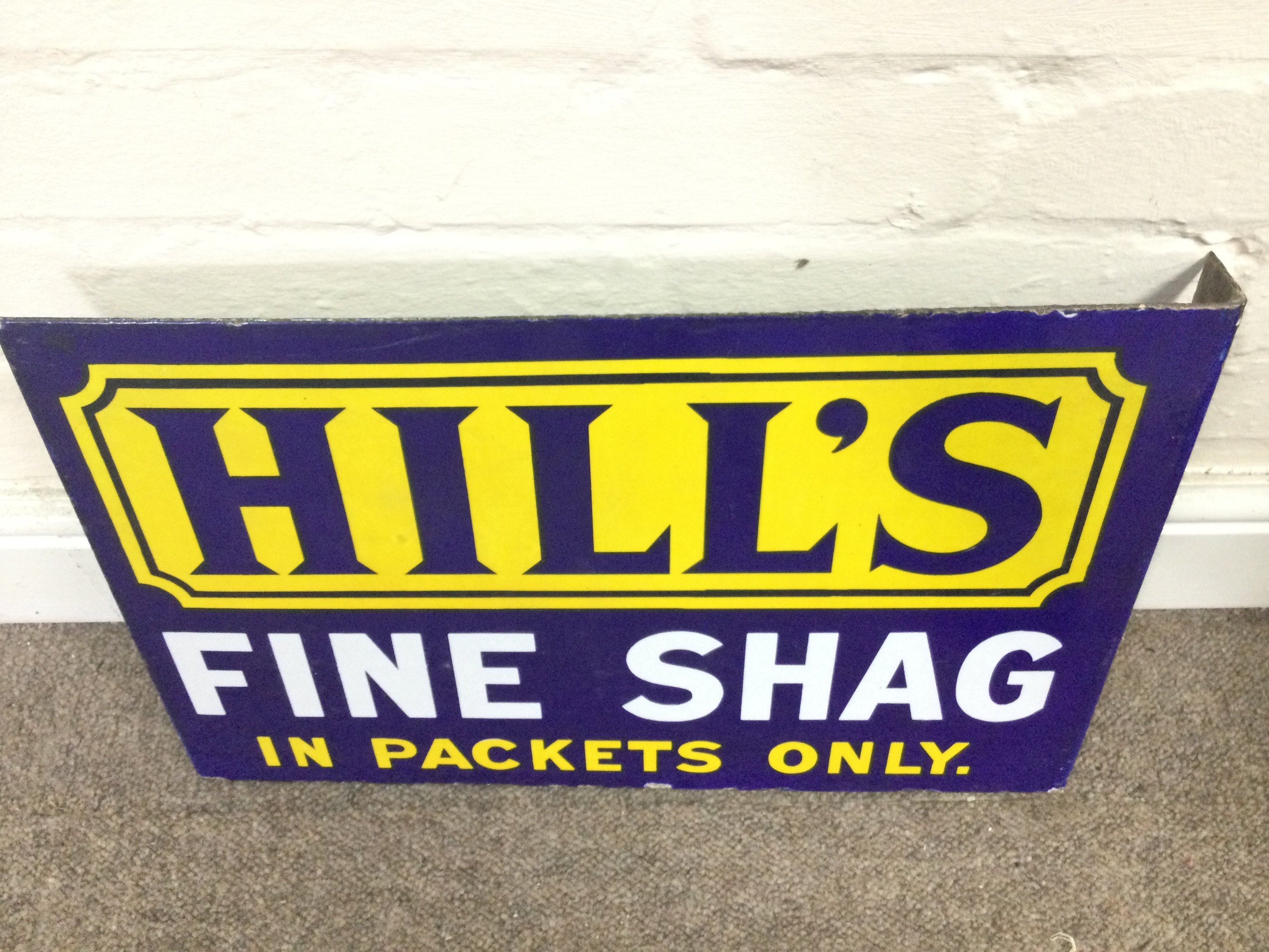 Hills fine shag double sided flanged sign. 18.5 x 12 inches approximately