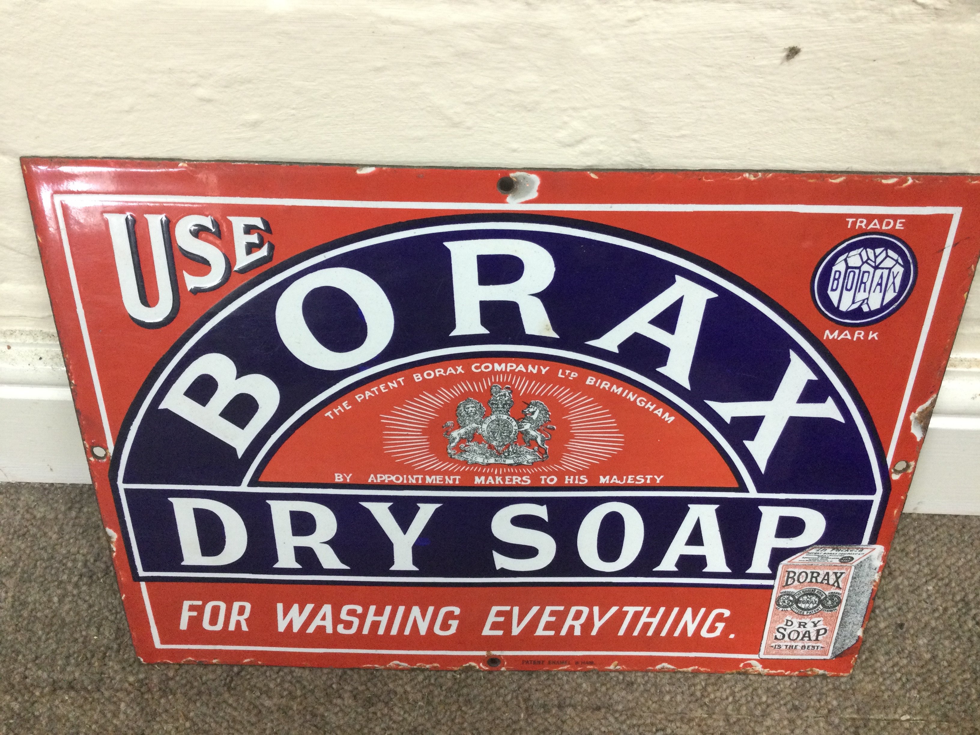 Borax Dry Soap enamel advertising sign 14 x 10 inches approximately