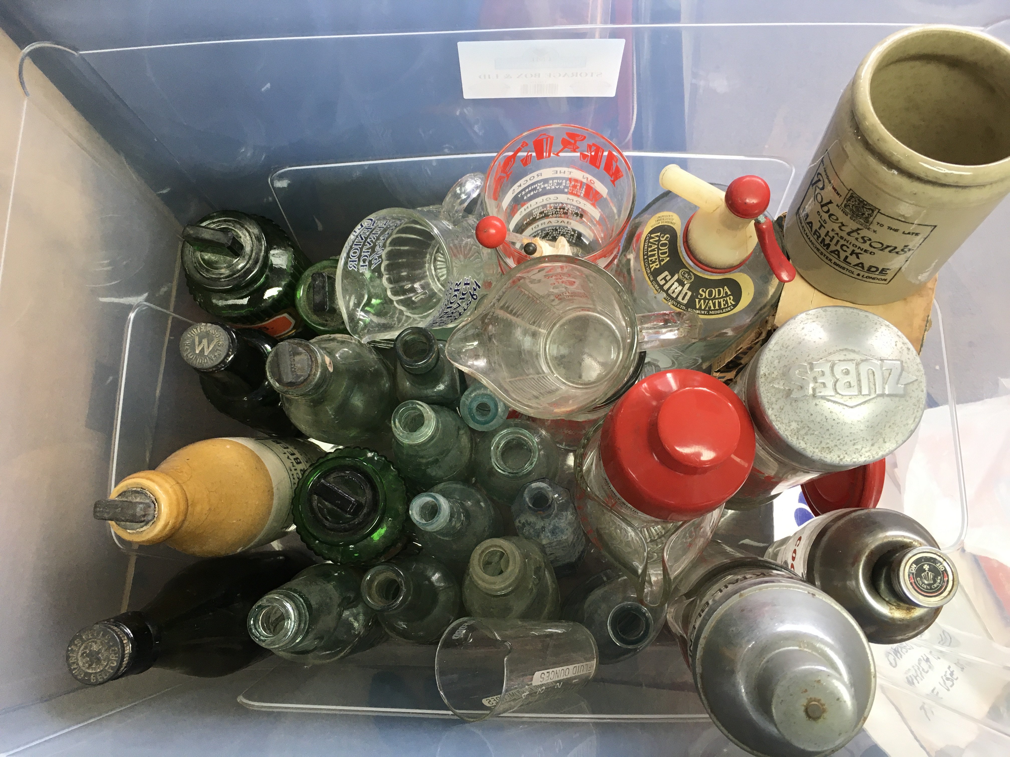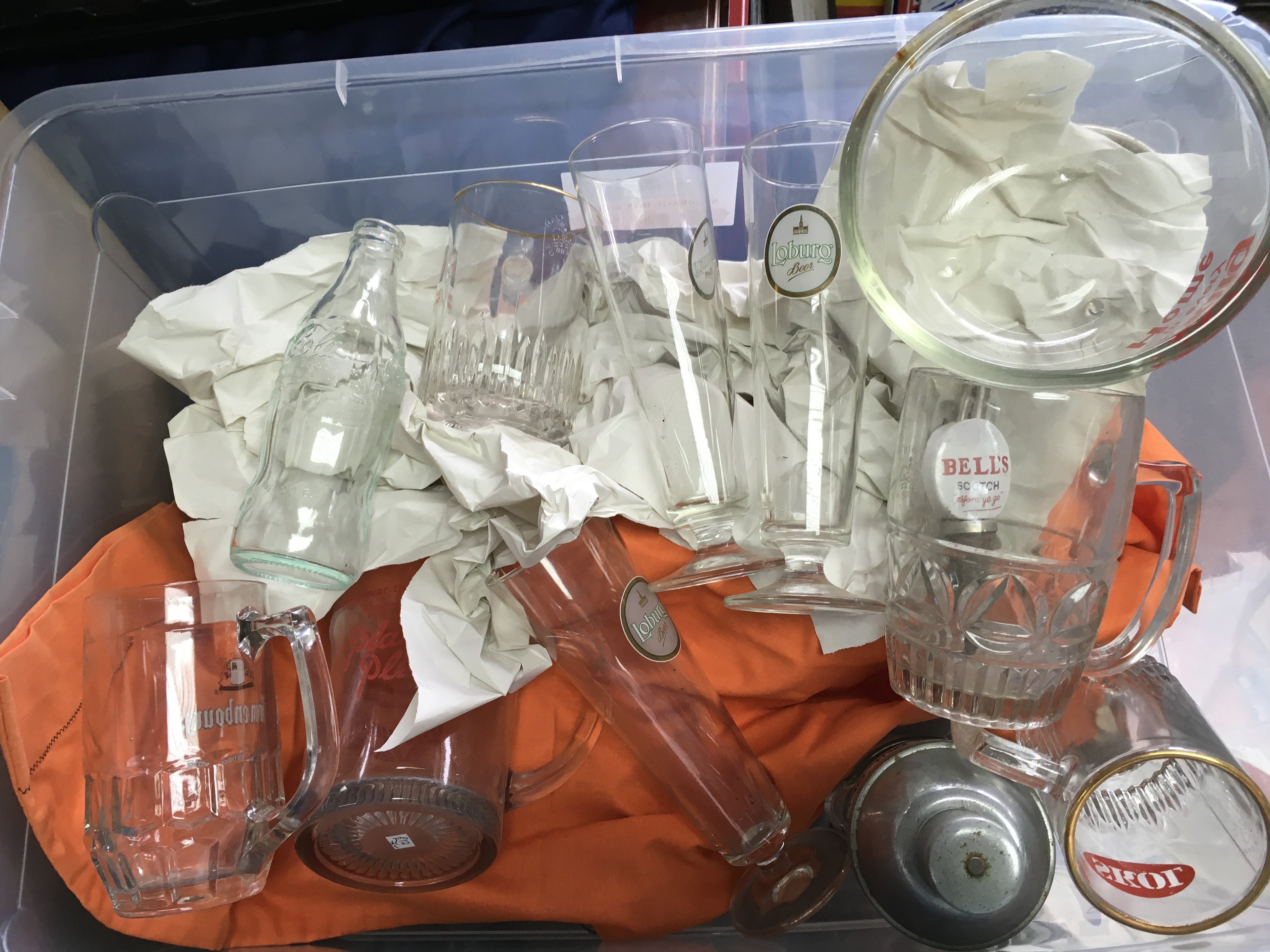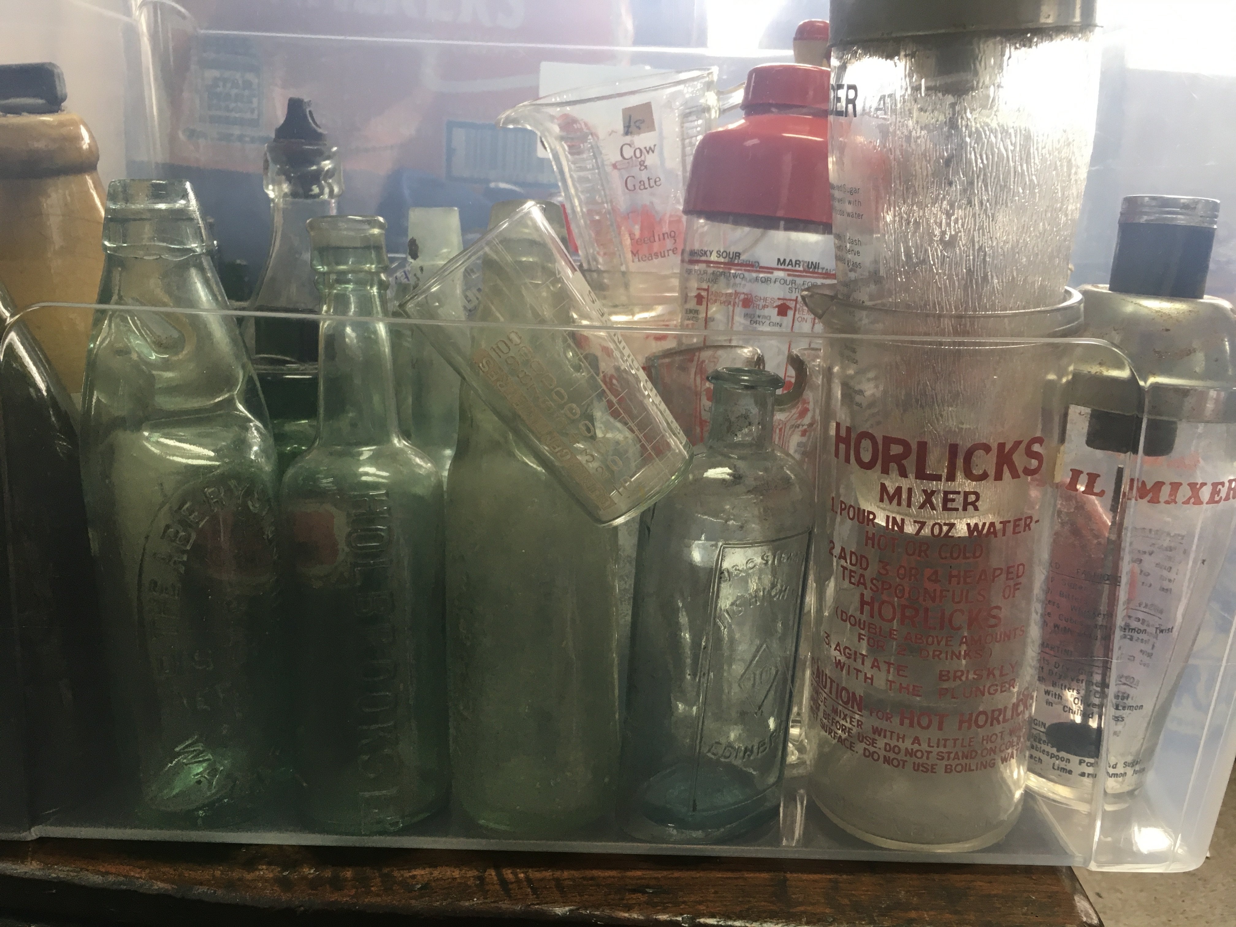A collection of vintage glass bottles and cups. This lot cannot be posted