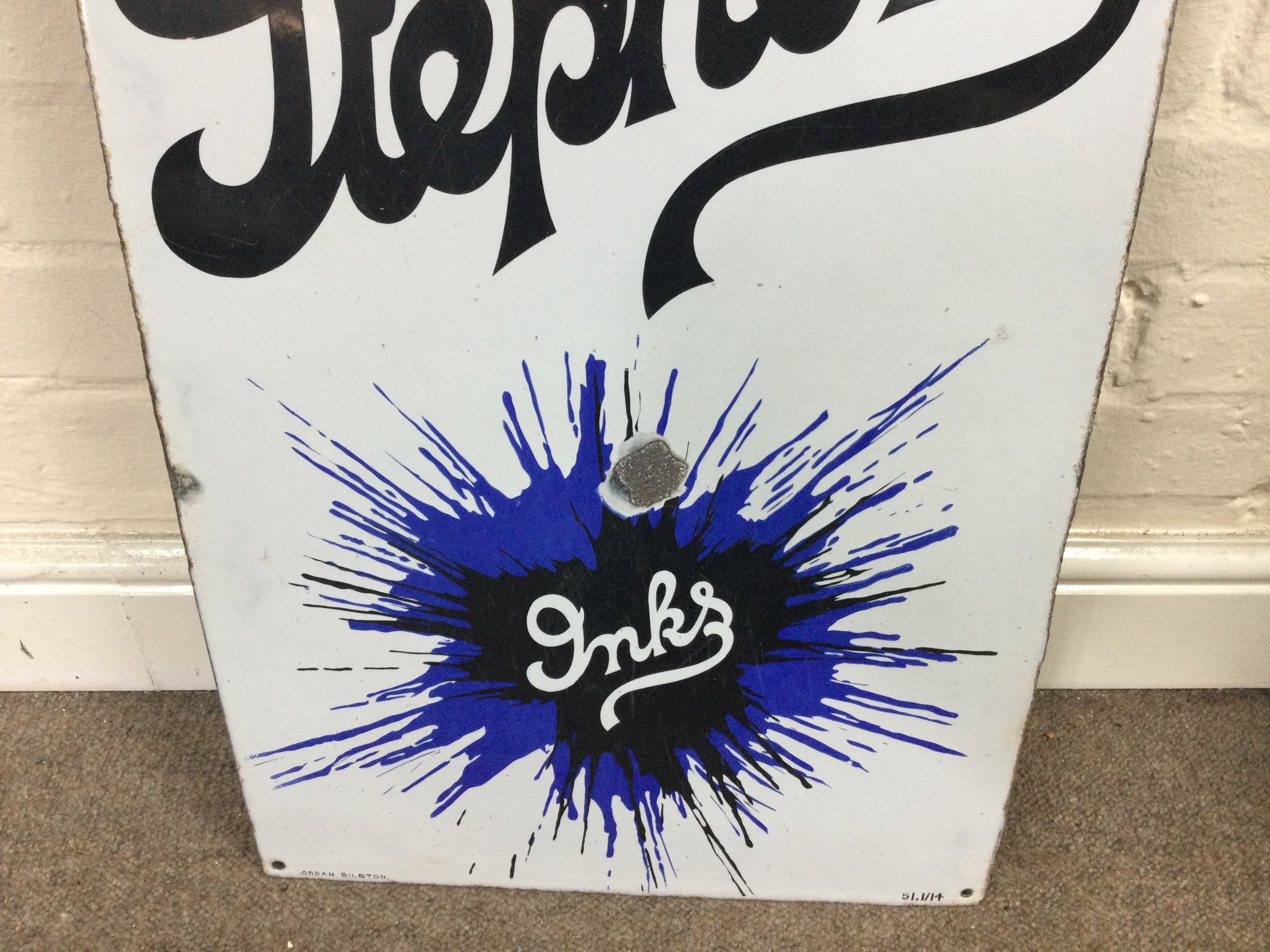 Stephens' Ink enamel advertising sign 15.5 x 23.5 inches