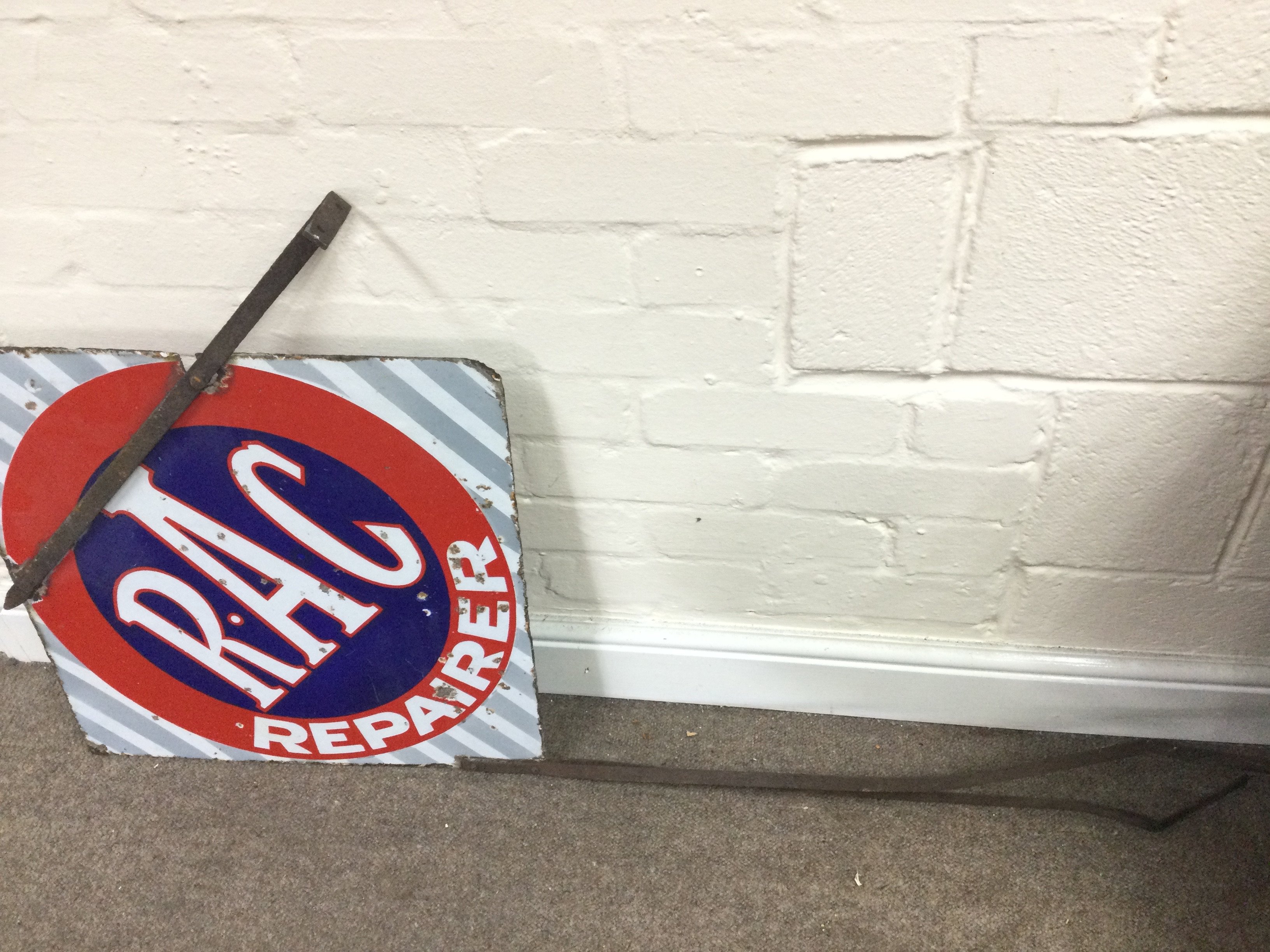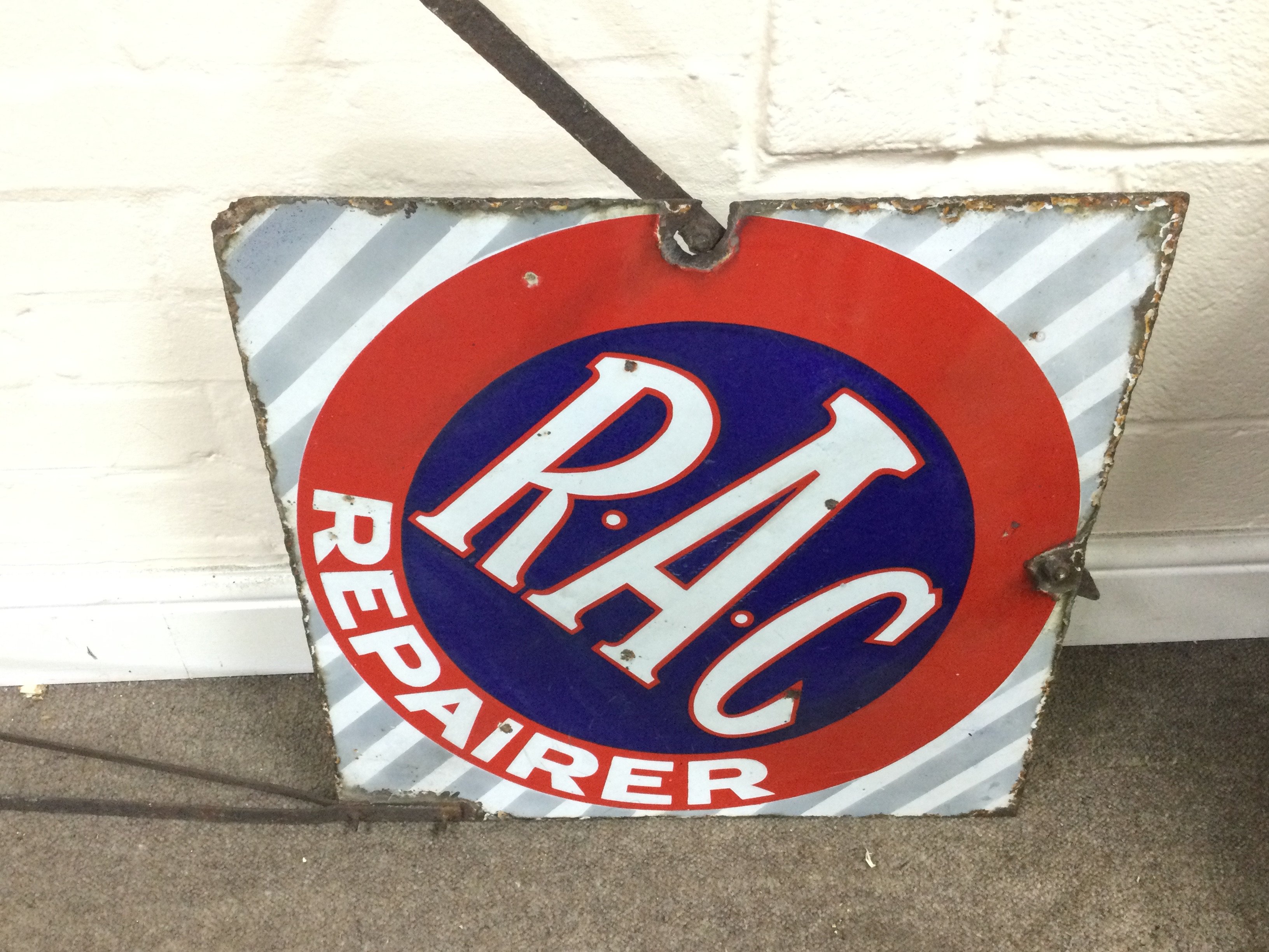 A Double sided 'RAC repairer' enamel sign 20 x 20 inches approximately