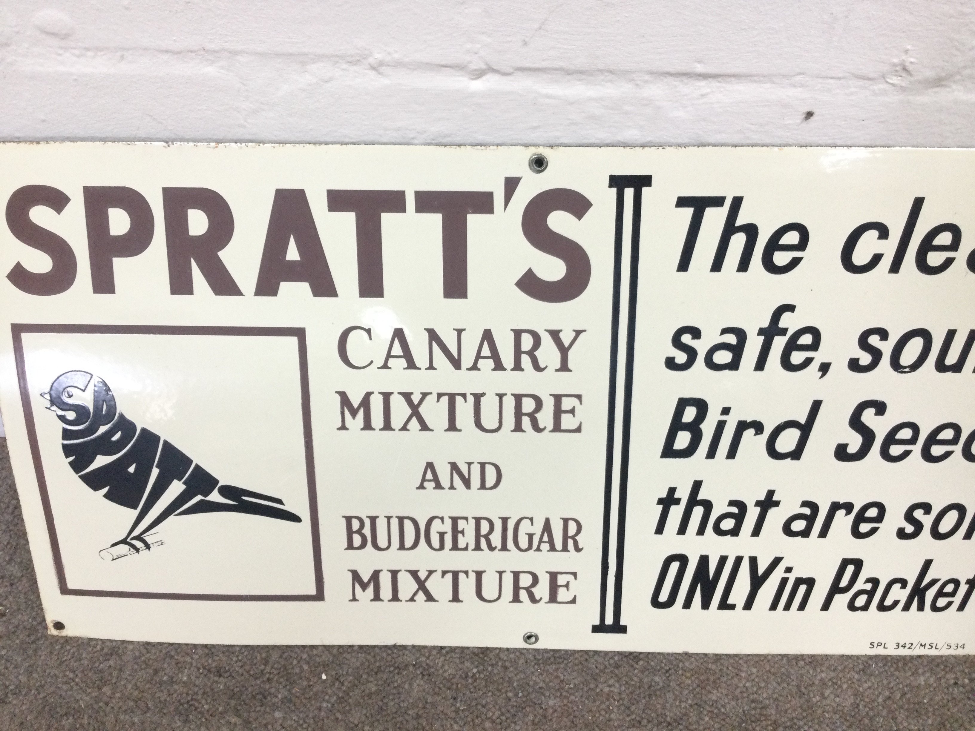 SPRATT'S BIRD SEED ENAMEL SIGN 24 x 12 inches approximately