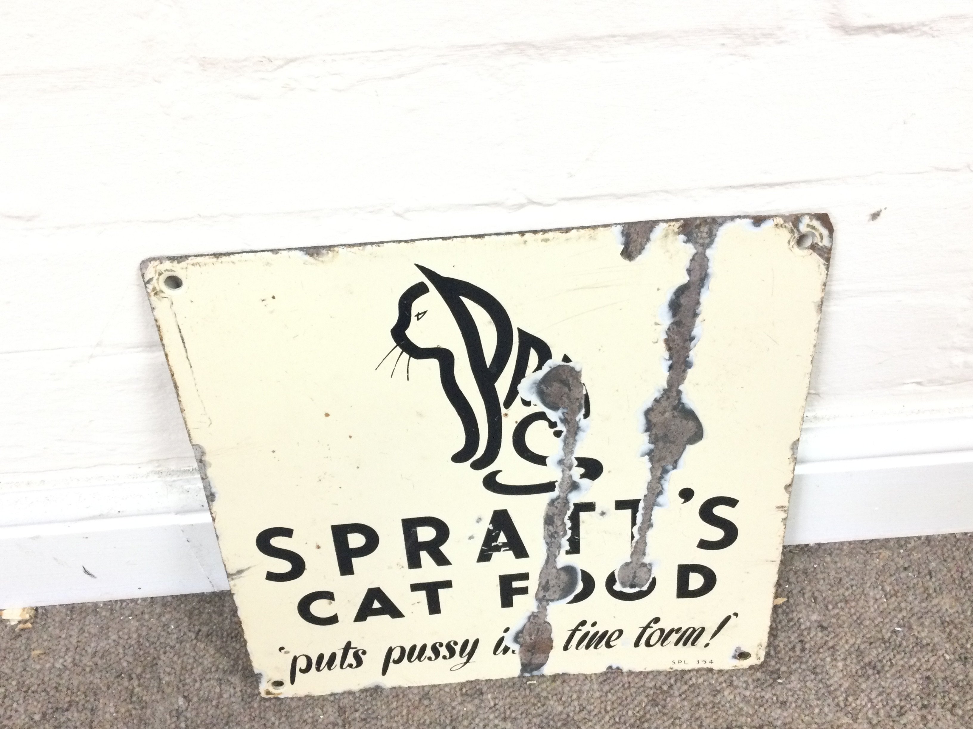 Sprays cat food enamel sign 12 x 12 inches approximately