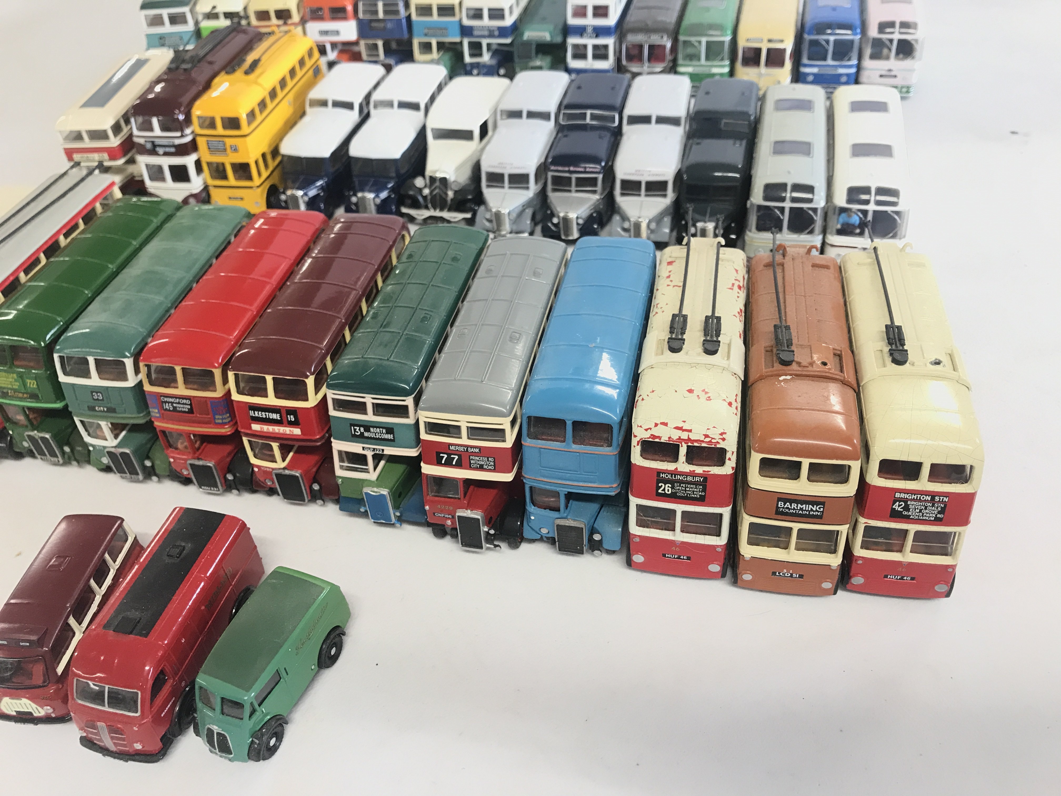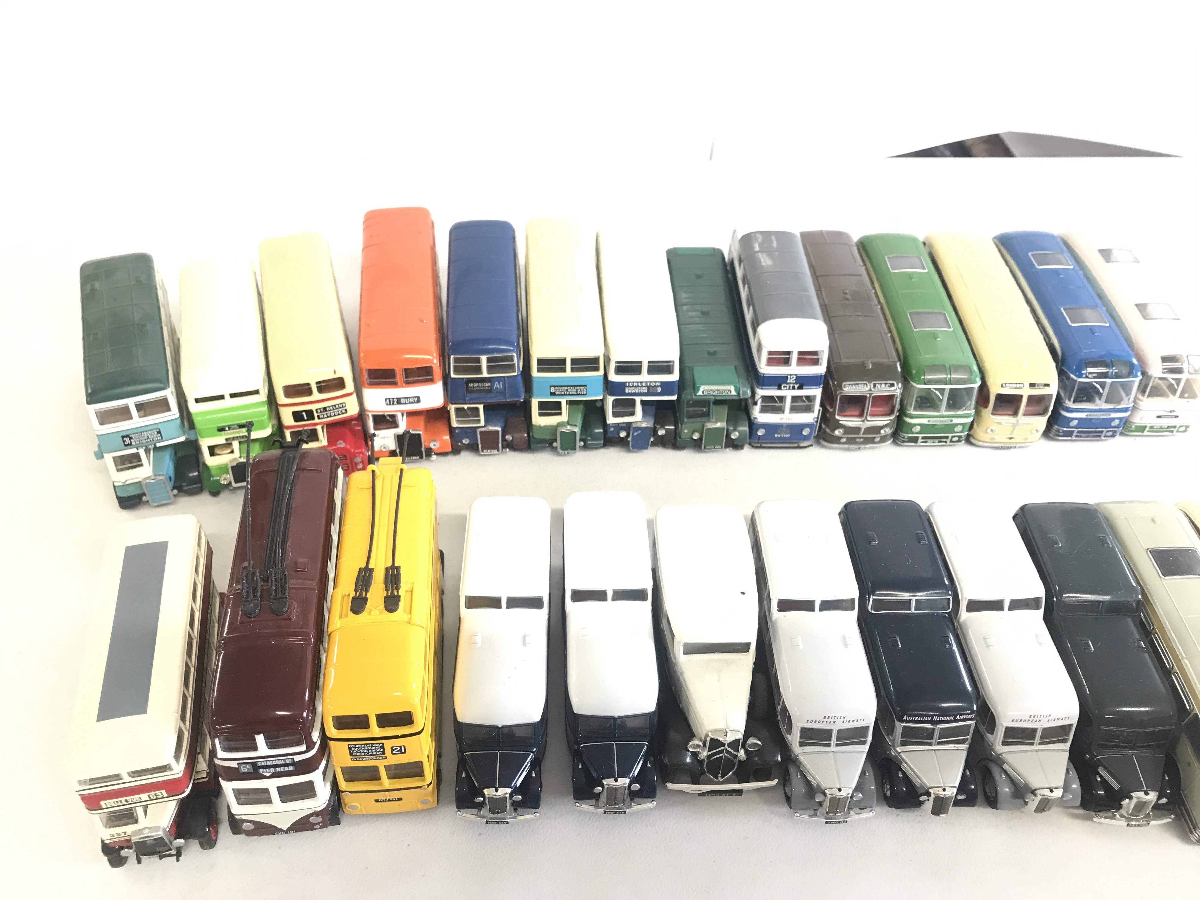 A collection of various model busses to include Corgi, Oxford and Matchbox.