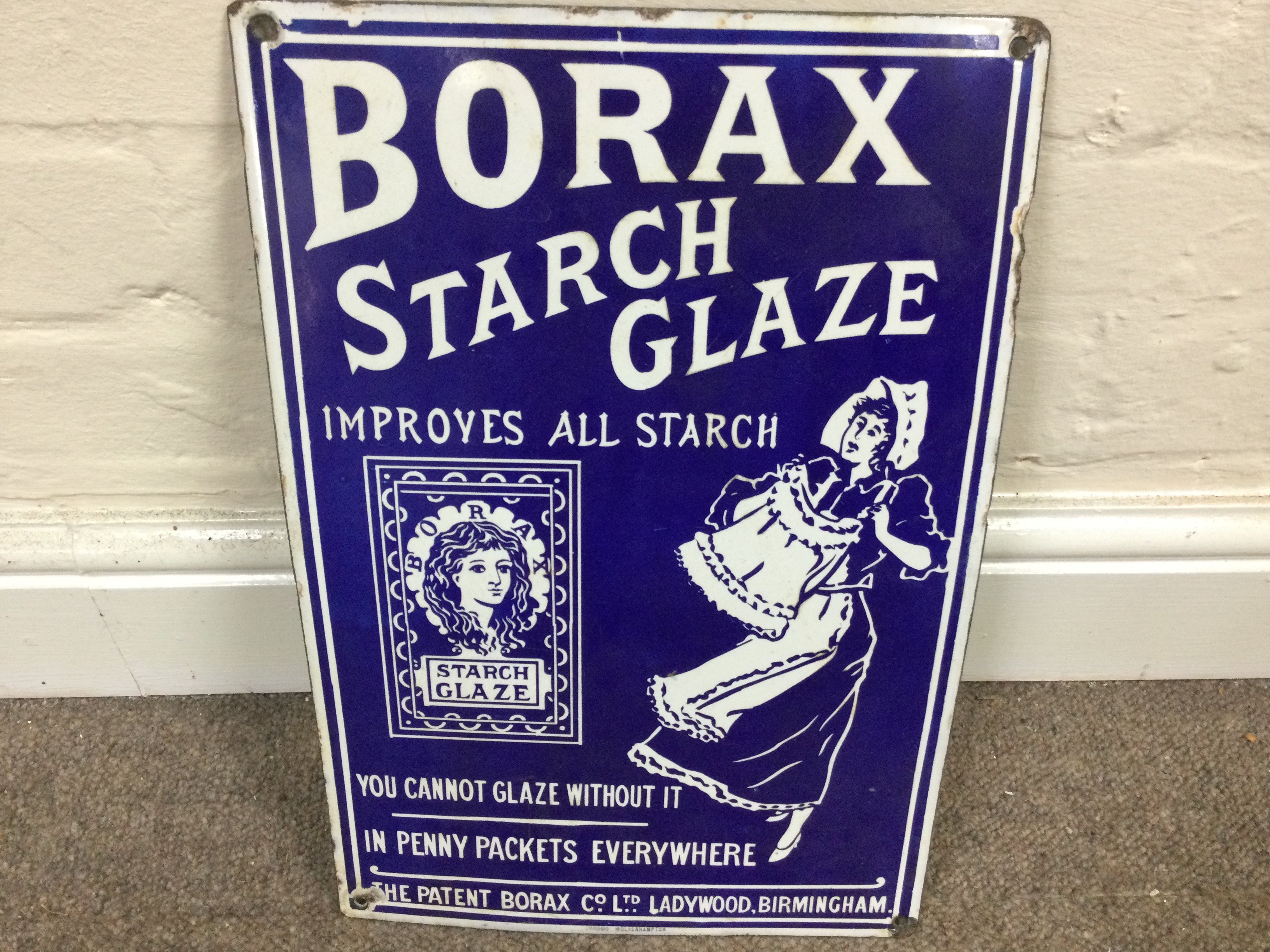 BORAX STARCH GLAZE ENAMEL SIGN. 15 x 10 inches approximately