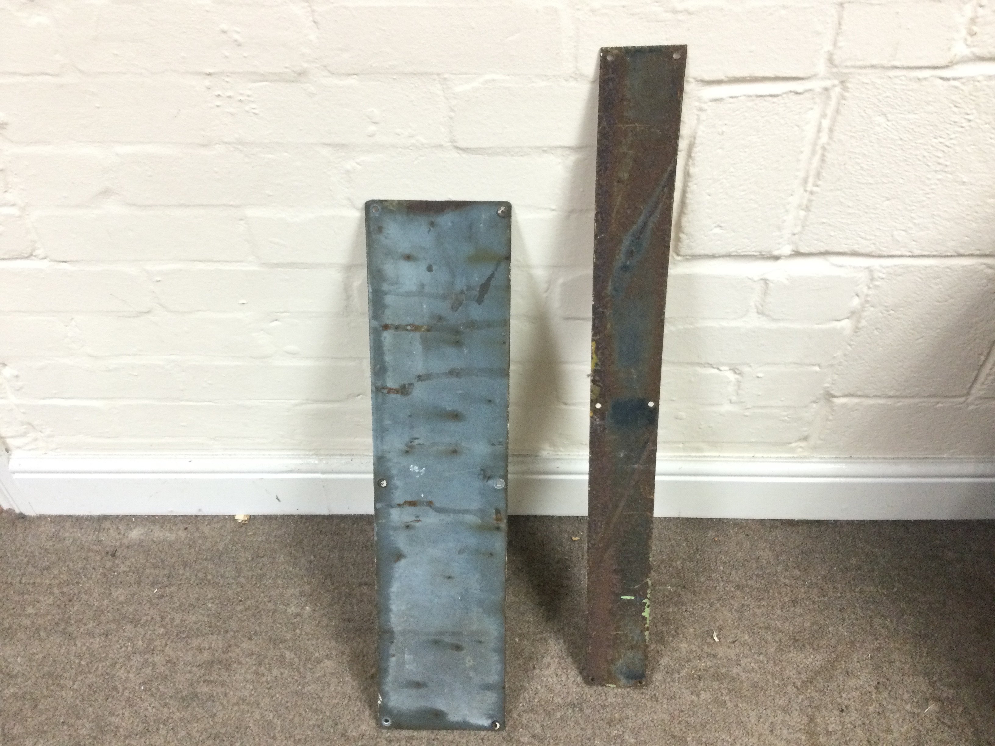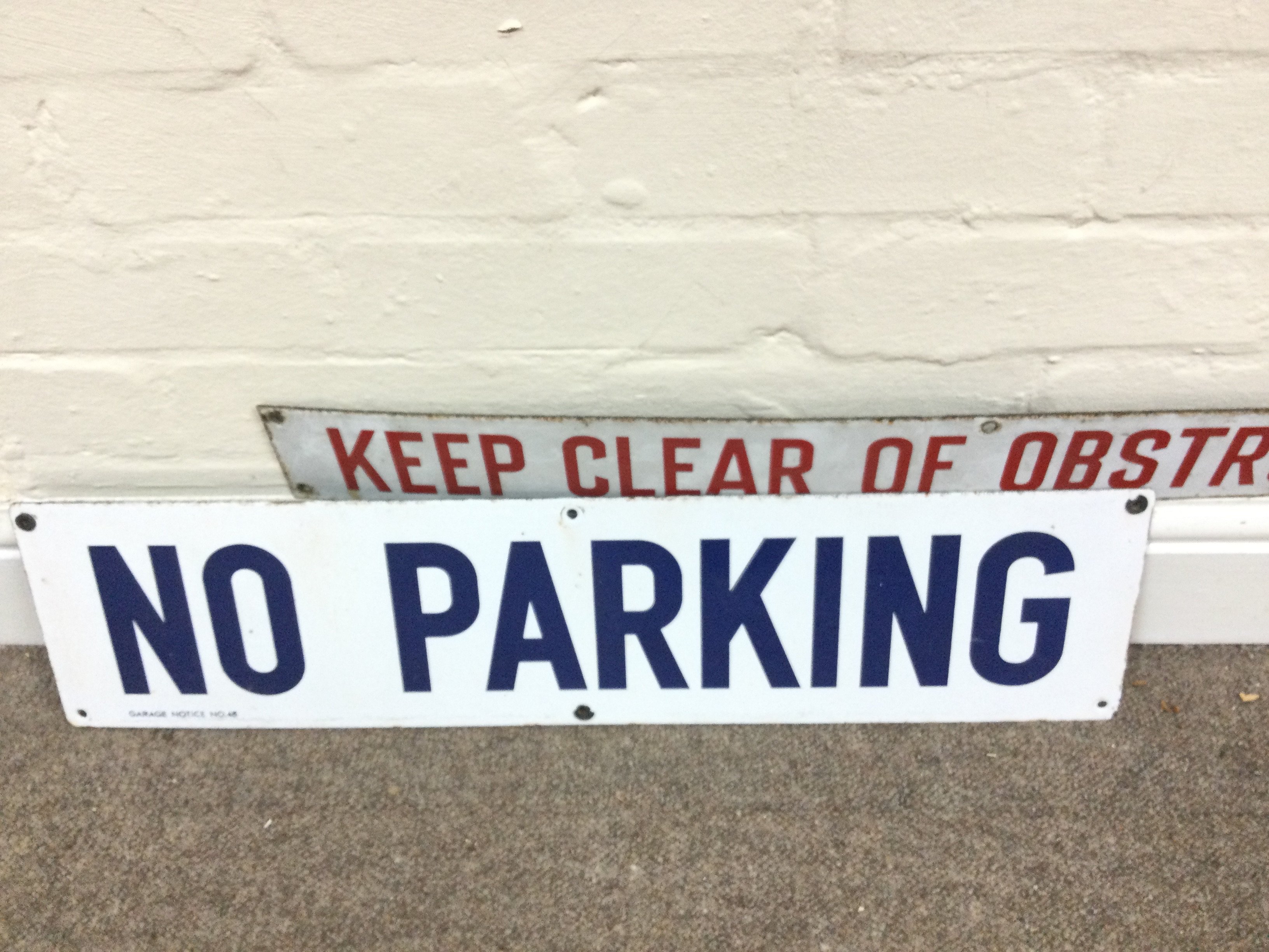 A no parking and a keep clear of obstruction signs. 6 x 25 inches approximately 3 x 30 inches approximately