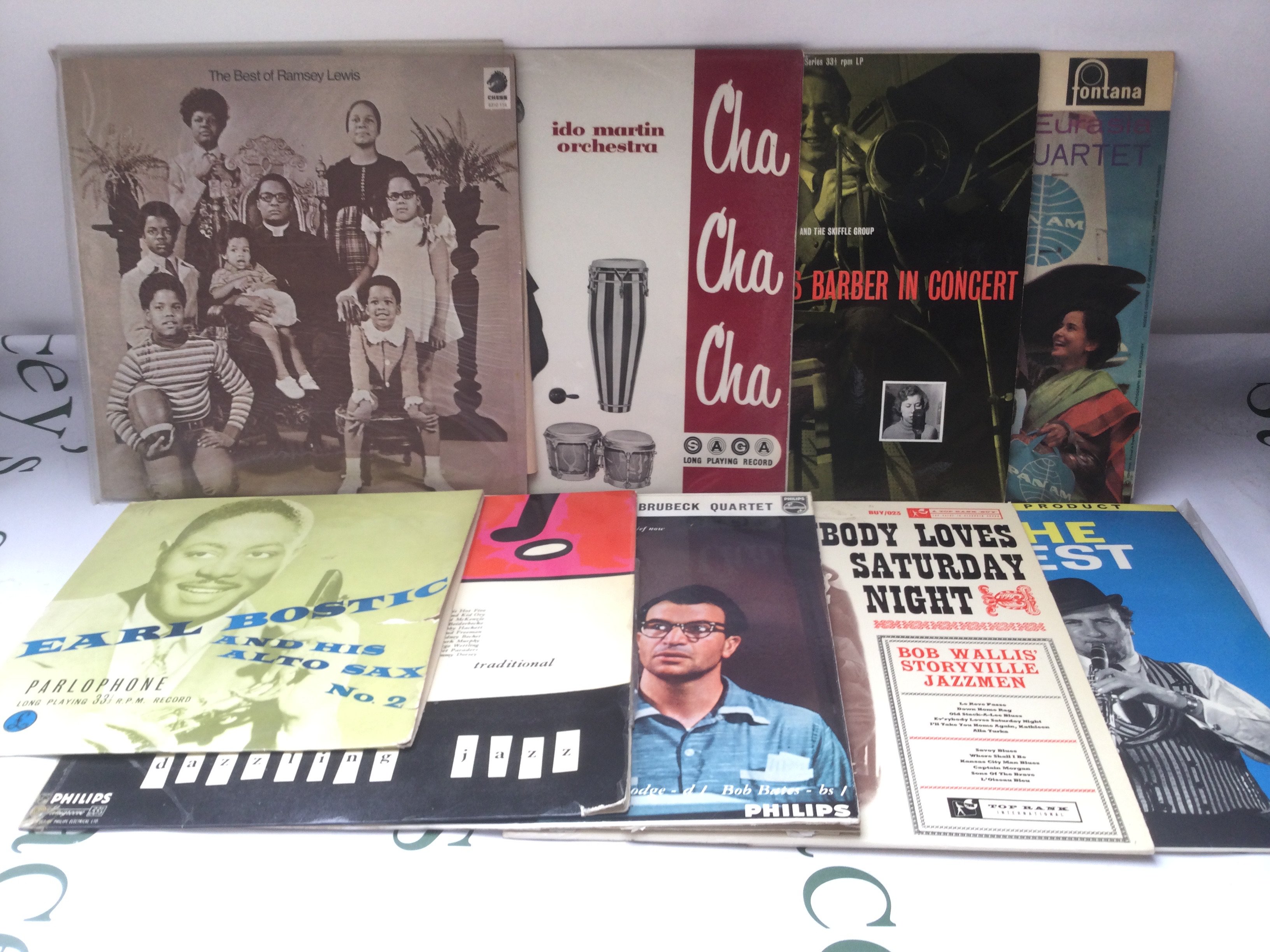 Eighteen jazz and blues LPs by various artists including Lightnin Hopkins, Dizzy Gillespie, Ramsey Lewis and others.