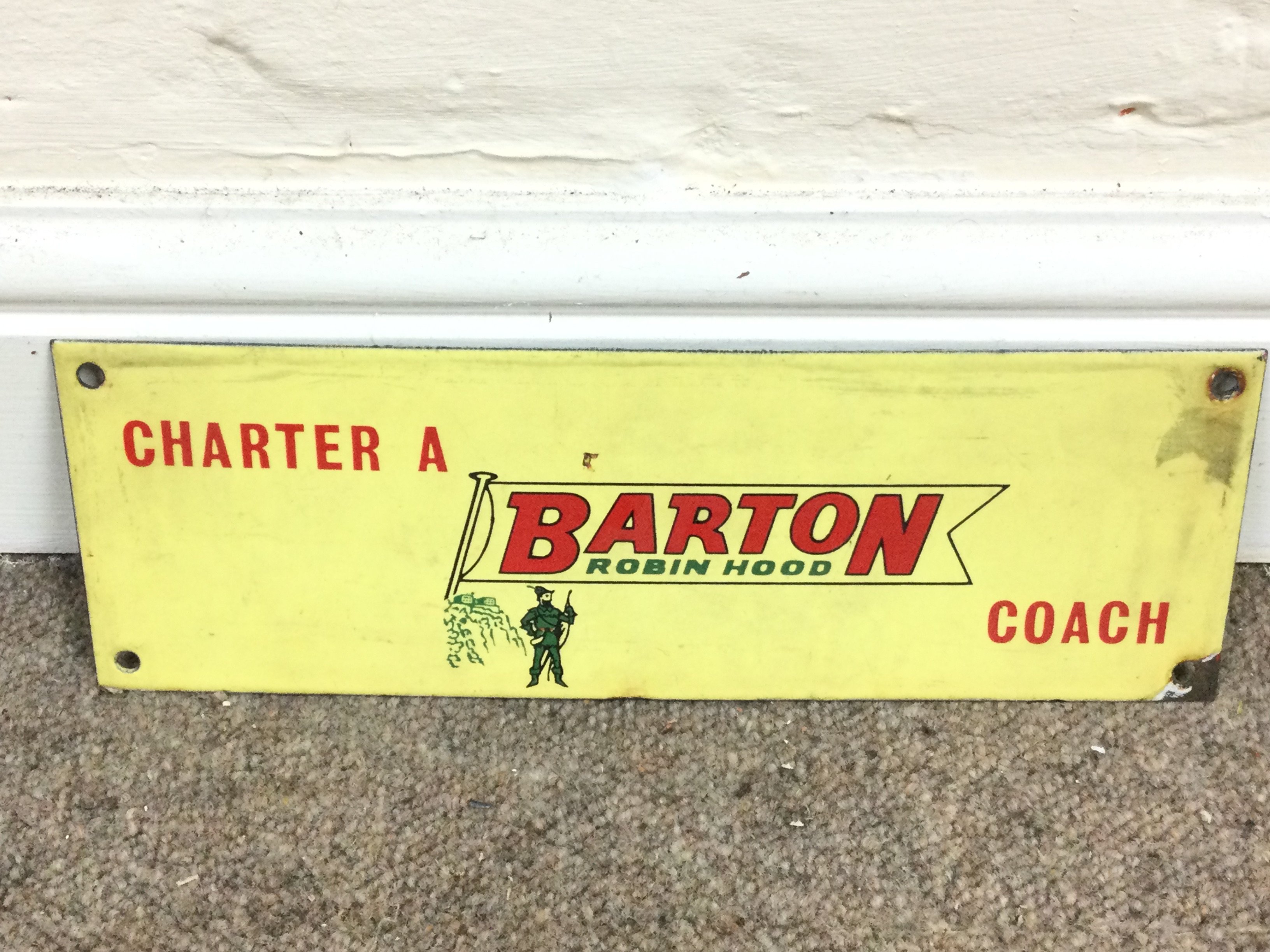 BARTON COACH CHARTER ROBIN HOOD VINTAGE ENAMEL SIGN 5 x 12 inches