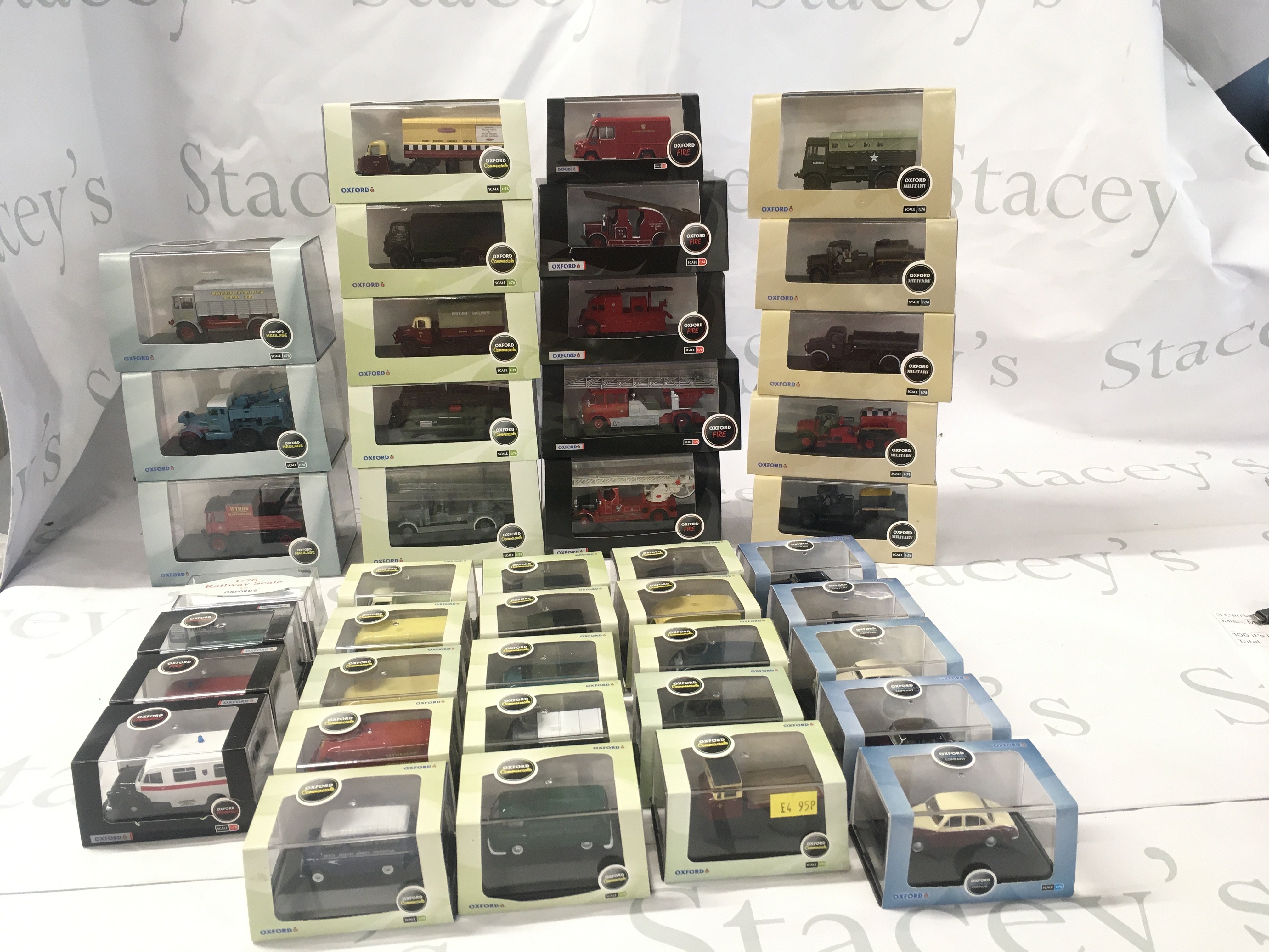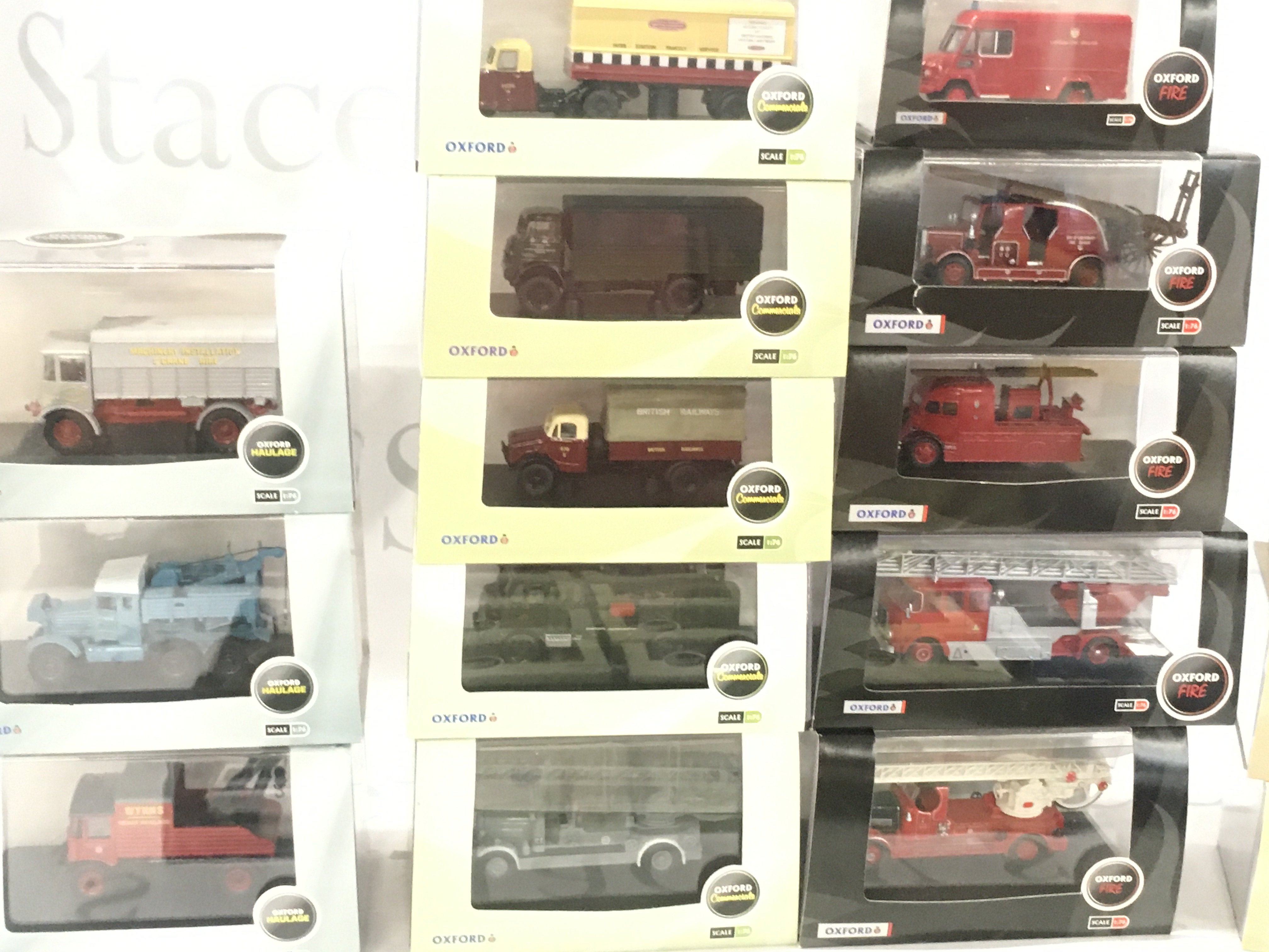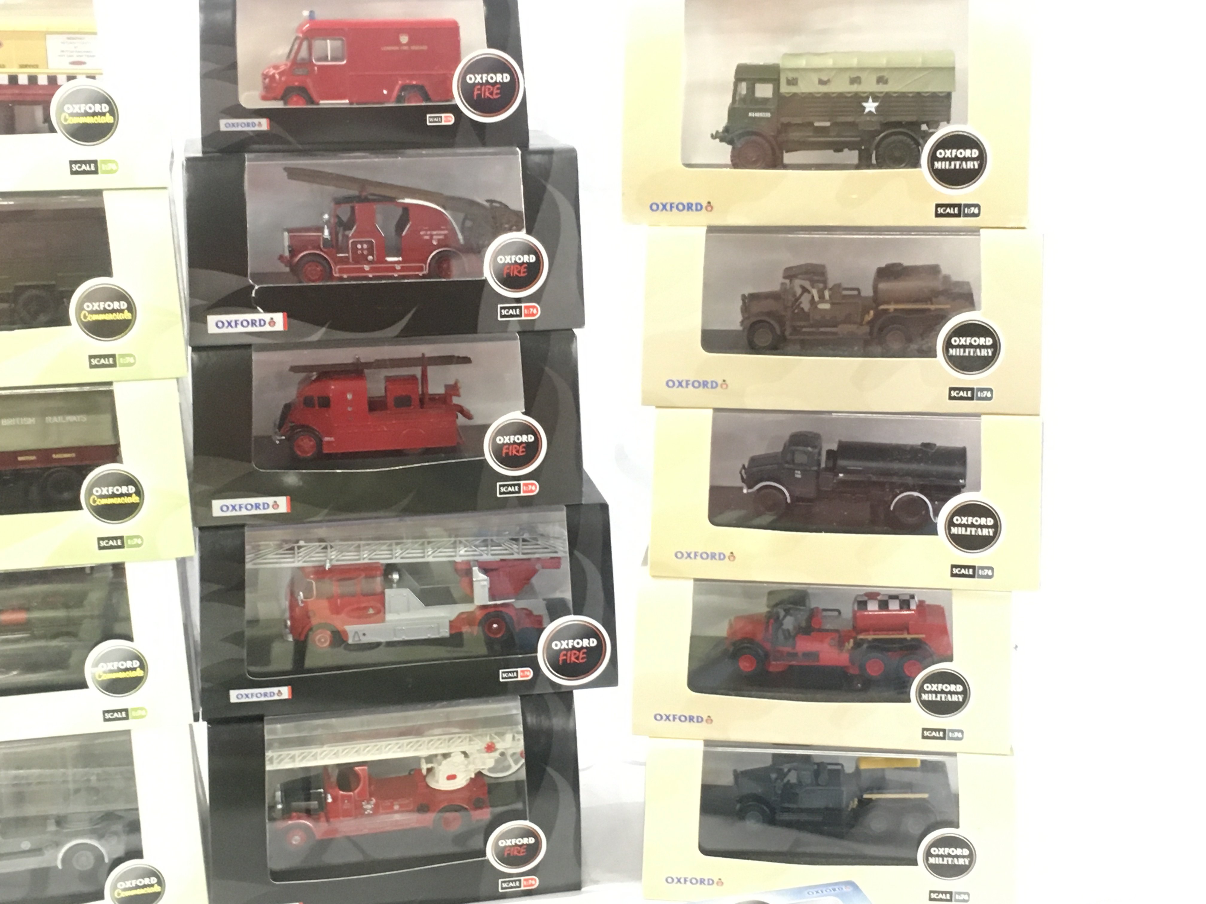 A collection of boxed diecast model vehicles by Oxford in the Fire. Haulage..Military..Commercials.. 1.76 scale. No reserve