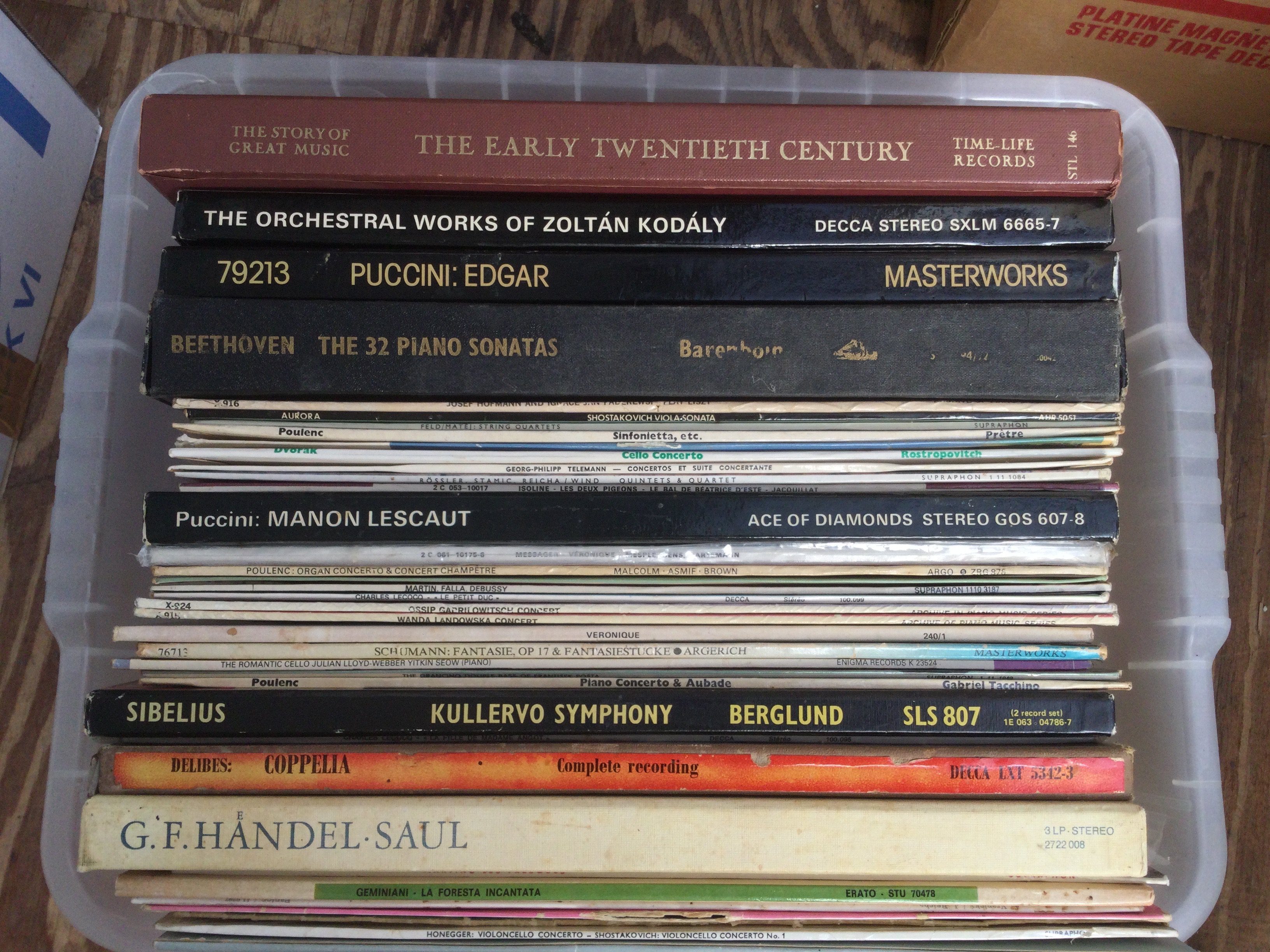Two boxes of classical music LPs including east European soloists and early stereo pressings.