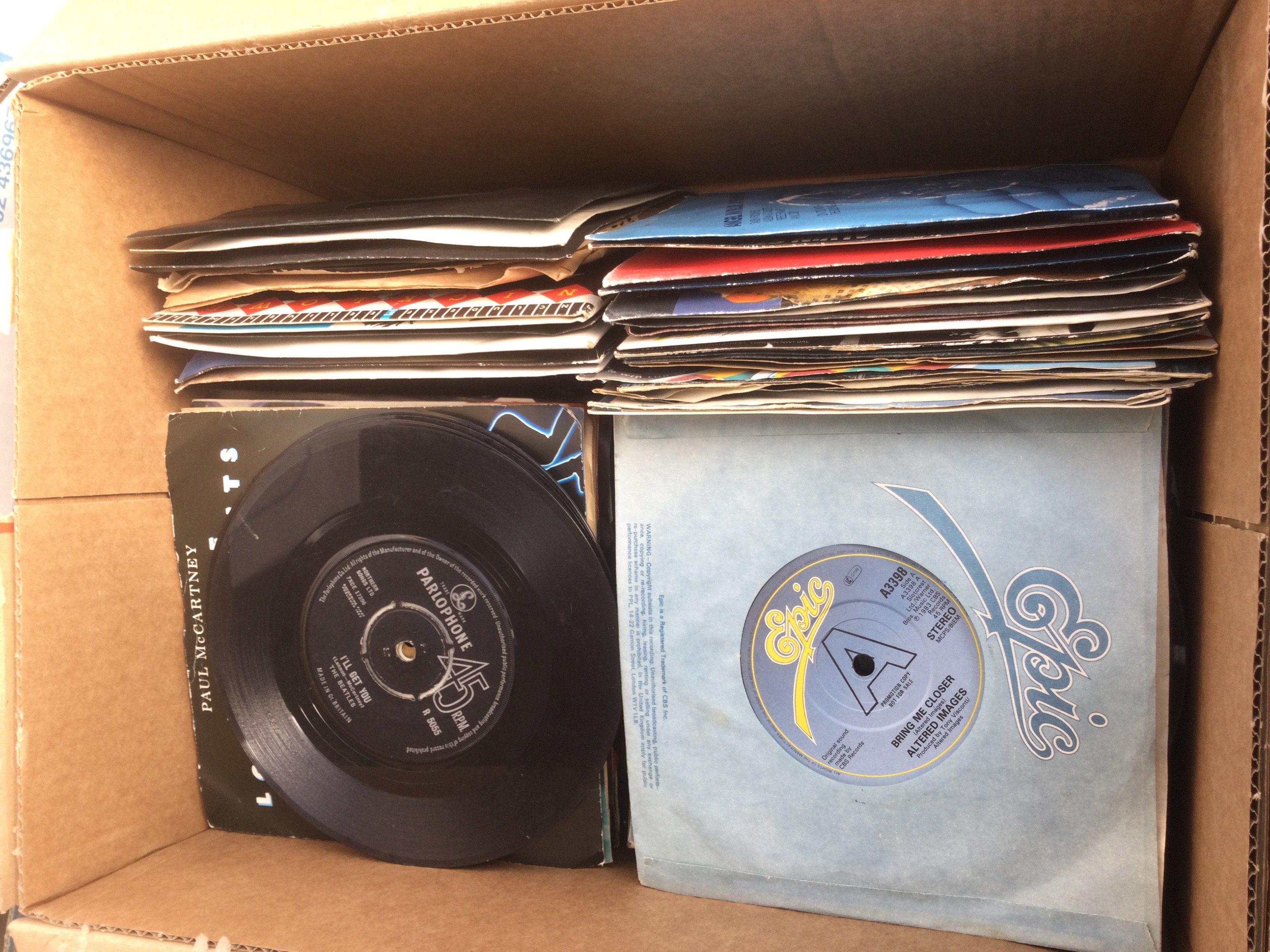 Two boxes of 7" singles including some promos by various artists from the 1960s onwards.