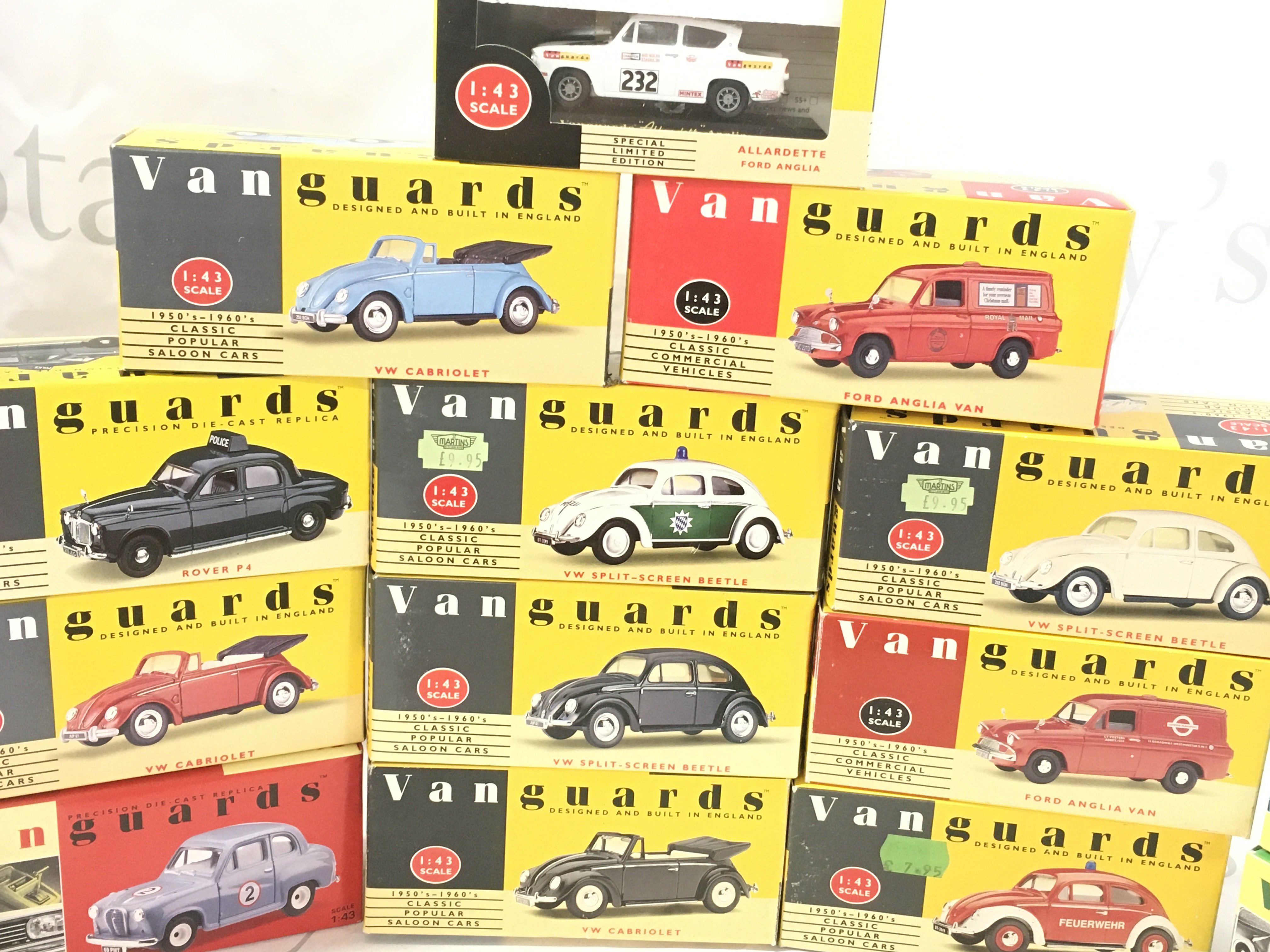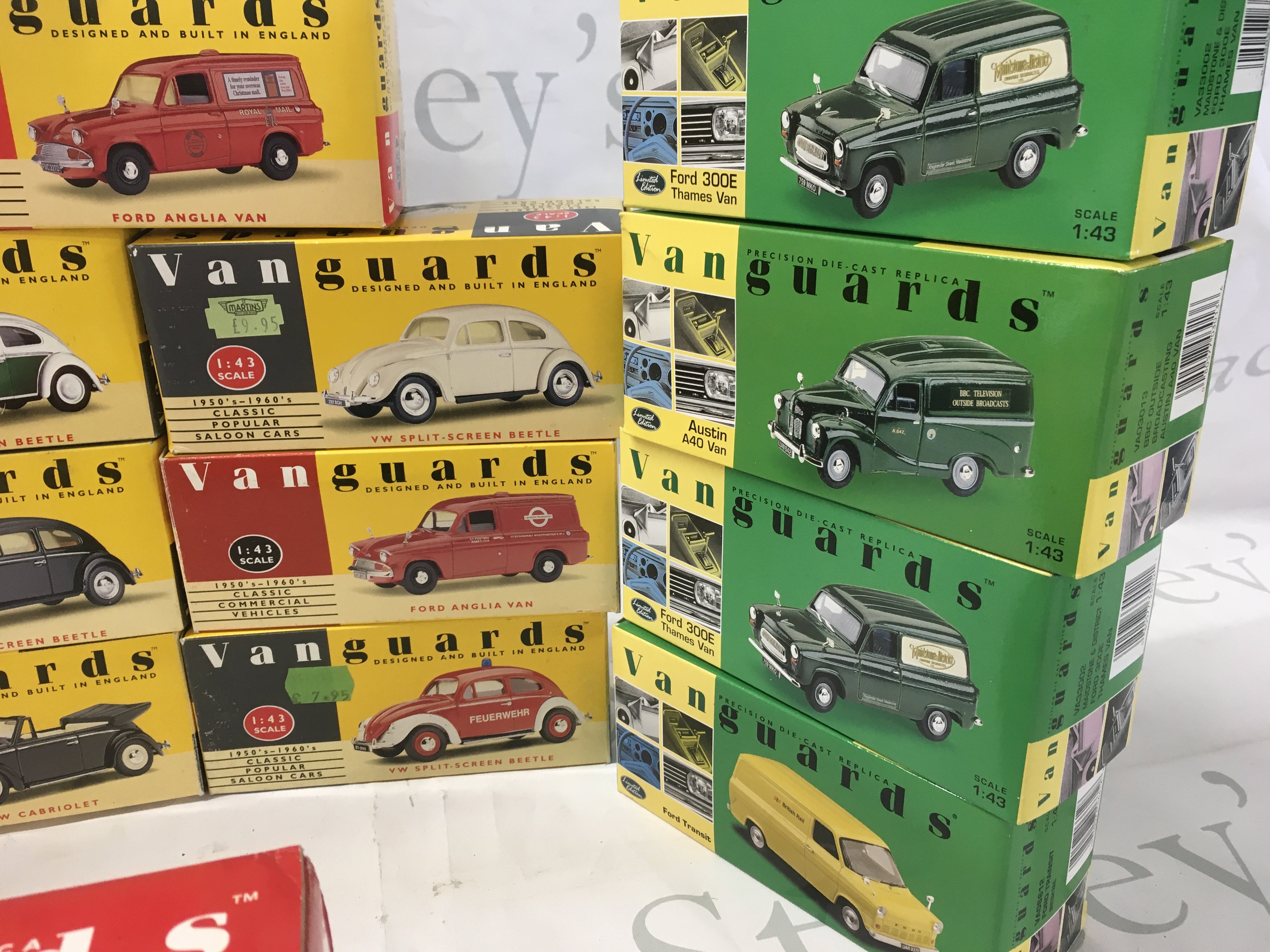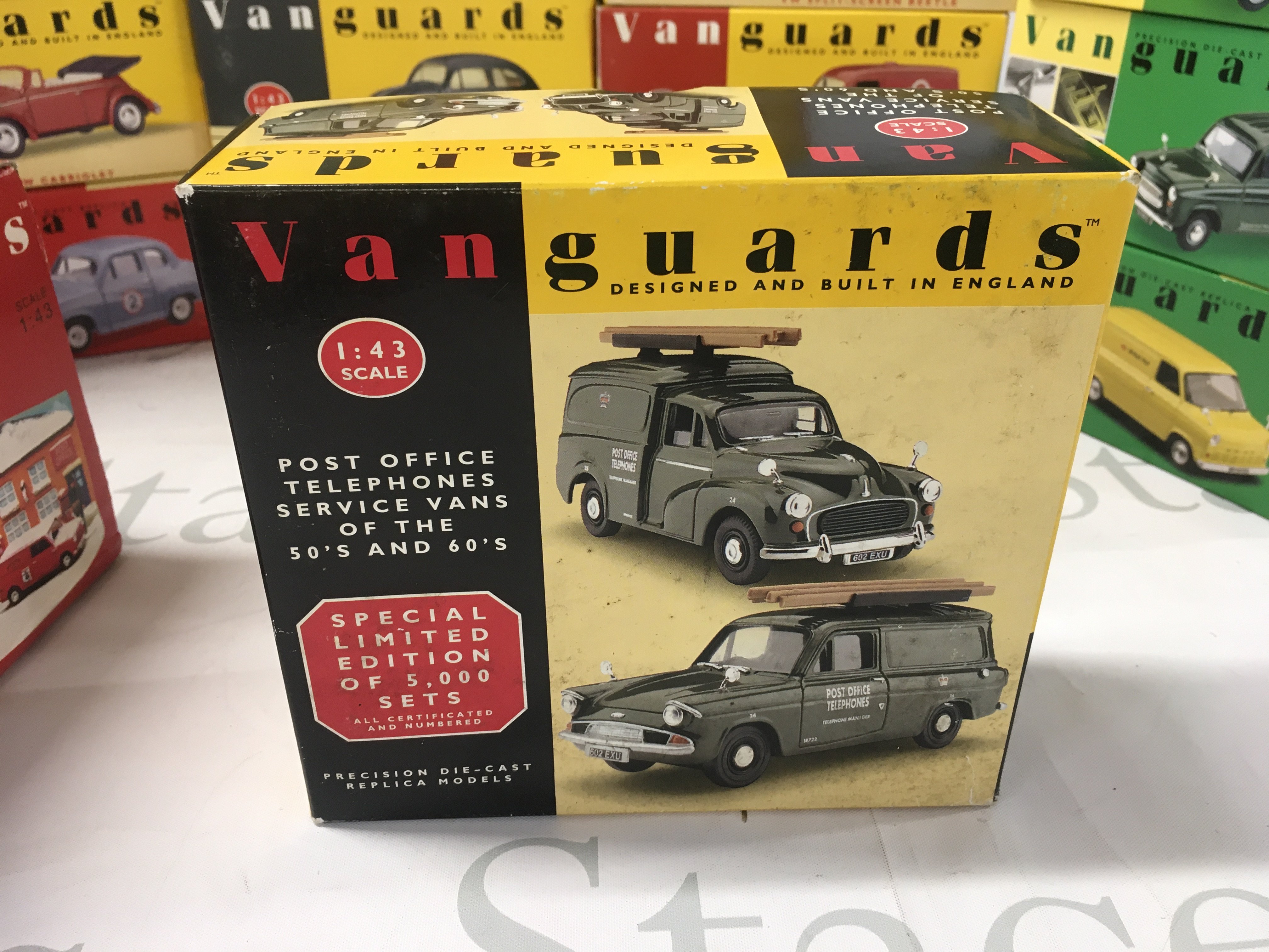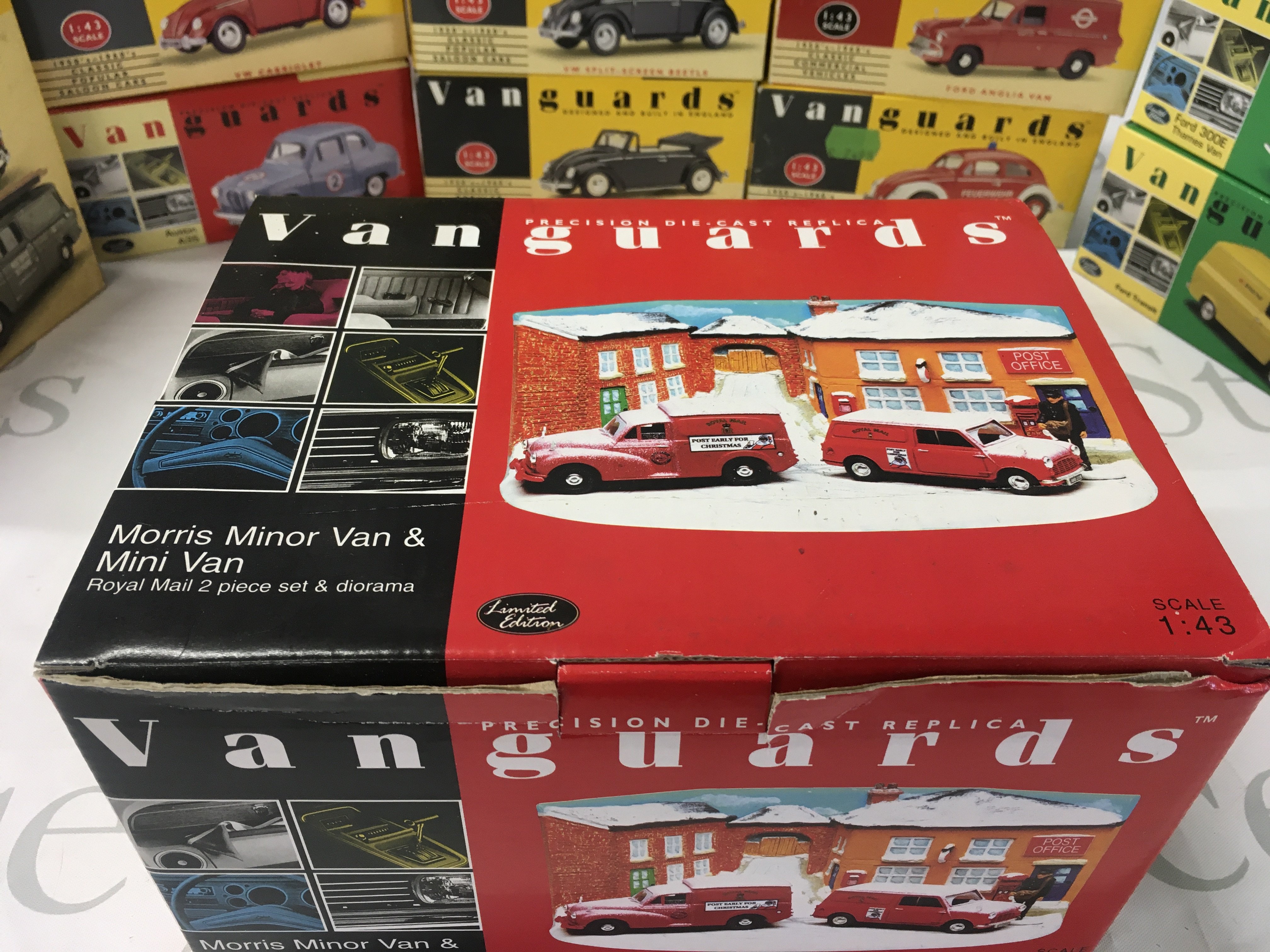 A collection of boxed diecast model vehicles in the Vanguards series. Includes a Royal Mail 2 piece set with diorama. No reserve