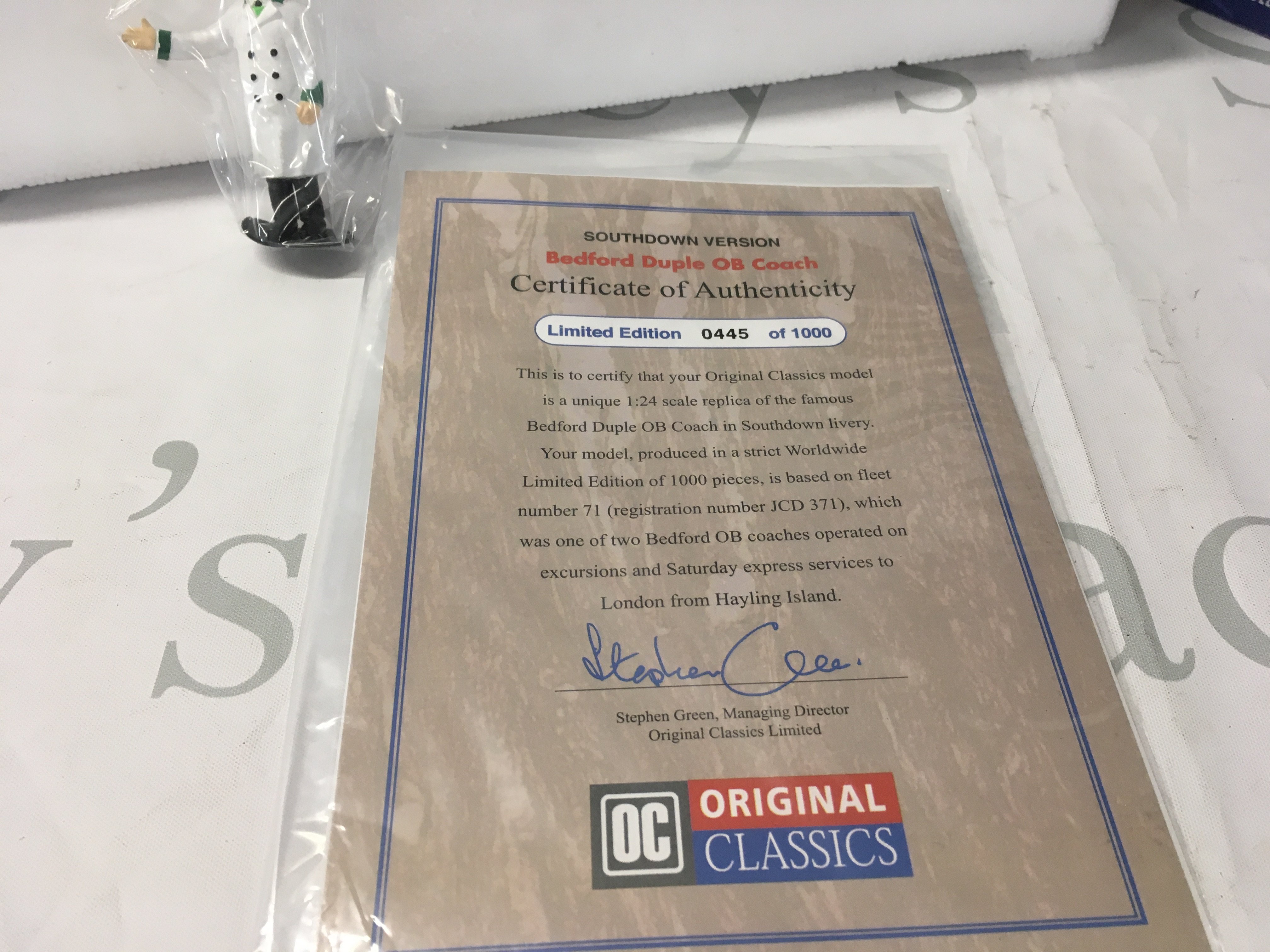 Boxed Original Classics Bedford Duple OB Coach. 1..24 scale. Limited edition 445 of 1000. CoA included. No reserve