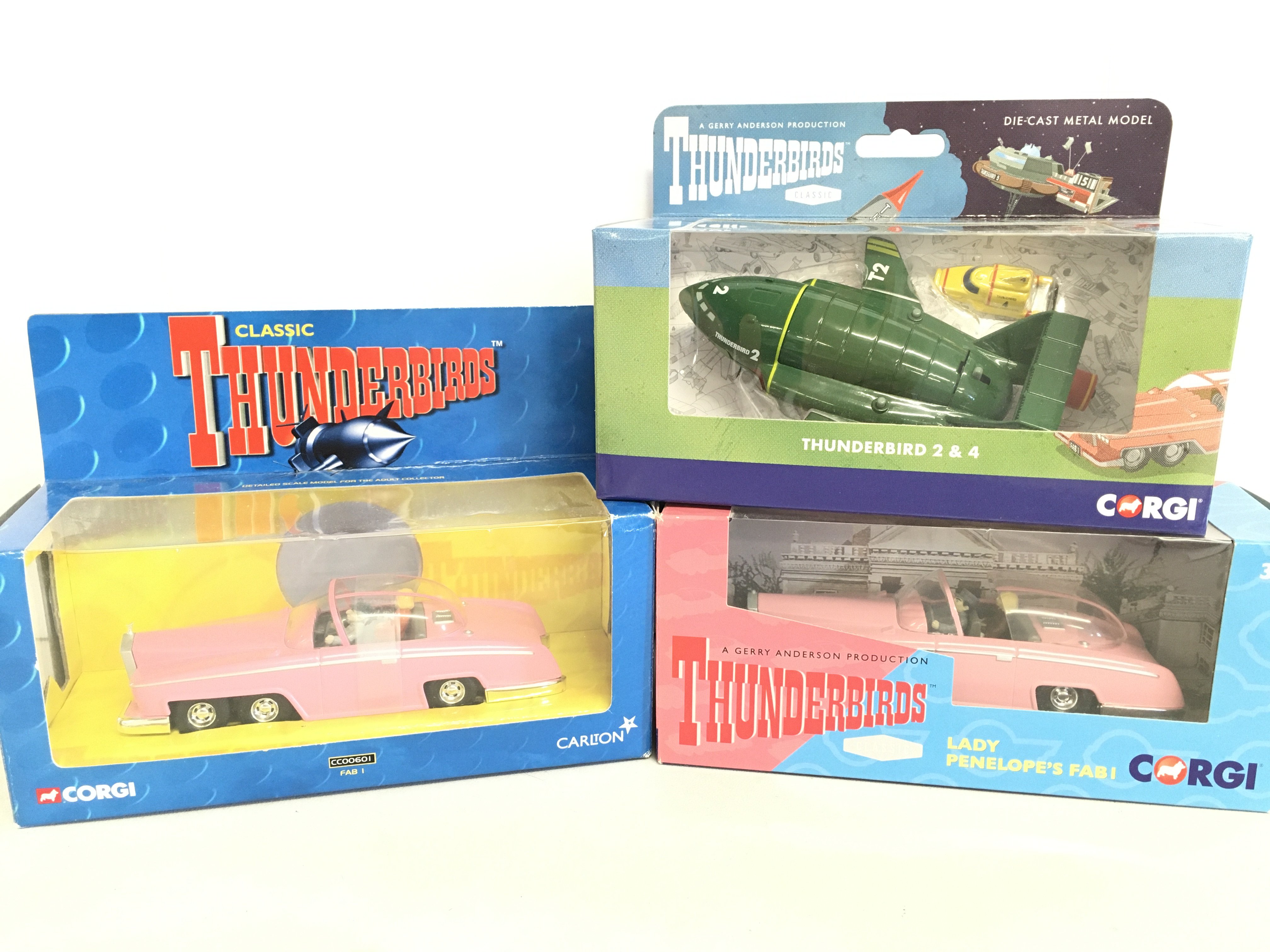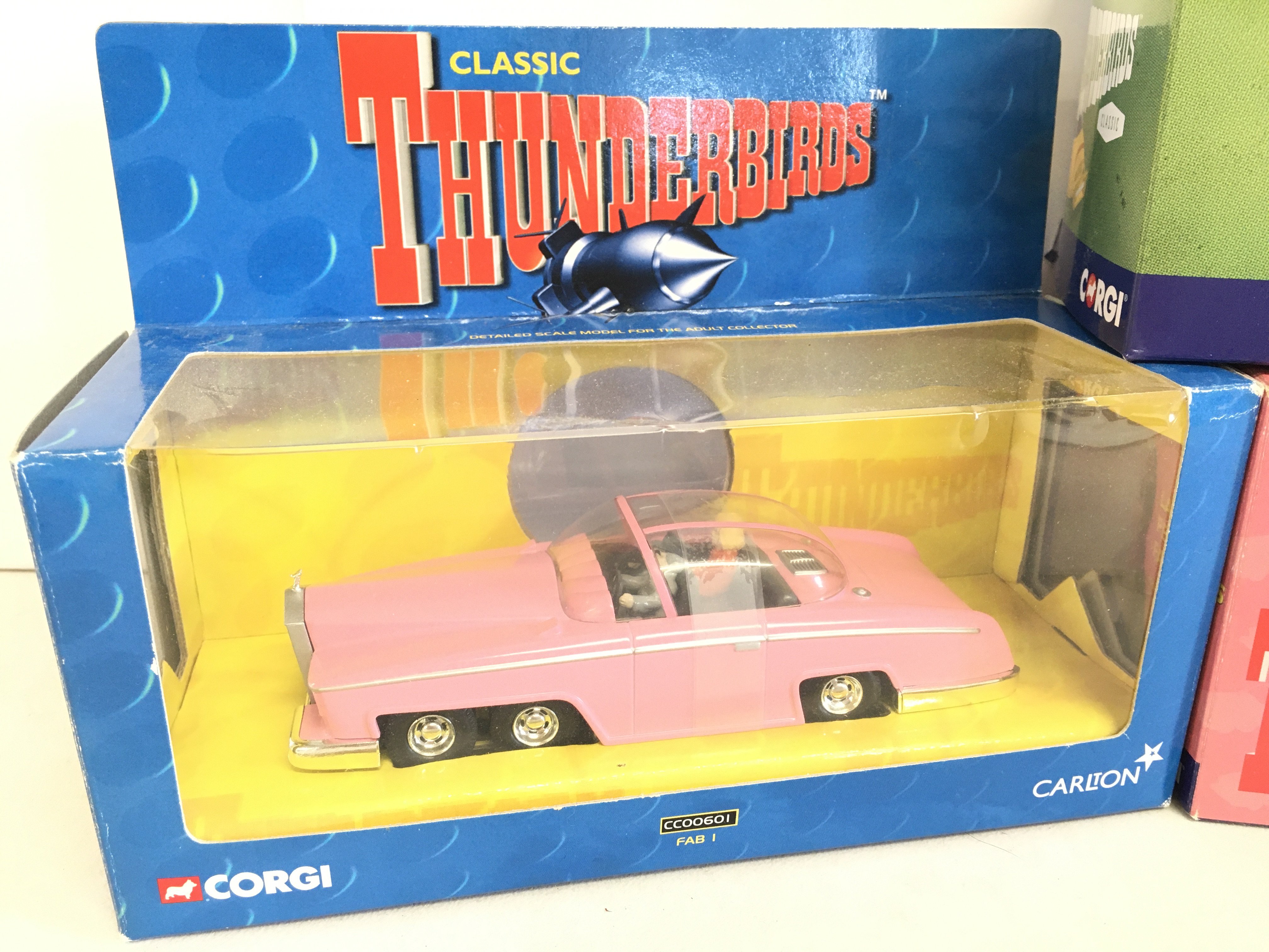 3 X Boxed Corgi Thunderbirds Diecast Including 2 X Fab 1 A Thunderbird 2 And 4 And Thunderbirds 1 And 3.
