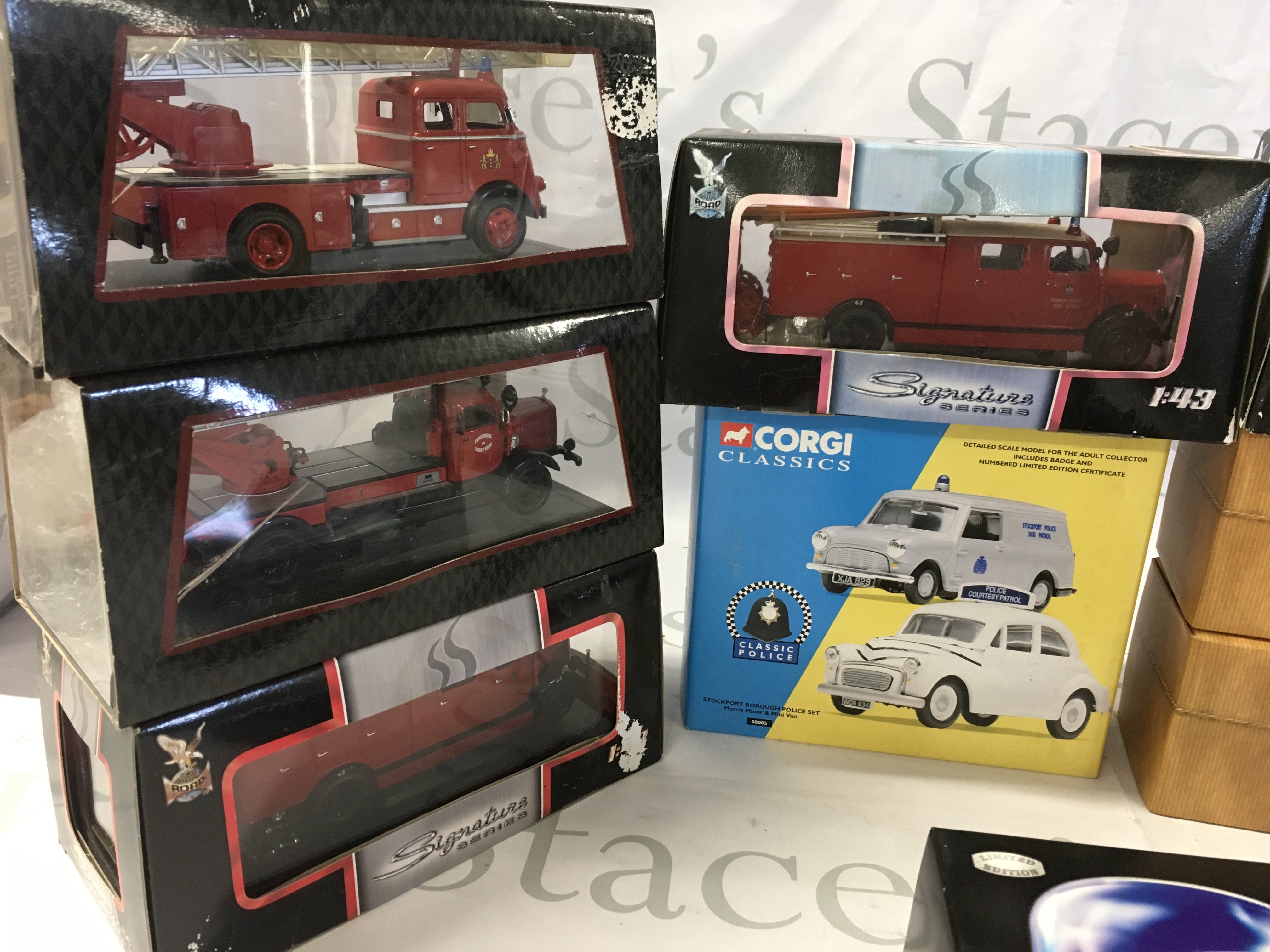 A collection of boxed emergency services diecast vehicles. Manufacturers include Corgi..ROAD..Dinky etc. No reserve