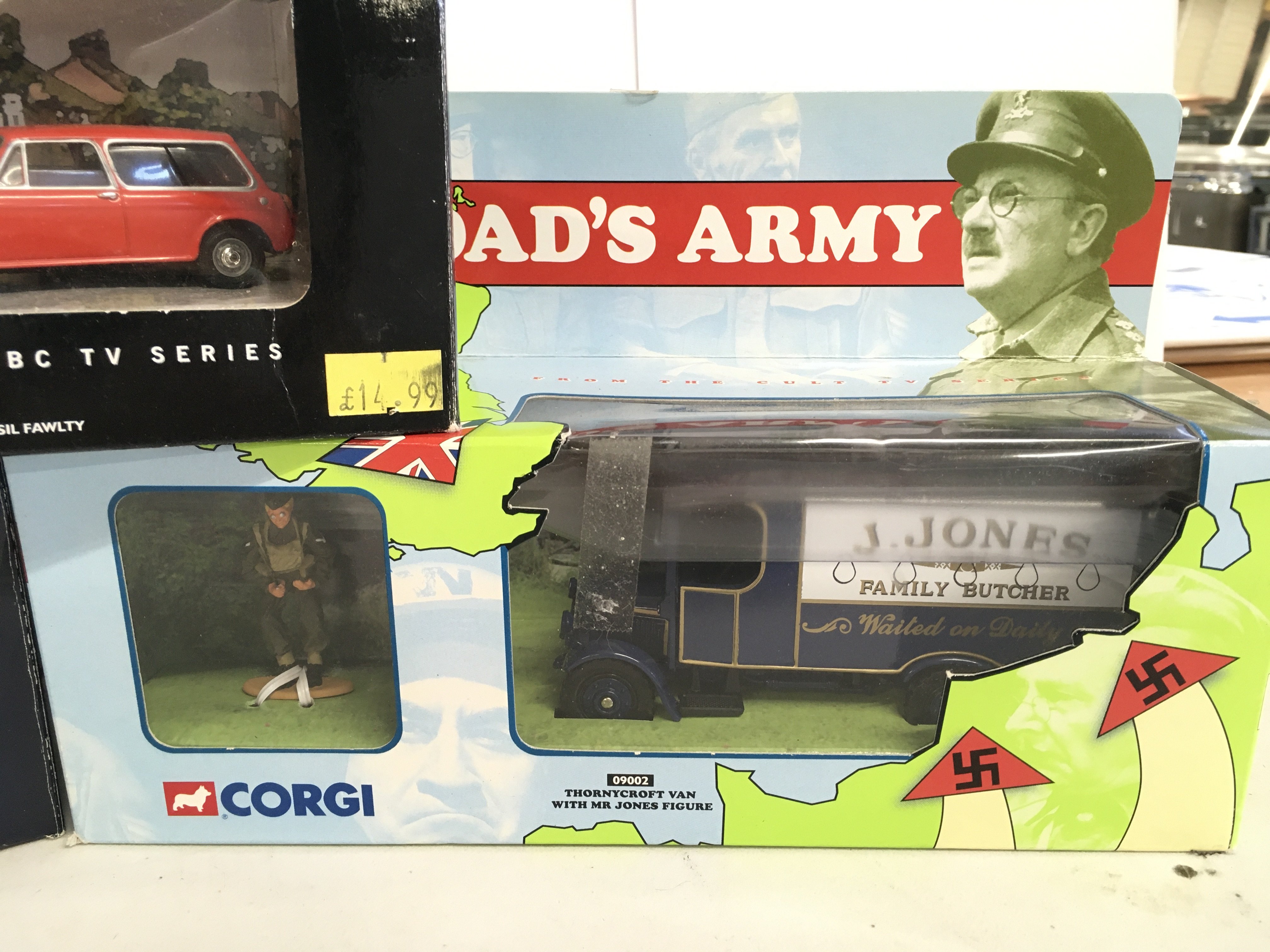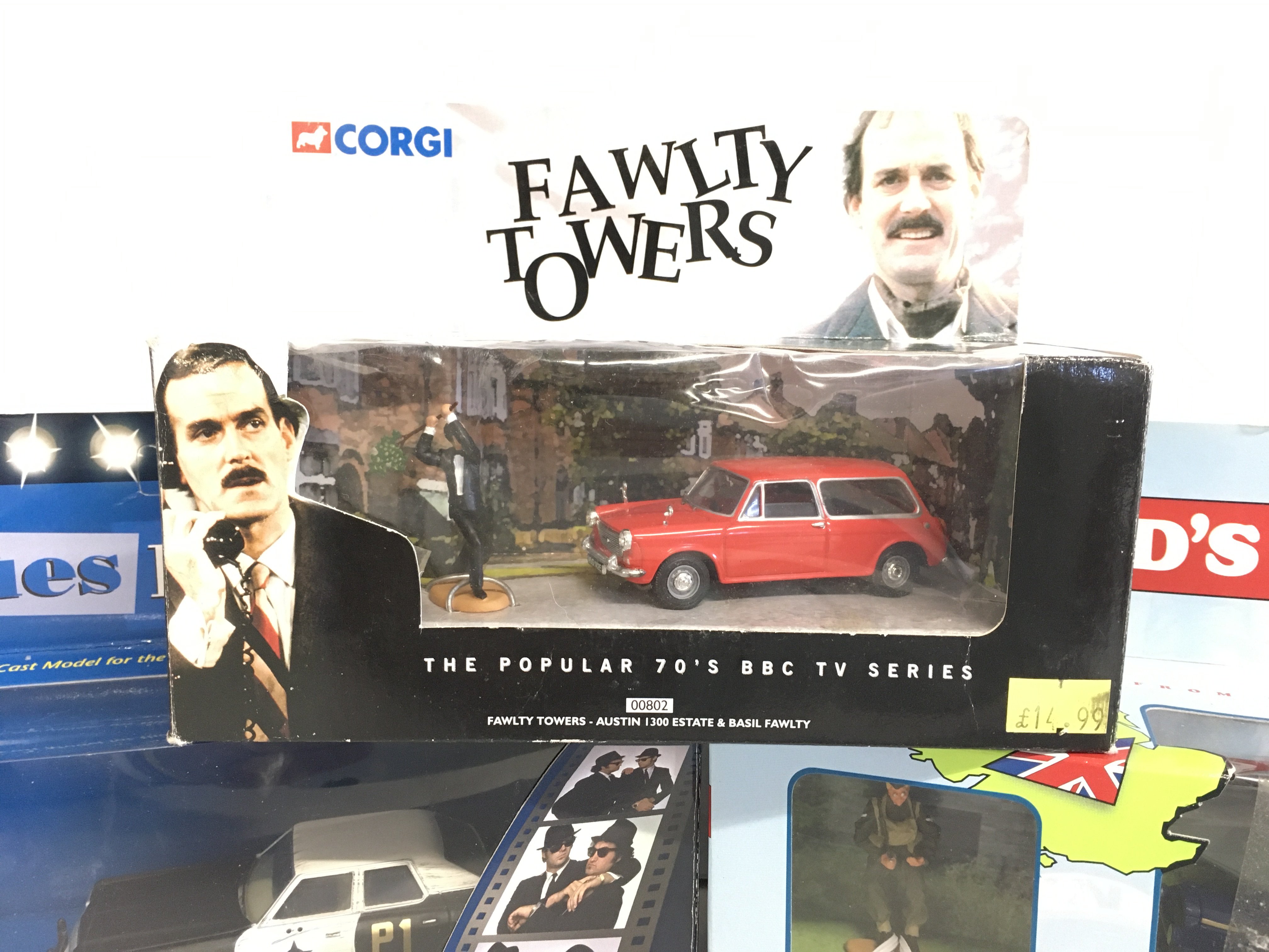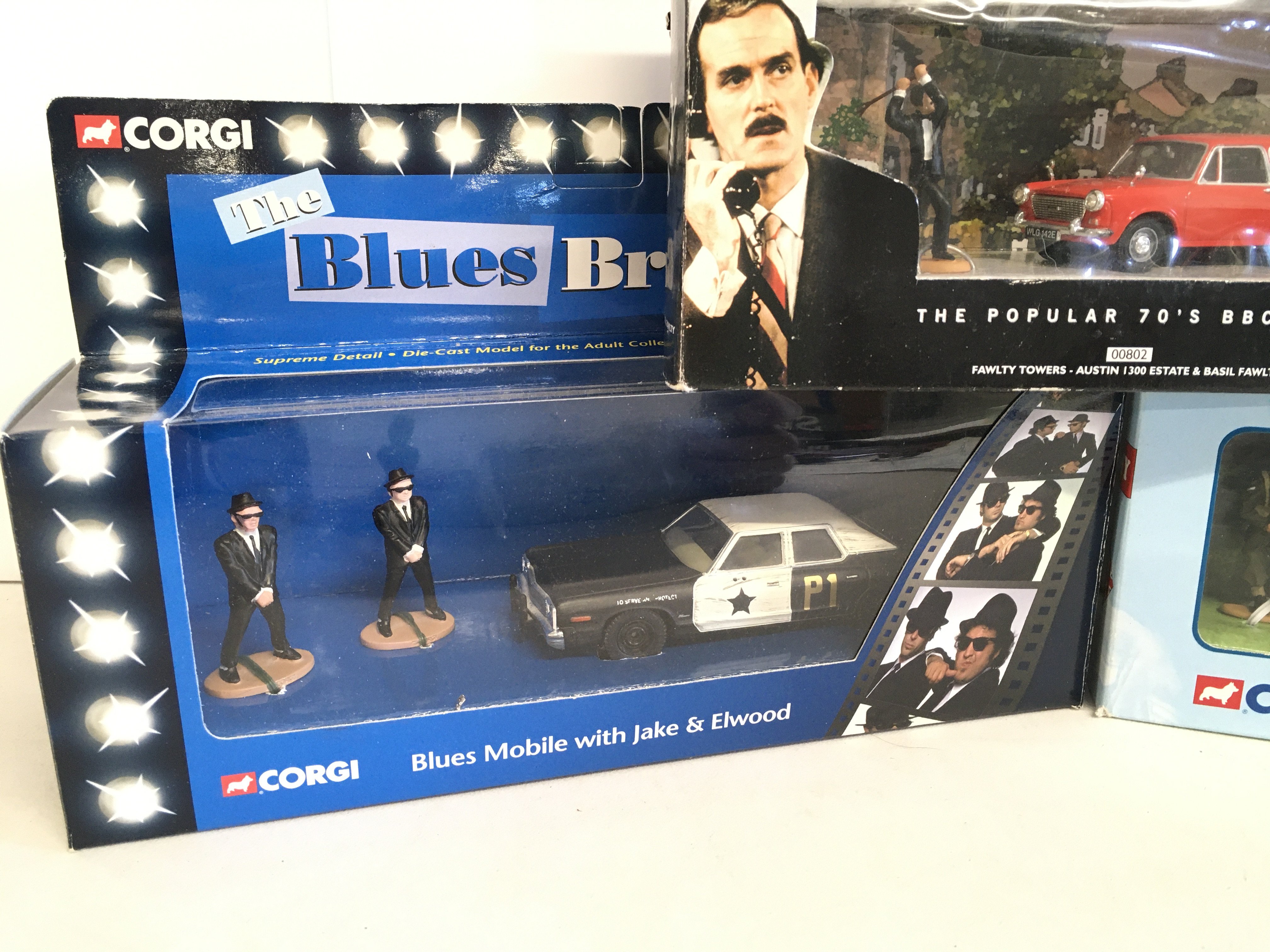 A Boxed Corgi Blues Brothers Mobile. A Dads Army Butcher Van And A Fawlty Towers Austin 1300 Estate.