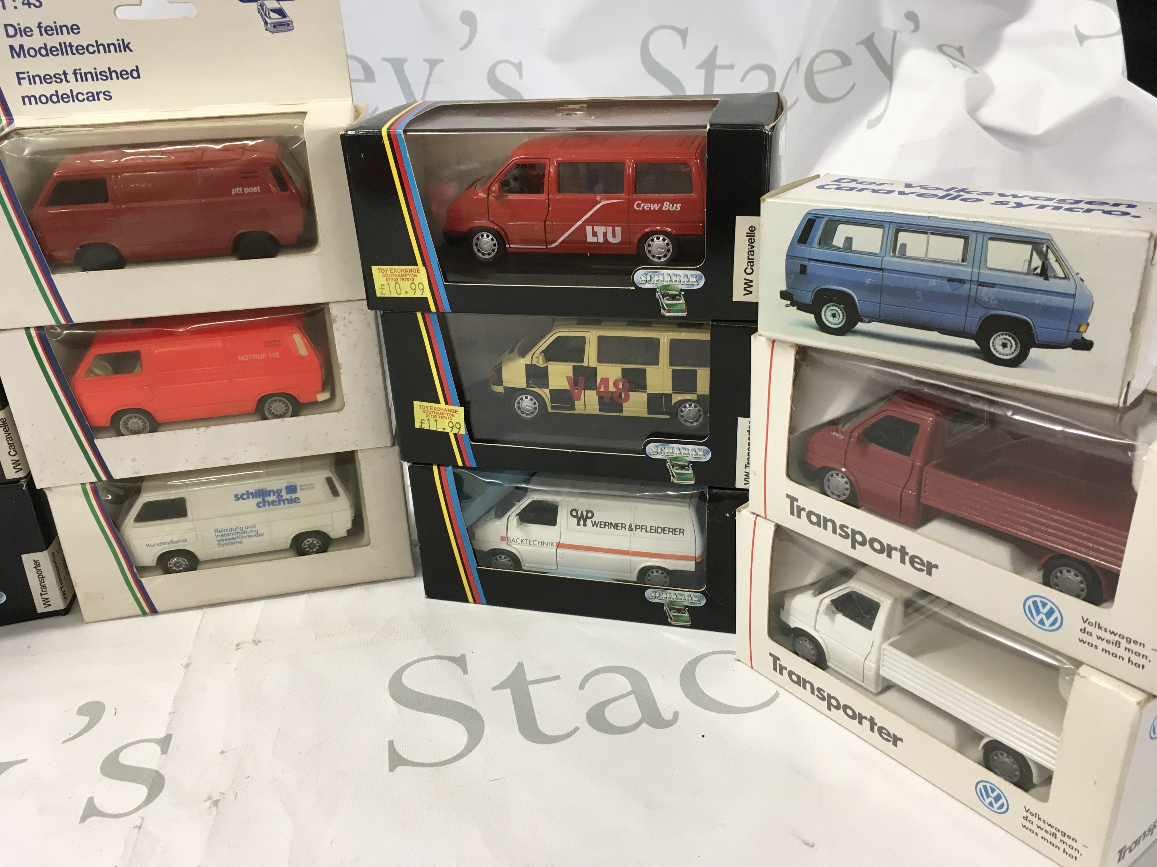 A collection of boxed diecast model vehicles featuring Volkswagen manufactures include Schabak etc. No reserve