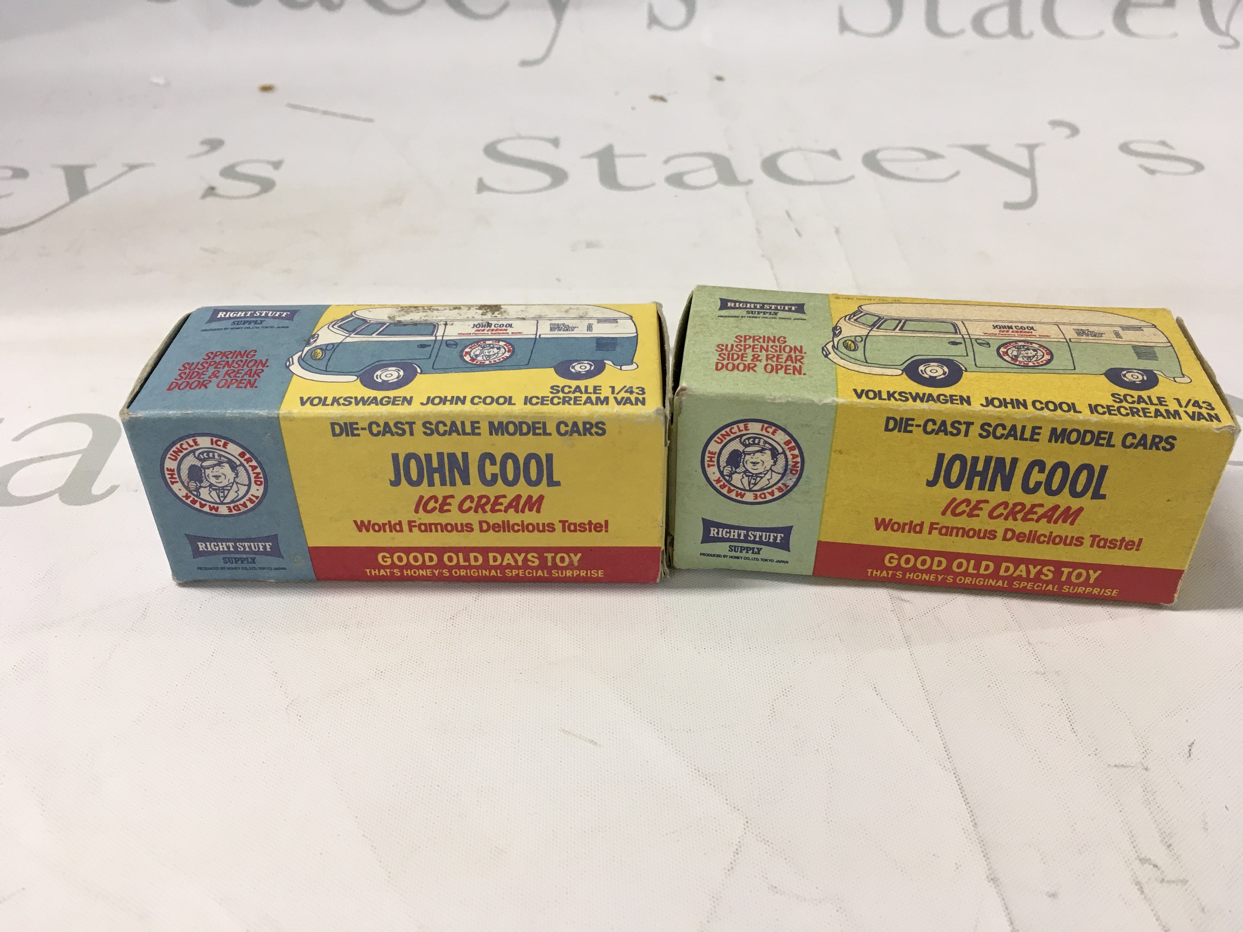 2 x boxed diecast model Volkswagen John Cool ice cream vans. No reserve