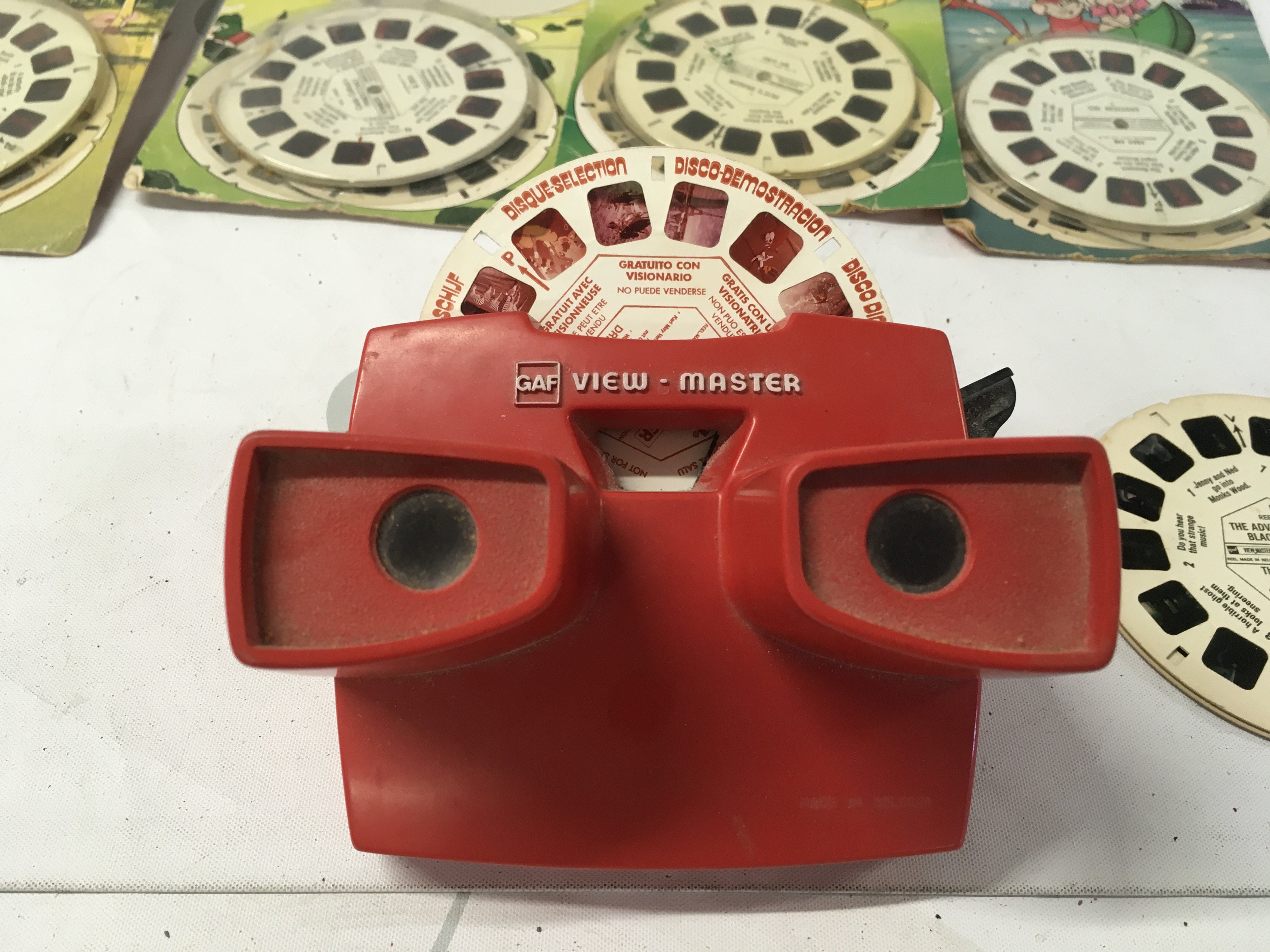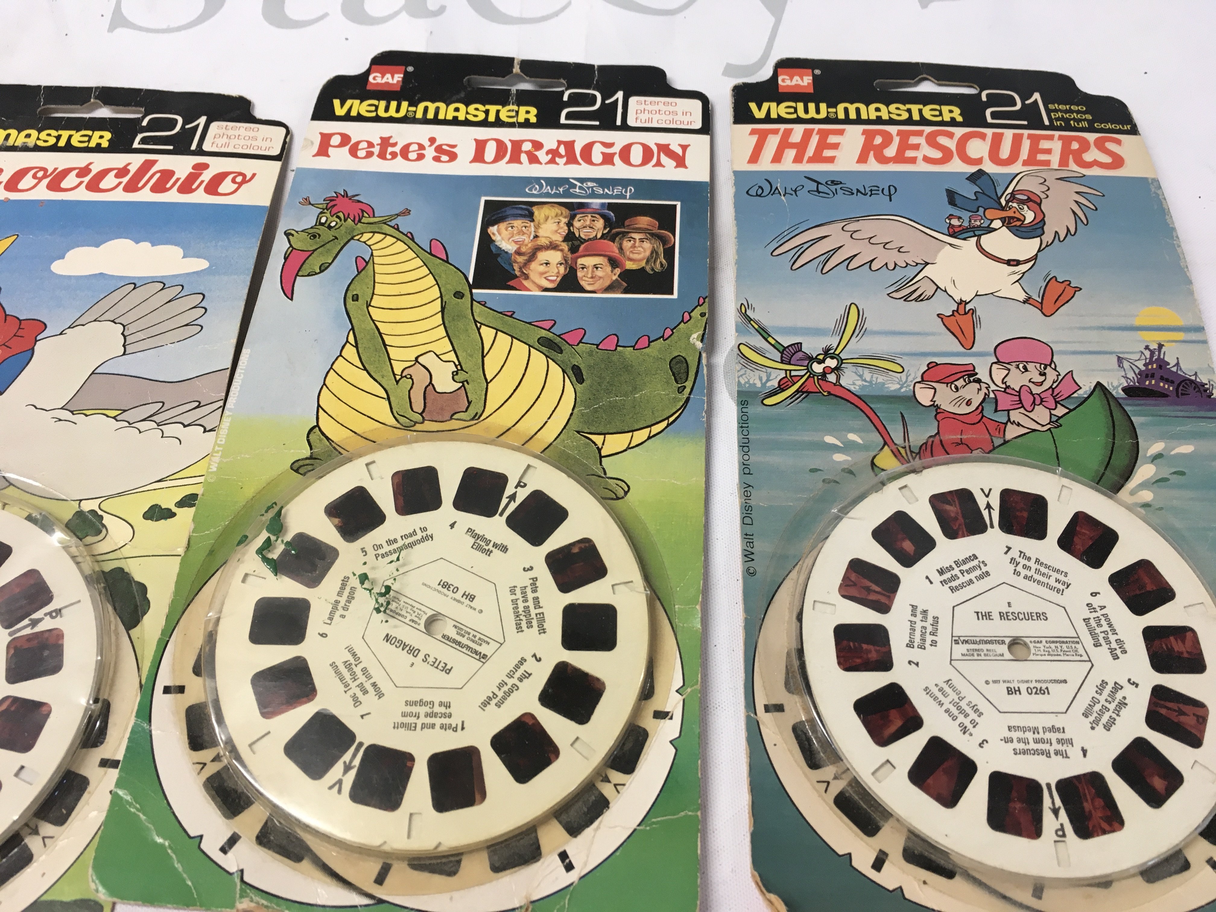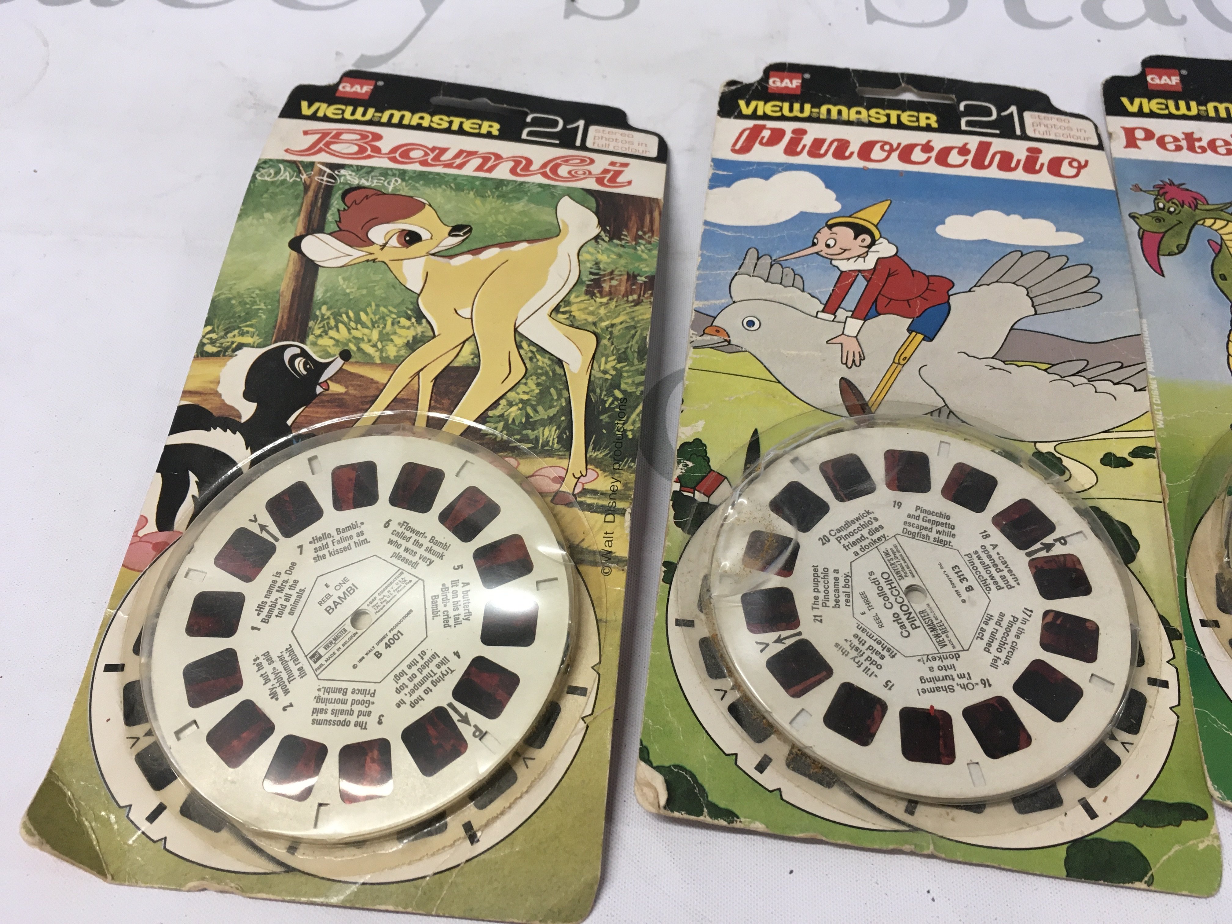 A vintage view master with 5 sets of reels plus a demonstration reel. Reels include Disney3 disc sets..Bambi..Pinocchio..Black Beauty..Petes Dragon..The Rescuers. All in their original packaging except Black beauty. No reserve