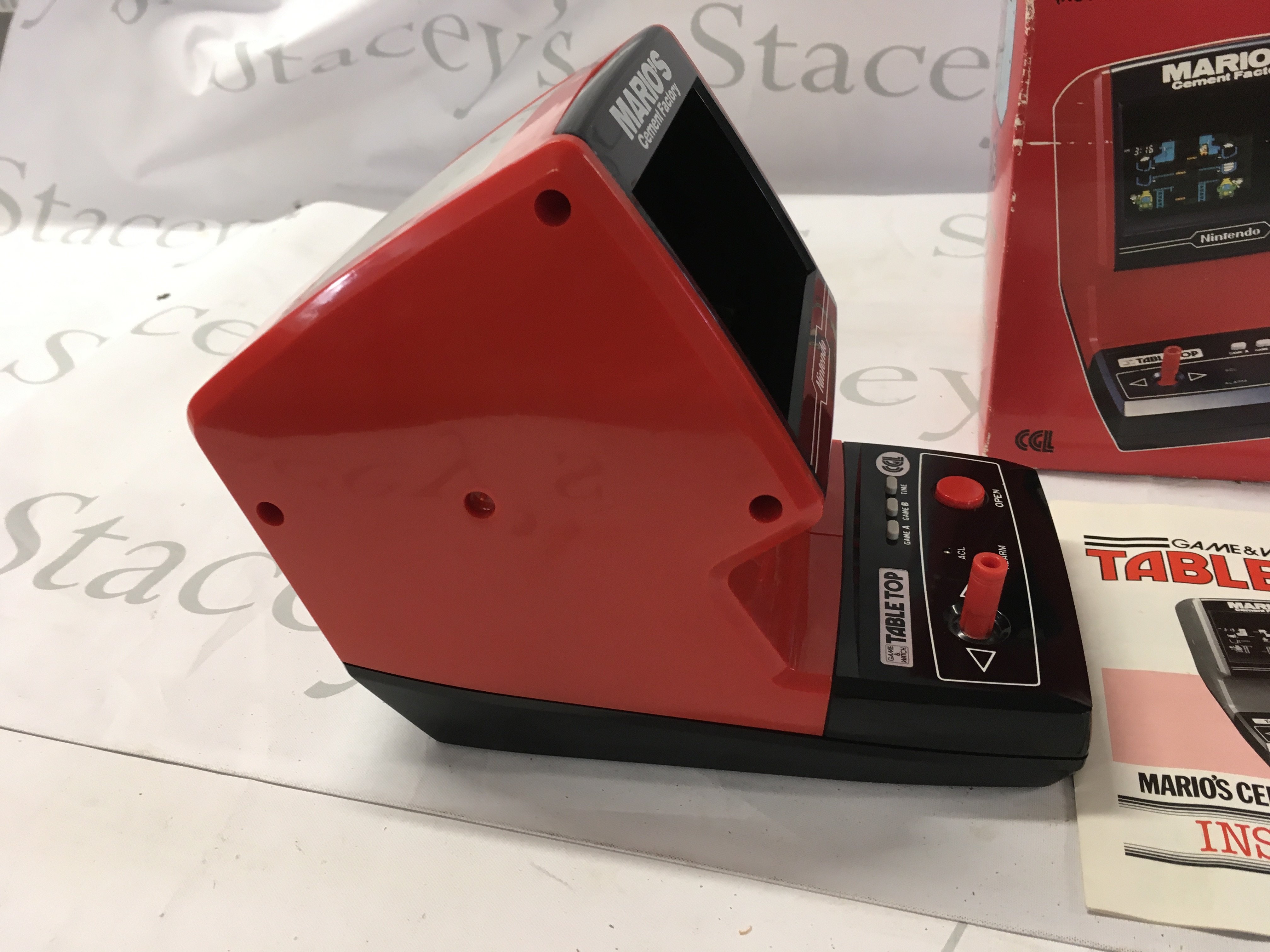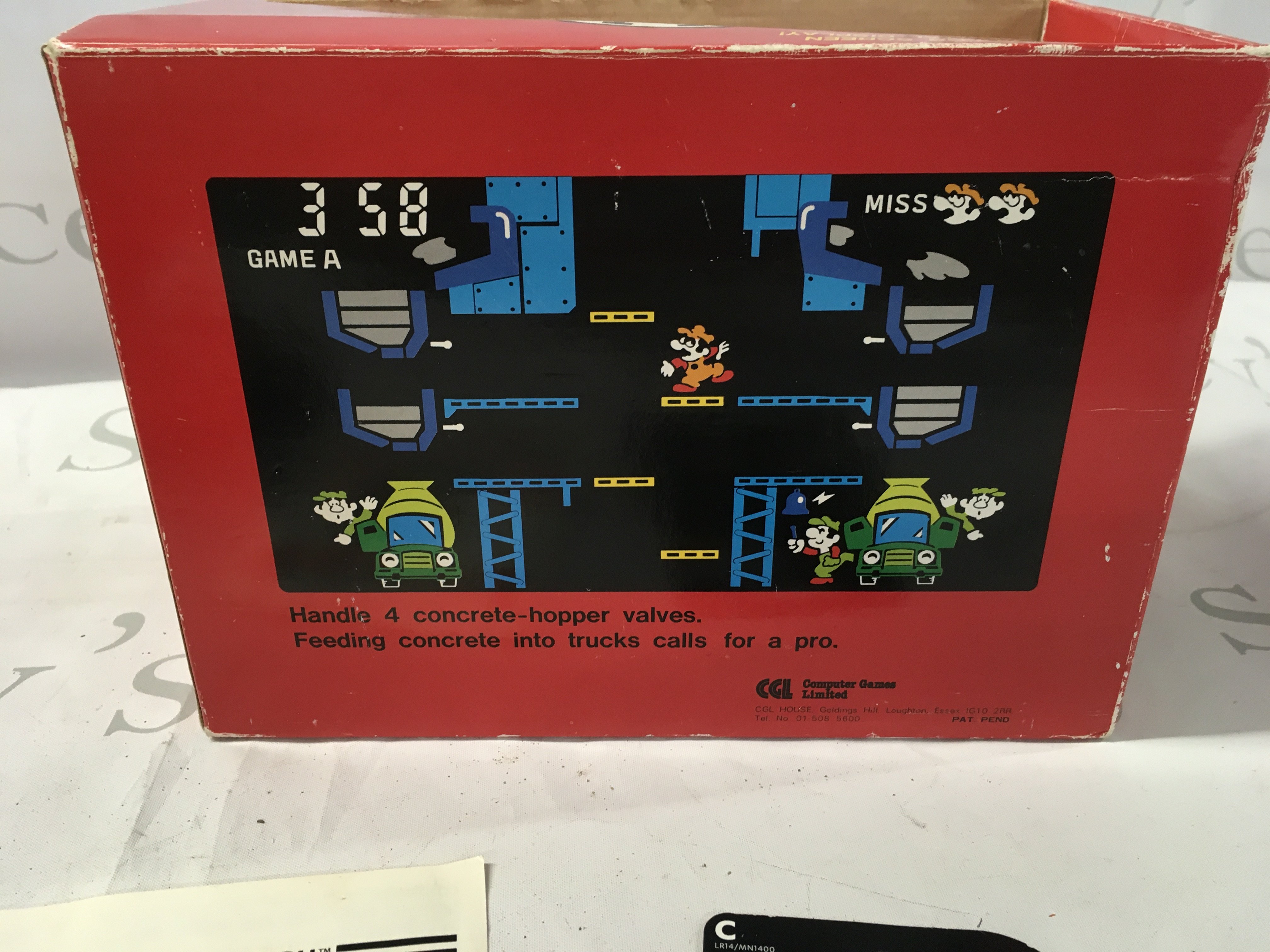 A boxed Table Top Game and Watch….Marios Cement Factory in working order. Includes instructions. No reserve