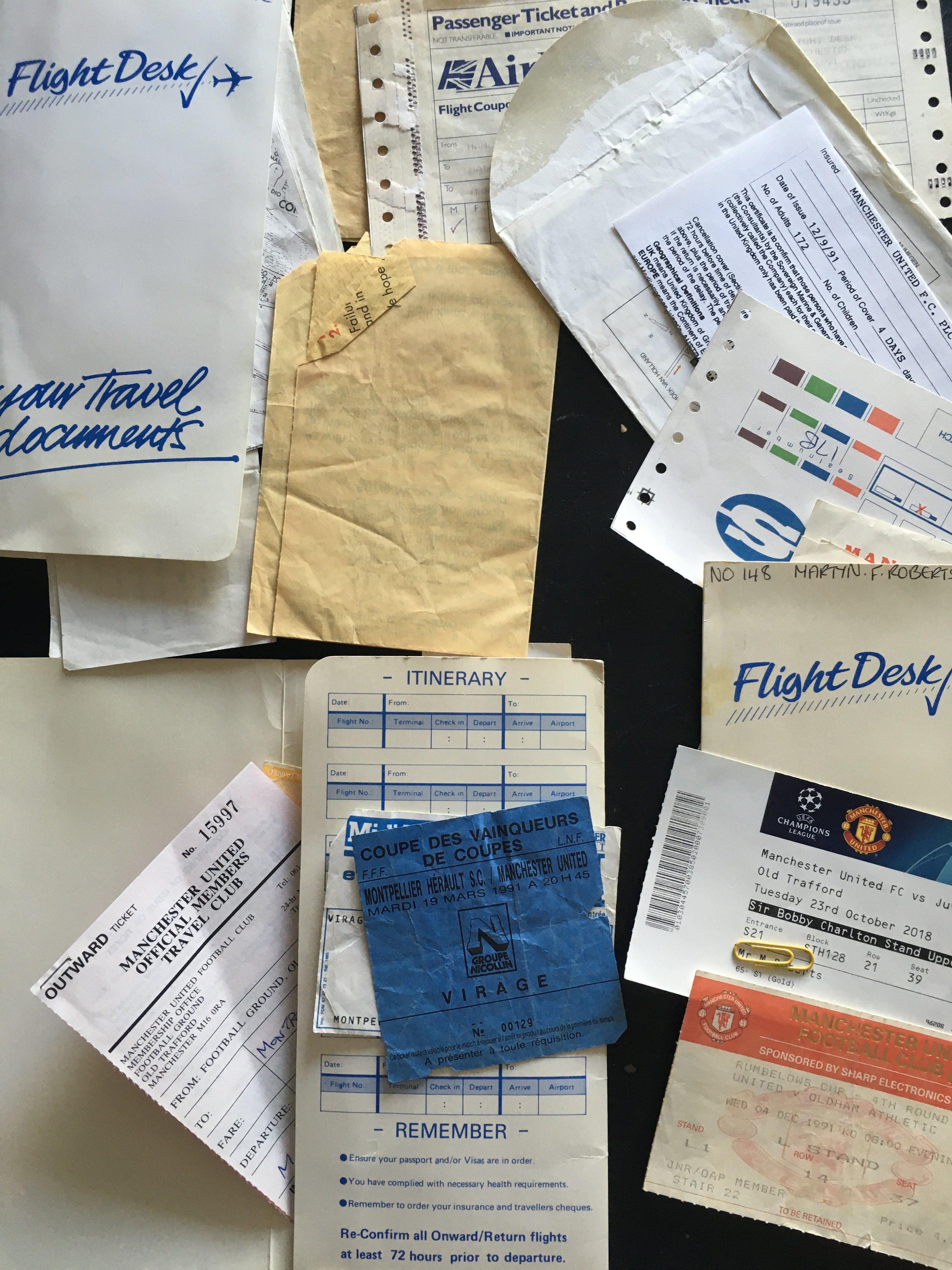 Manchester United European Away Tickets + Documents: Travel itineraries to 1991 Montpellier, Barcelona and 1994 Barcelona. C/W some other big match Man Utd tickets.