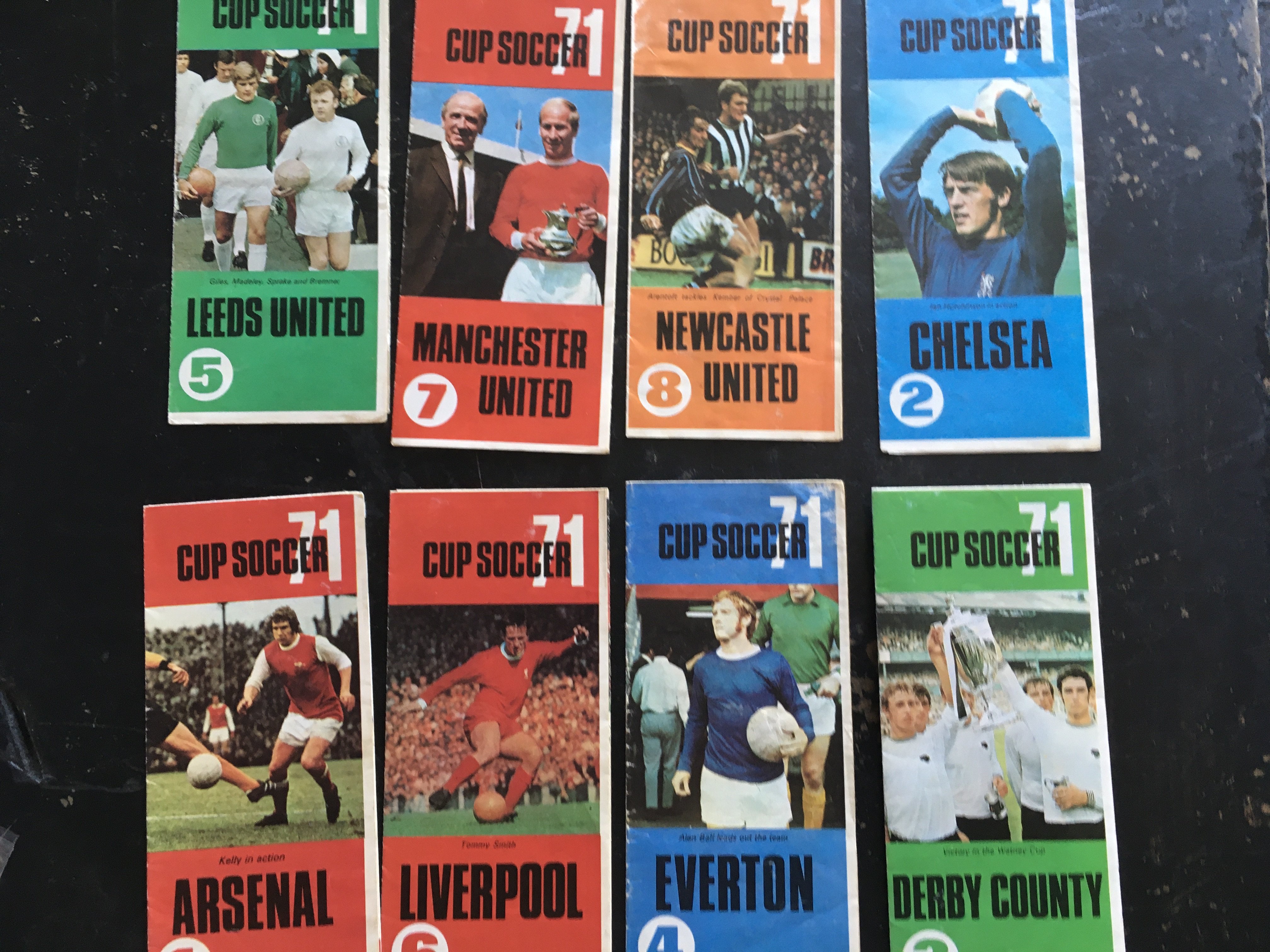 Action + Cup Soccer Magazine Sets: Todays Footballers In Action x 9 plus a complete set of 8 Cup Soccer 71 pullouts featuring clubs including Leeds Chelsea and Manchester United. Good.