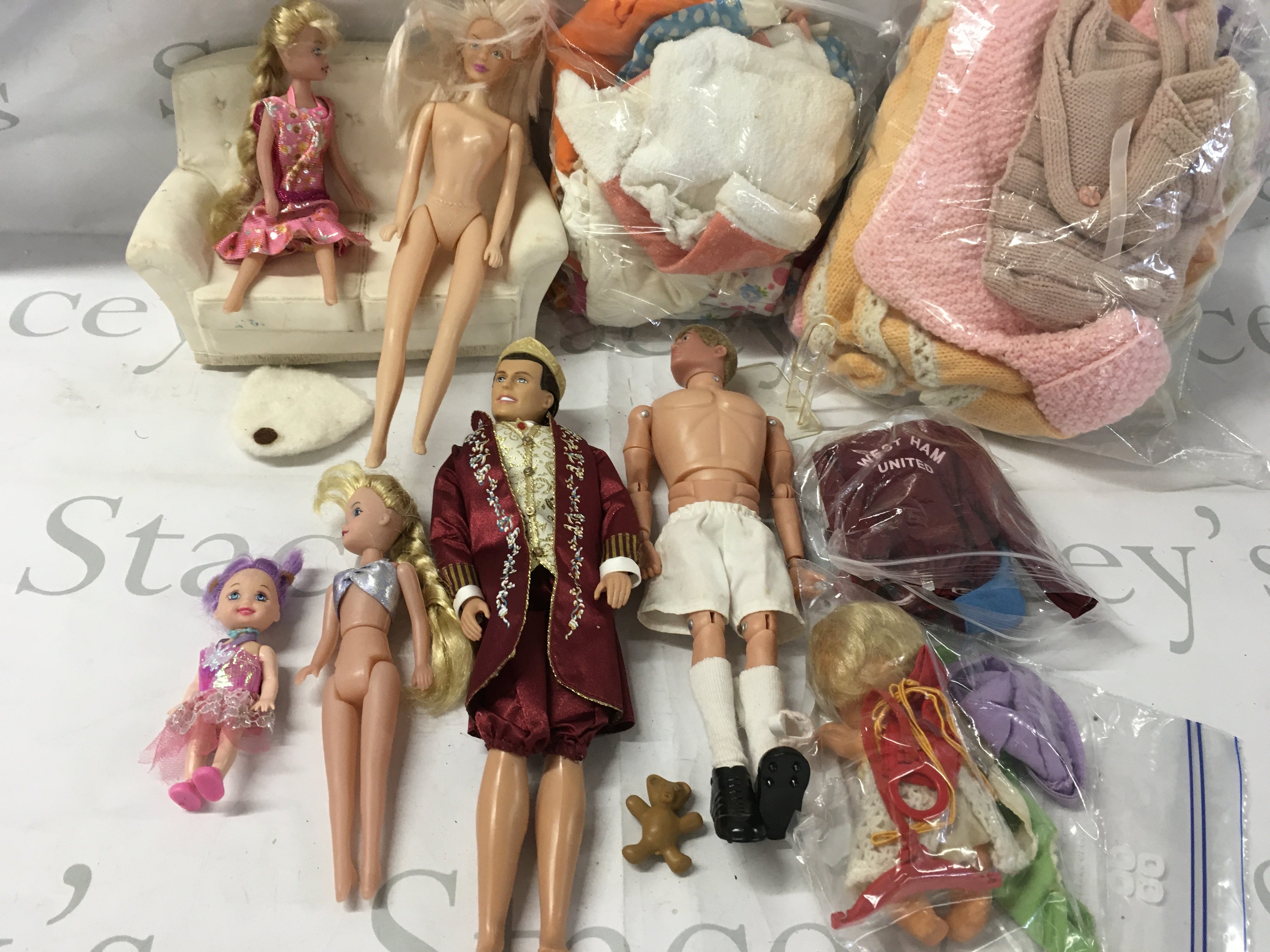 A collection of dolls plus action man with 3 bags of clothes. No reserve