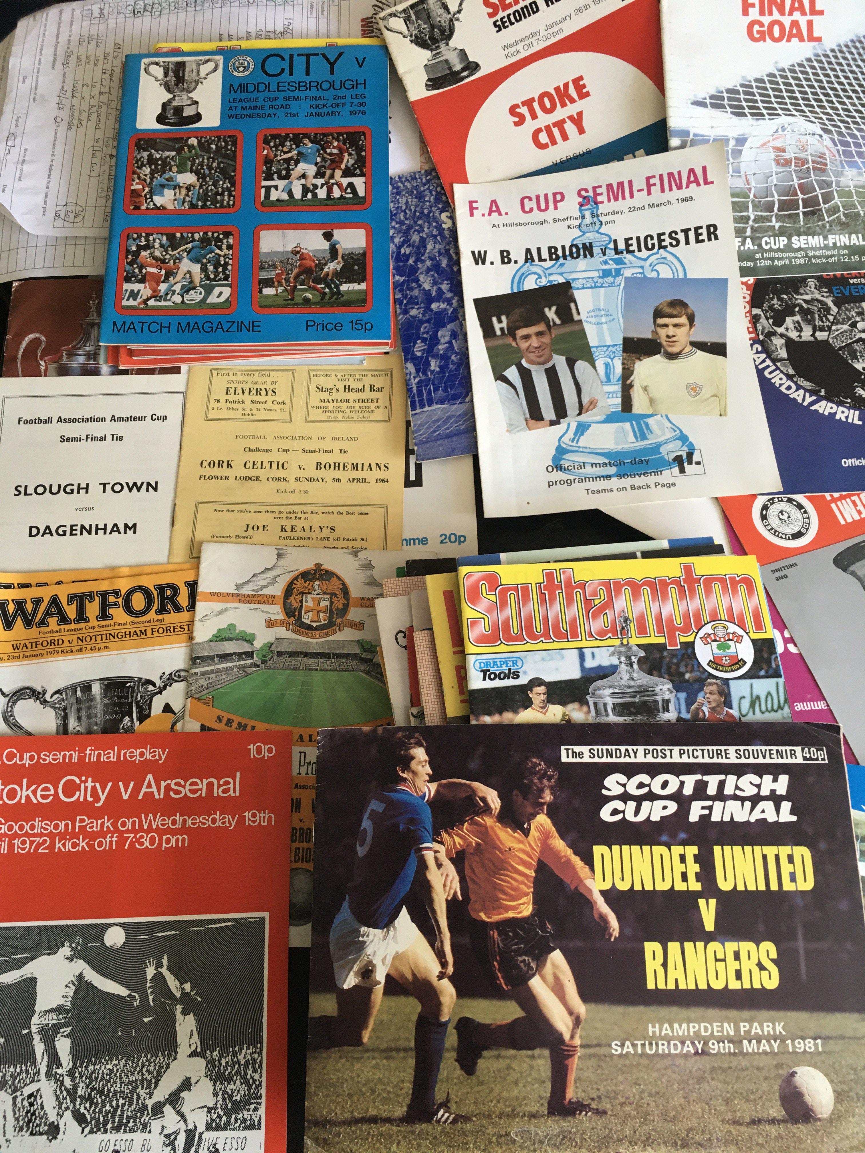 International + Semi Final Football Programmes: Many of the Internationals do not include the home nations and are from the 50s onwards but include 1948 Gt Britain v France Olympics. Semi finals from many competitions including League Cup, FA Cup and much more. Good with duplication. (est 150)