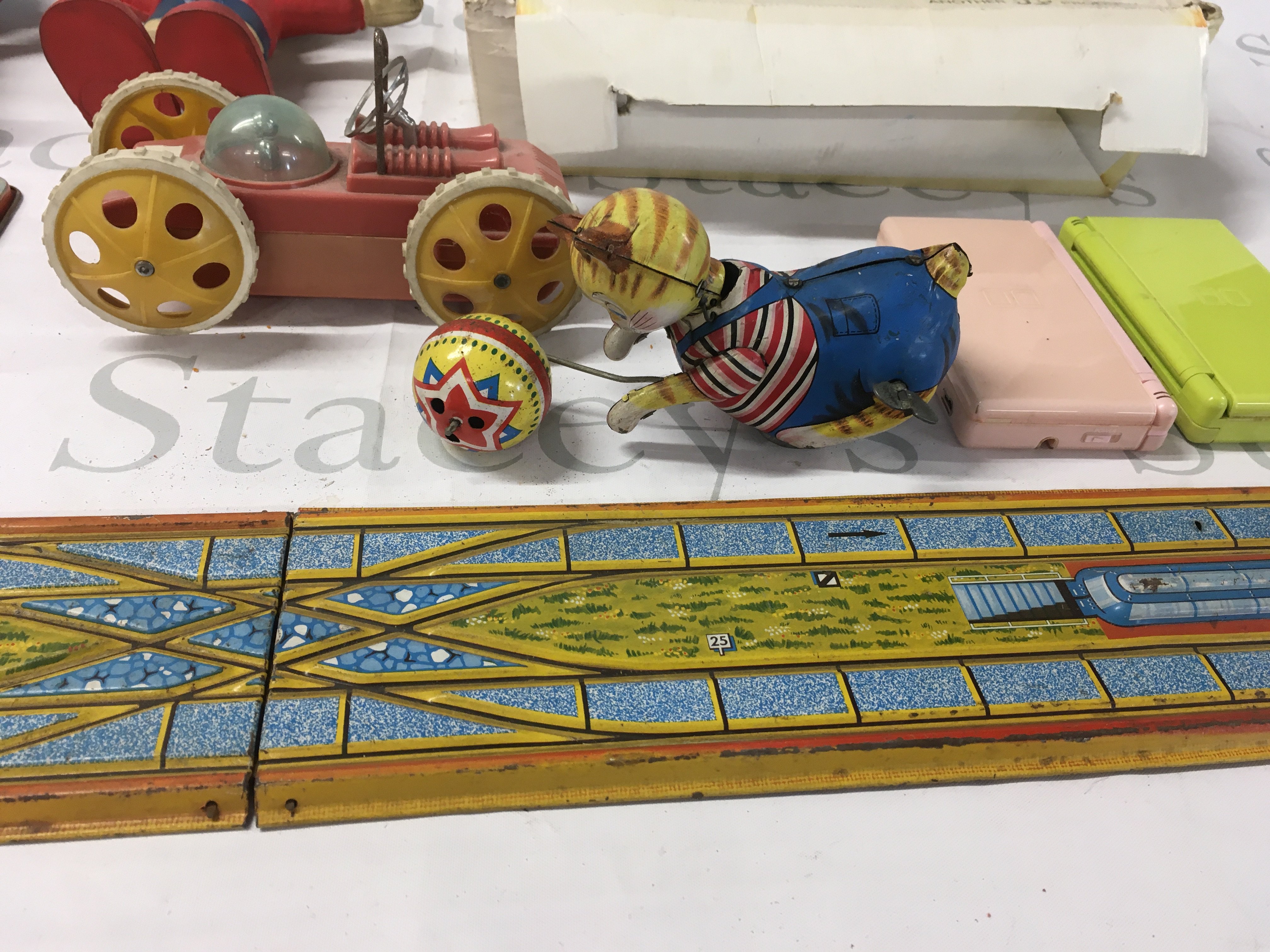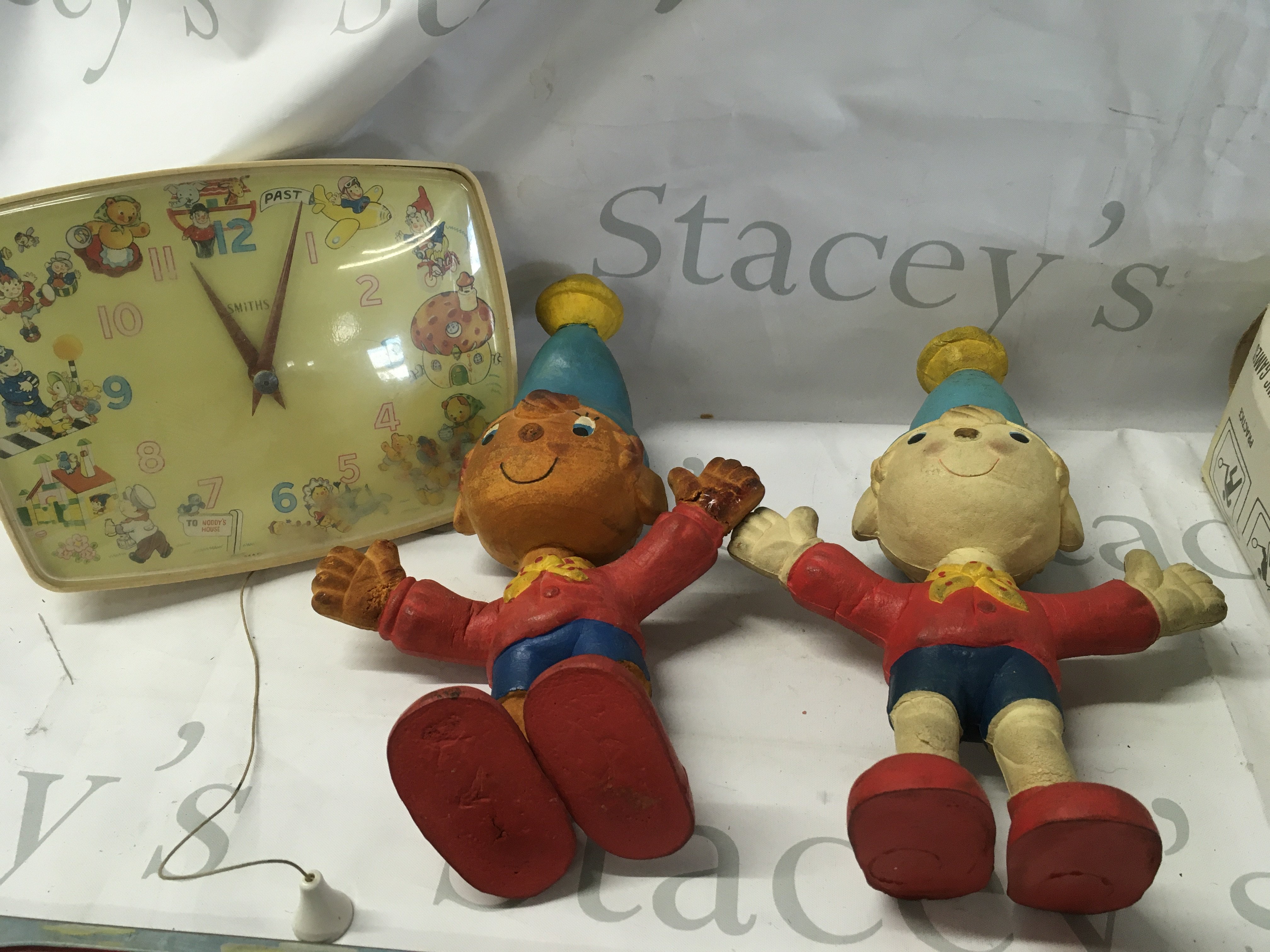 An assorted collection including Noddy toys and clock…a Binatone TV Master mkIV. ..tinplate toys..2 Nintendo DS in pink and green. No reserve