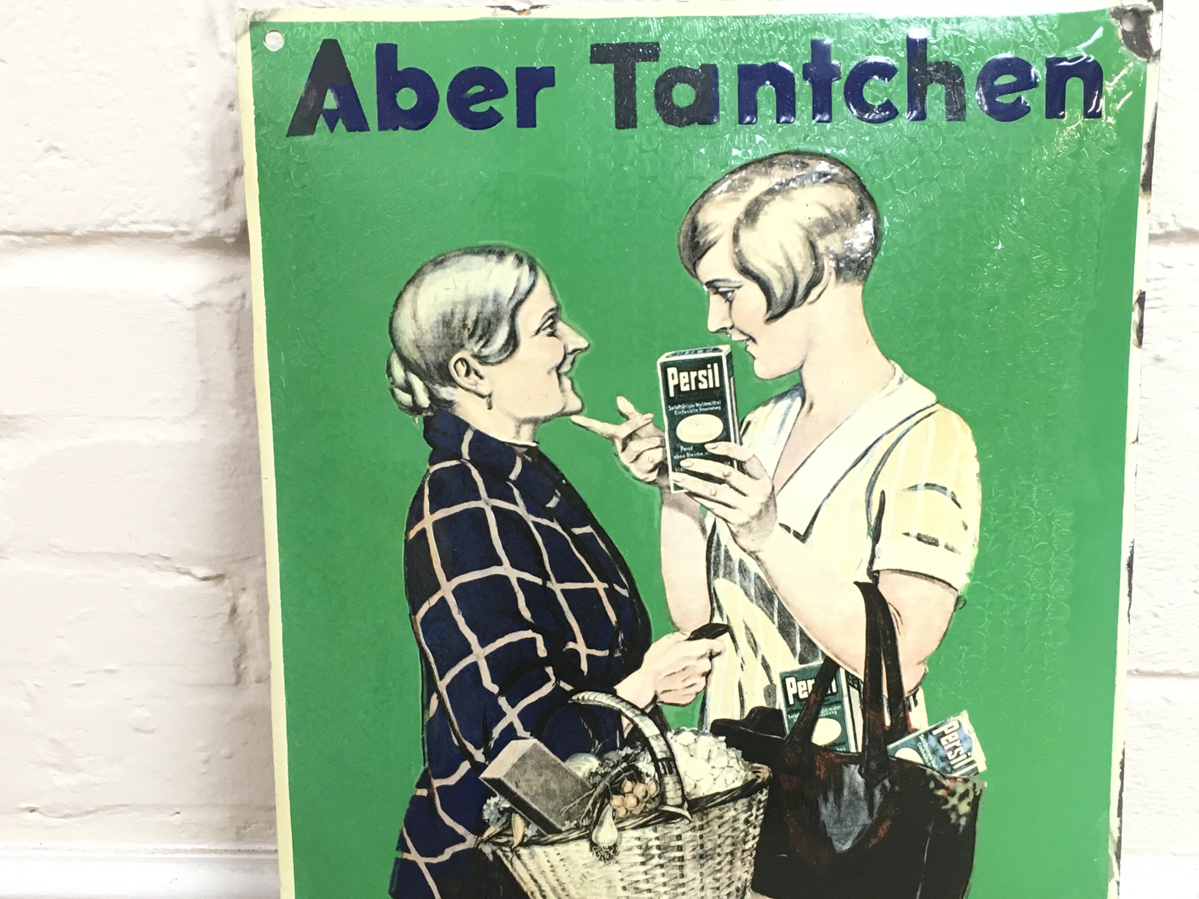 ENAMEL SIGN "ABER TANTCHEN, MAN WÄSCHT DOCH MIT PERSIL 15 x 23 approximately