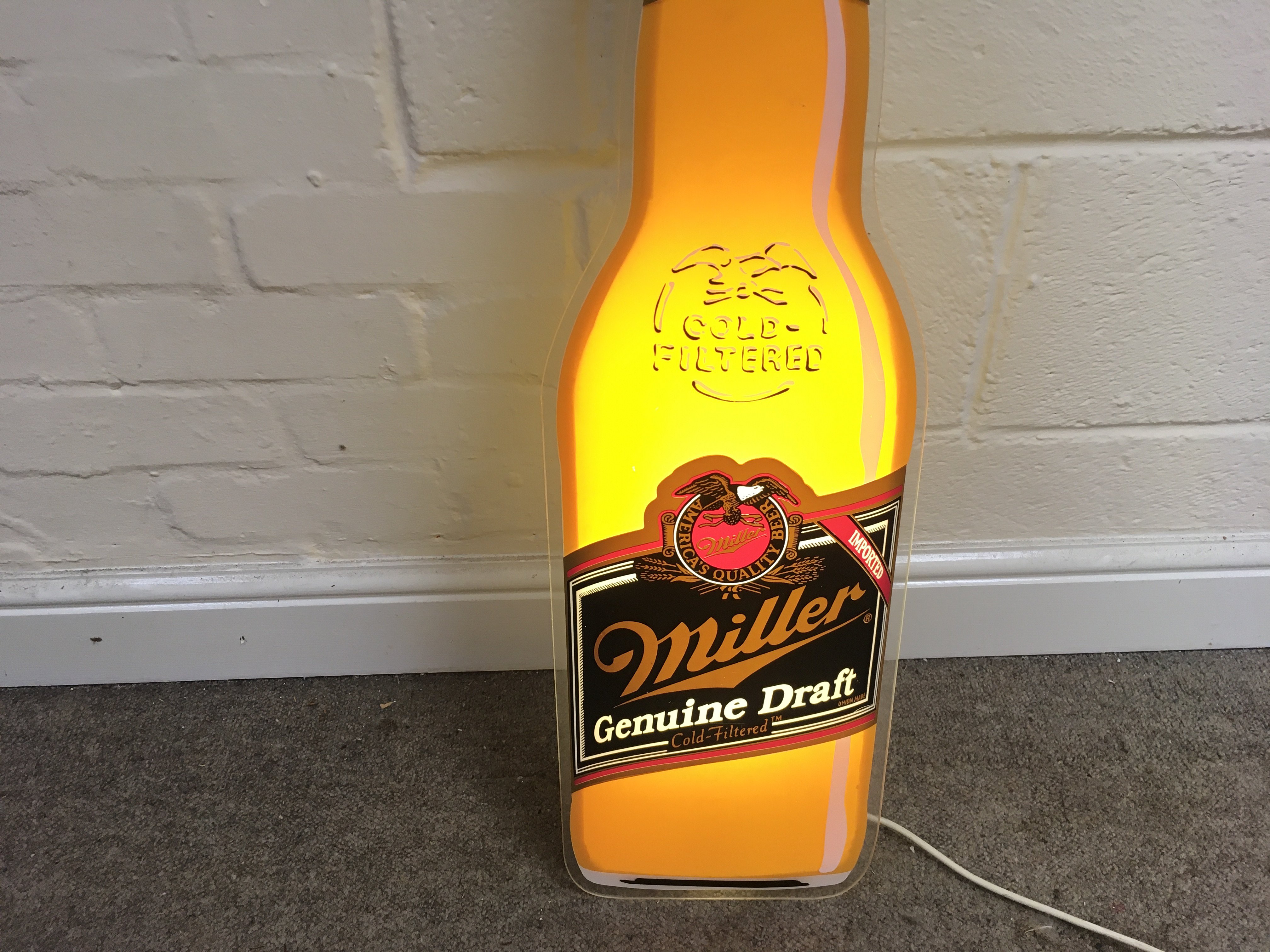 Miller Genuine Draft Light Up Advertising Neon Bottle Sign 32 x 9