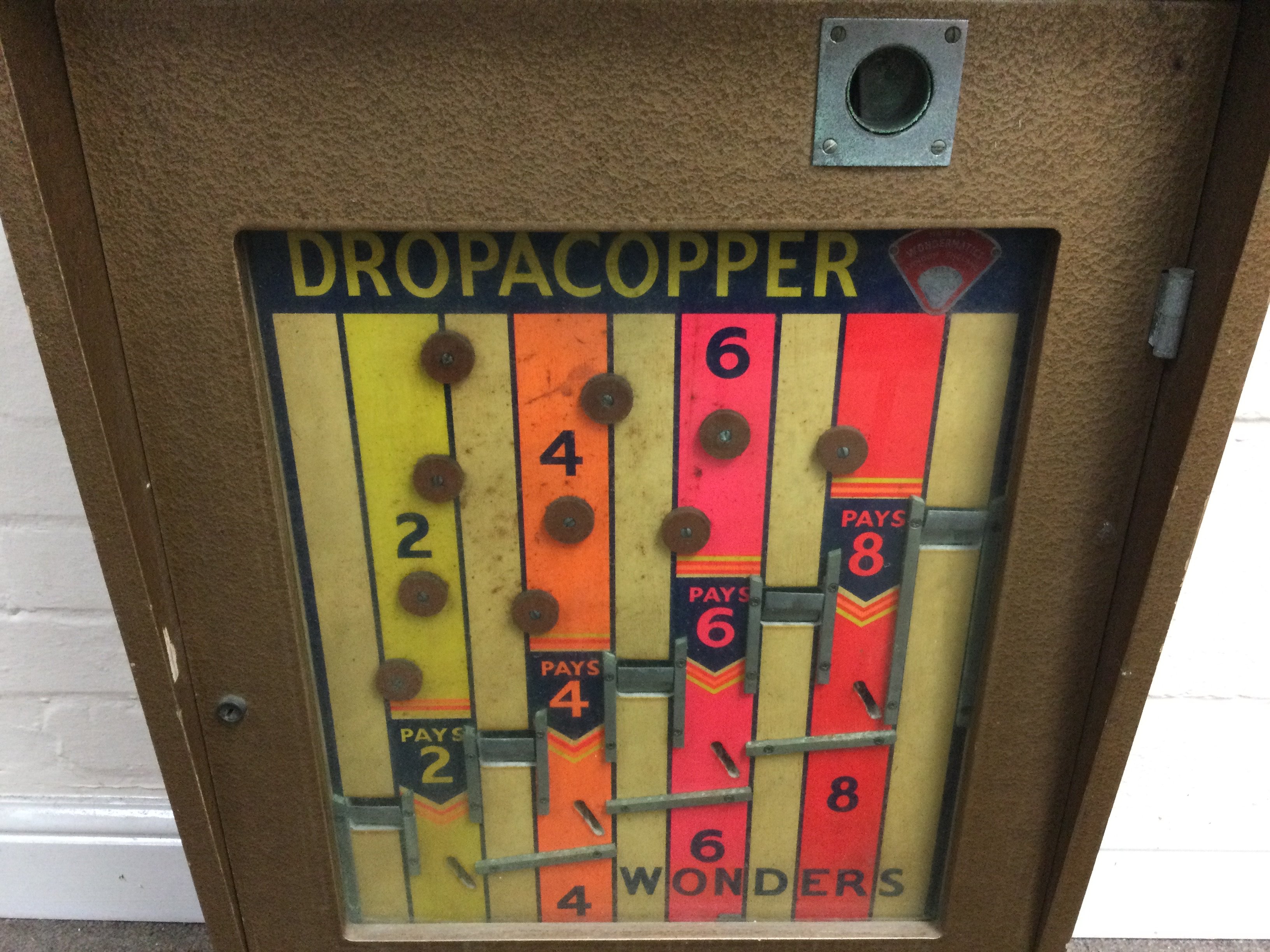 Wonder machine 'Drop a Copper' penny arcade gaming machine 32 x 20 x 9.5inches approximately