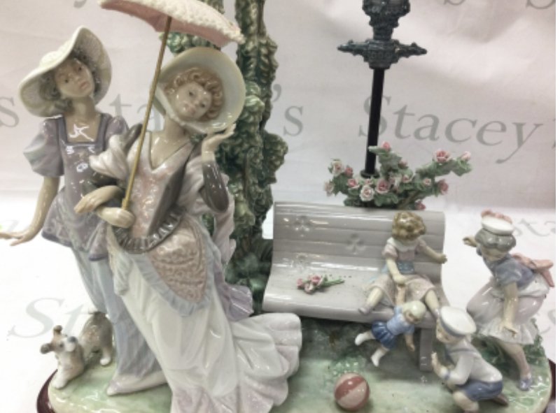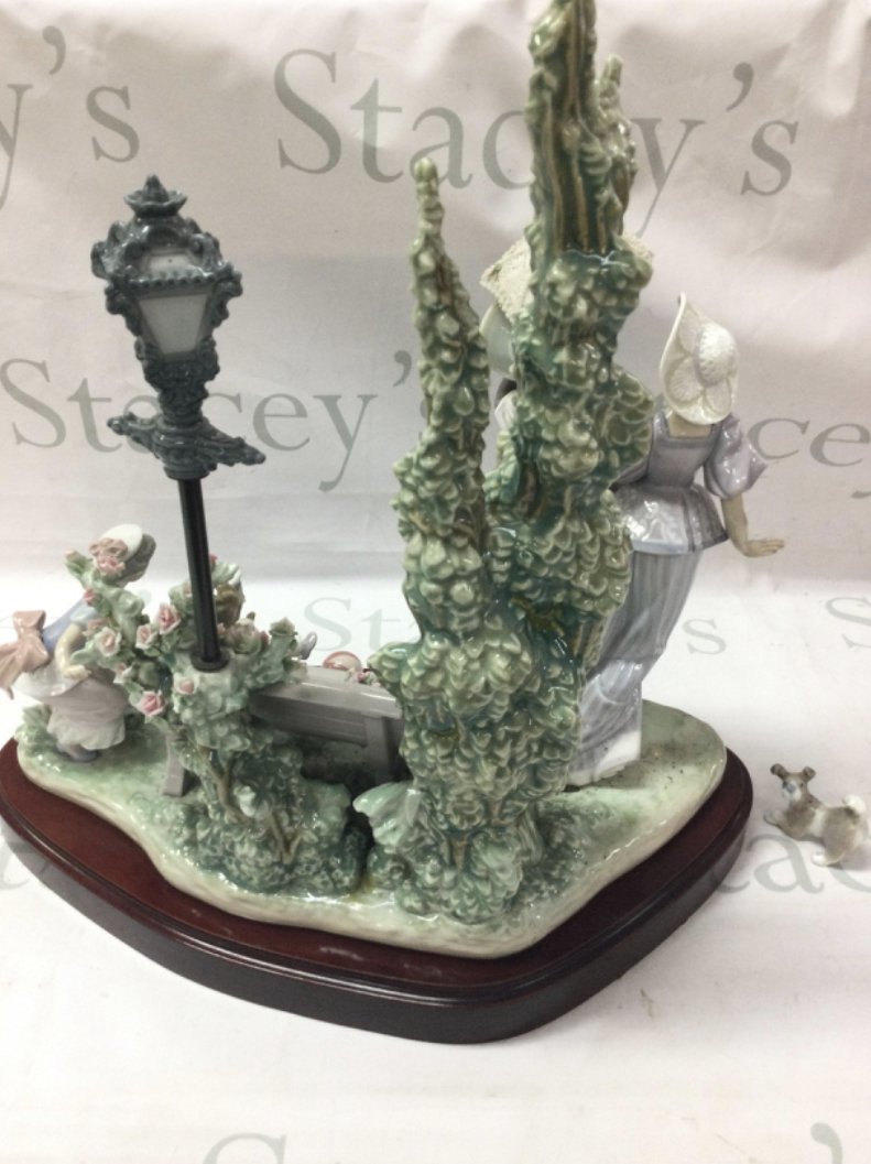 Lladro a Stroll in the Park figure group with stand, no obvious damage or restoration however the dog figure needs re gluing to the base. This lot cannot be posted