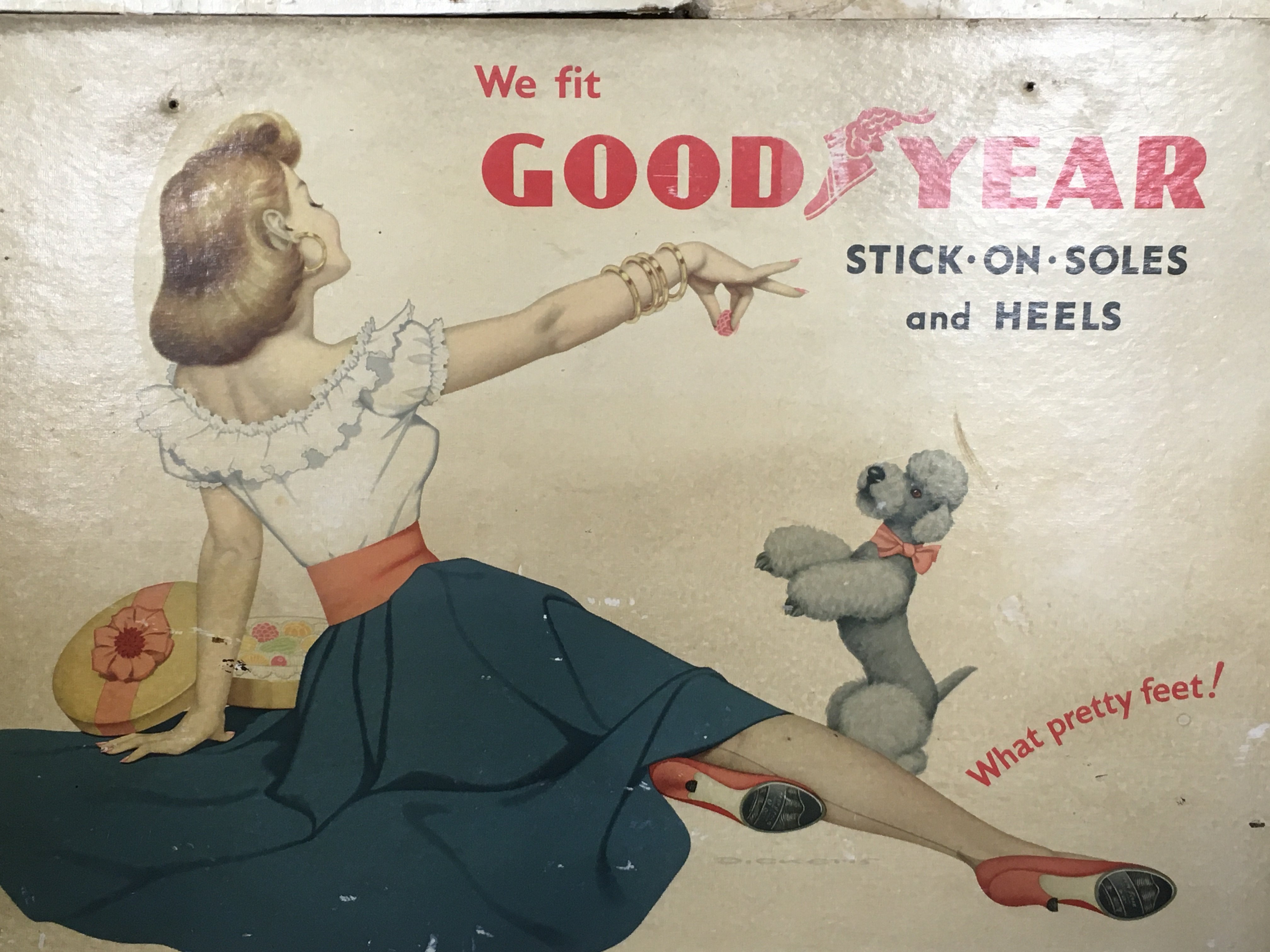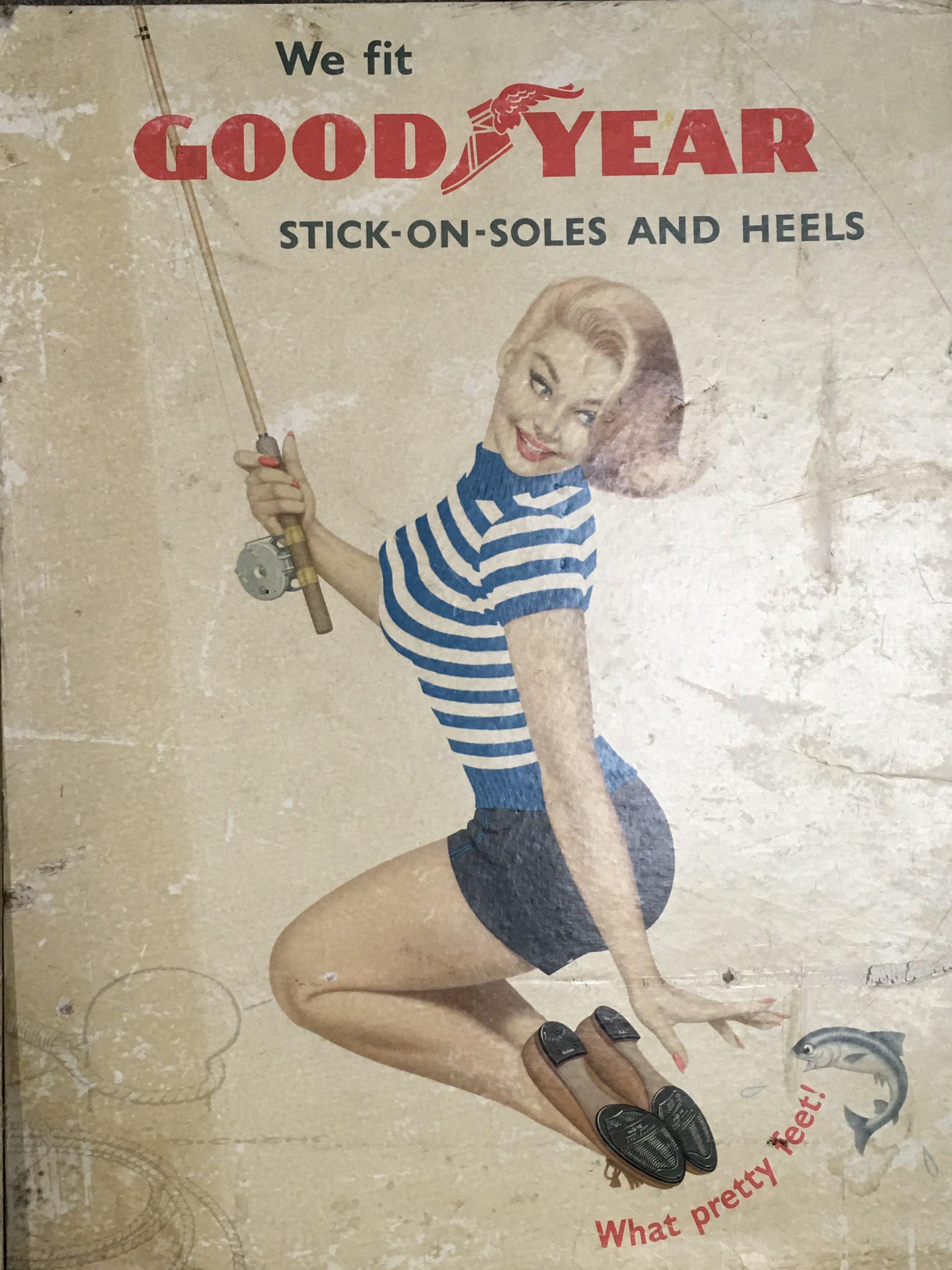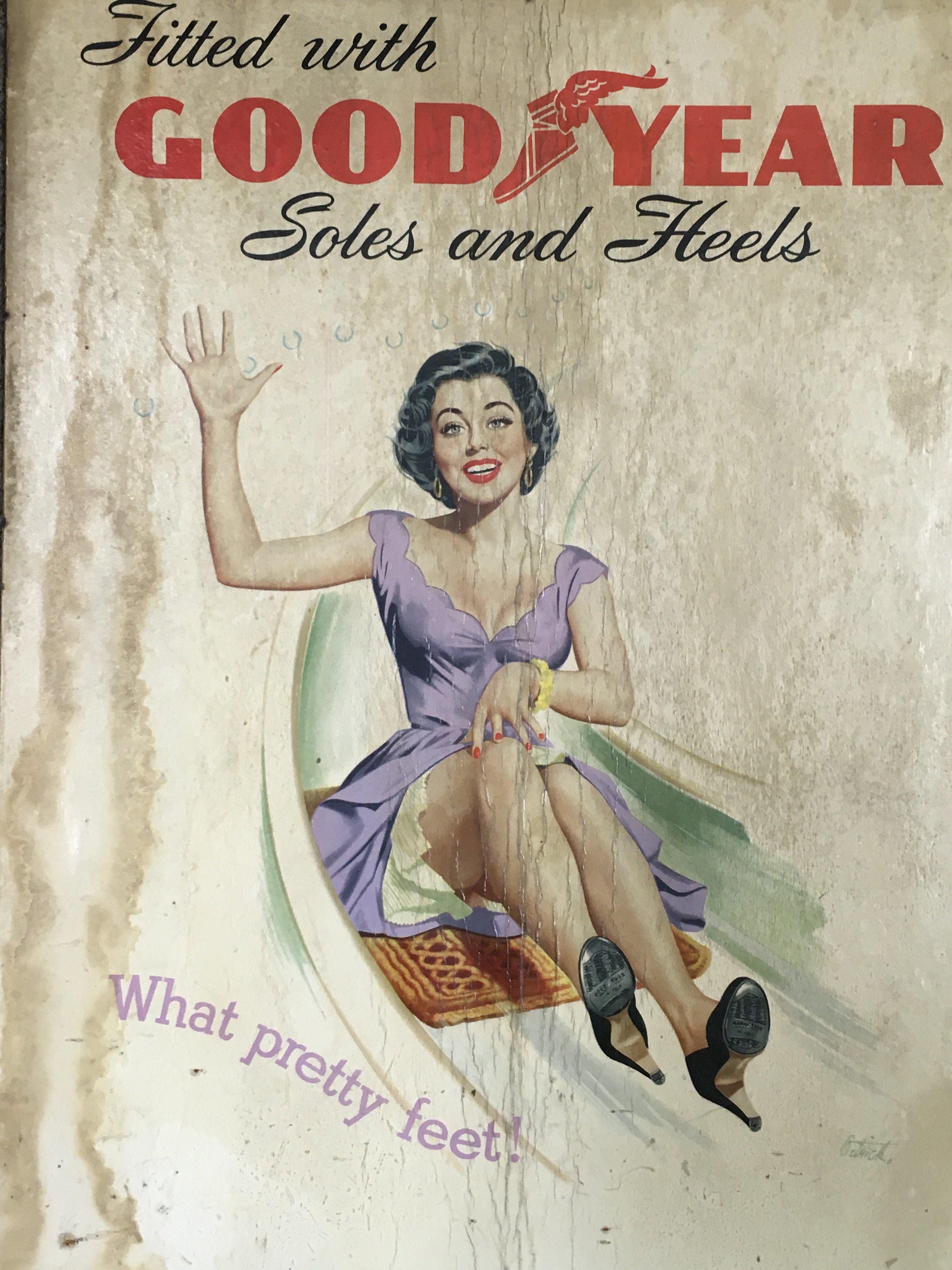 Vintage pin up style Good Year soles and heels advertisement cardboard posters . Dimensions 37x49cm