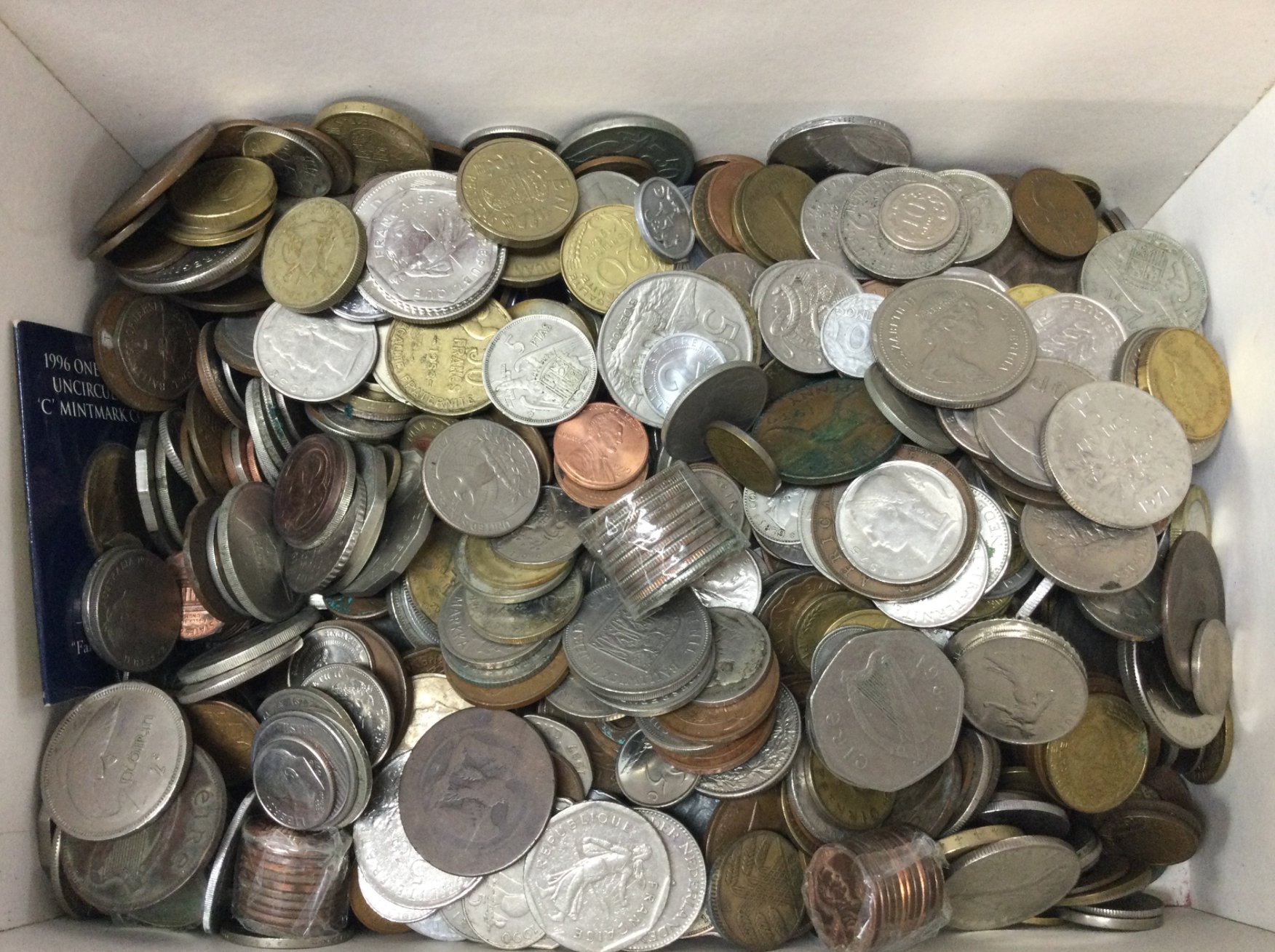 A box of mixed foreign coins , postage category B