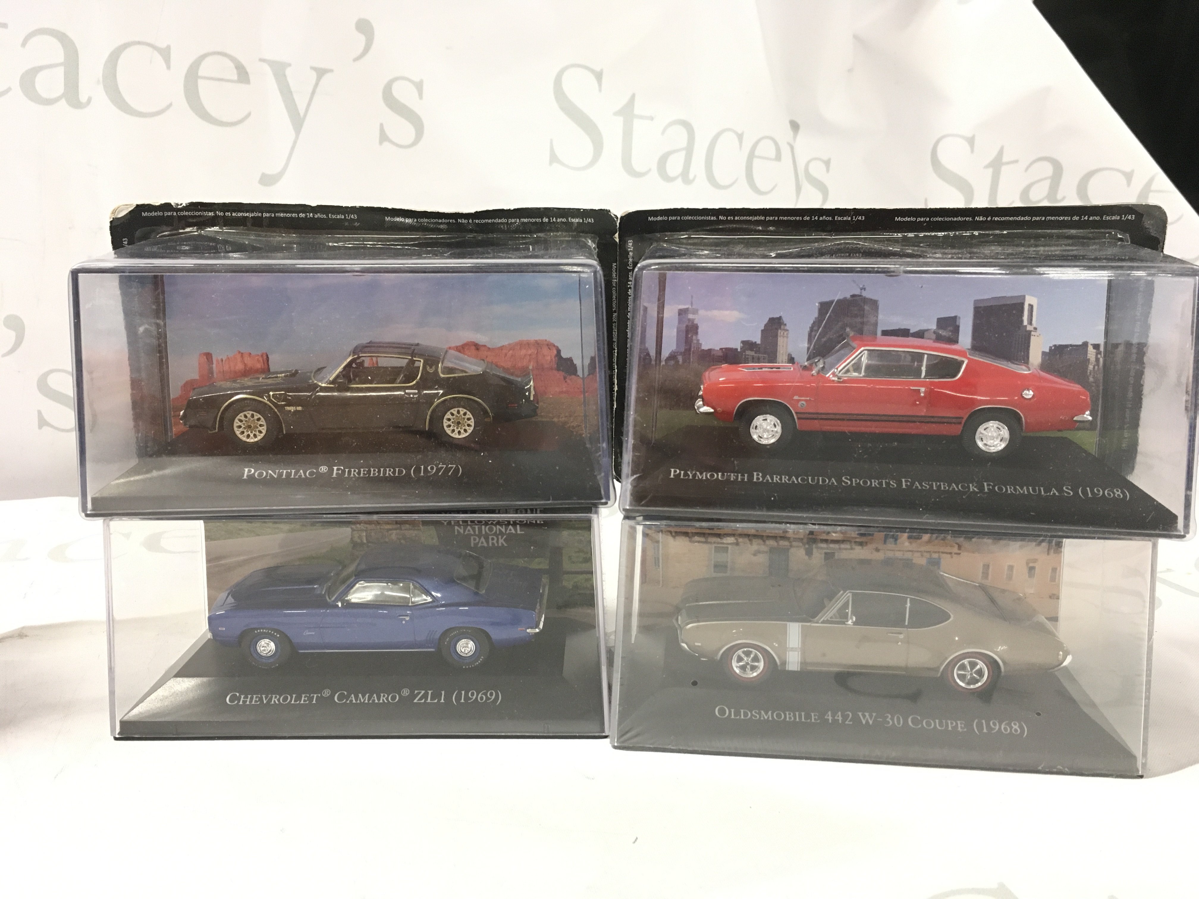 A collection of mostly unopened boxed diecast model cars by various manufacturers featuring American cars. No reserve