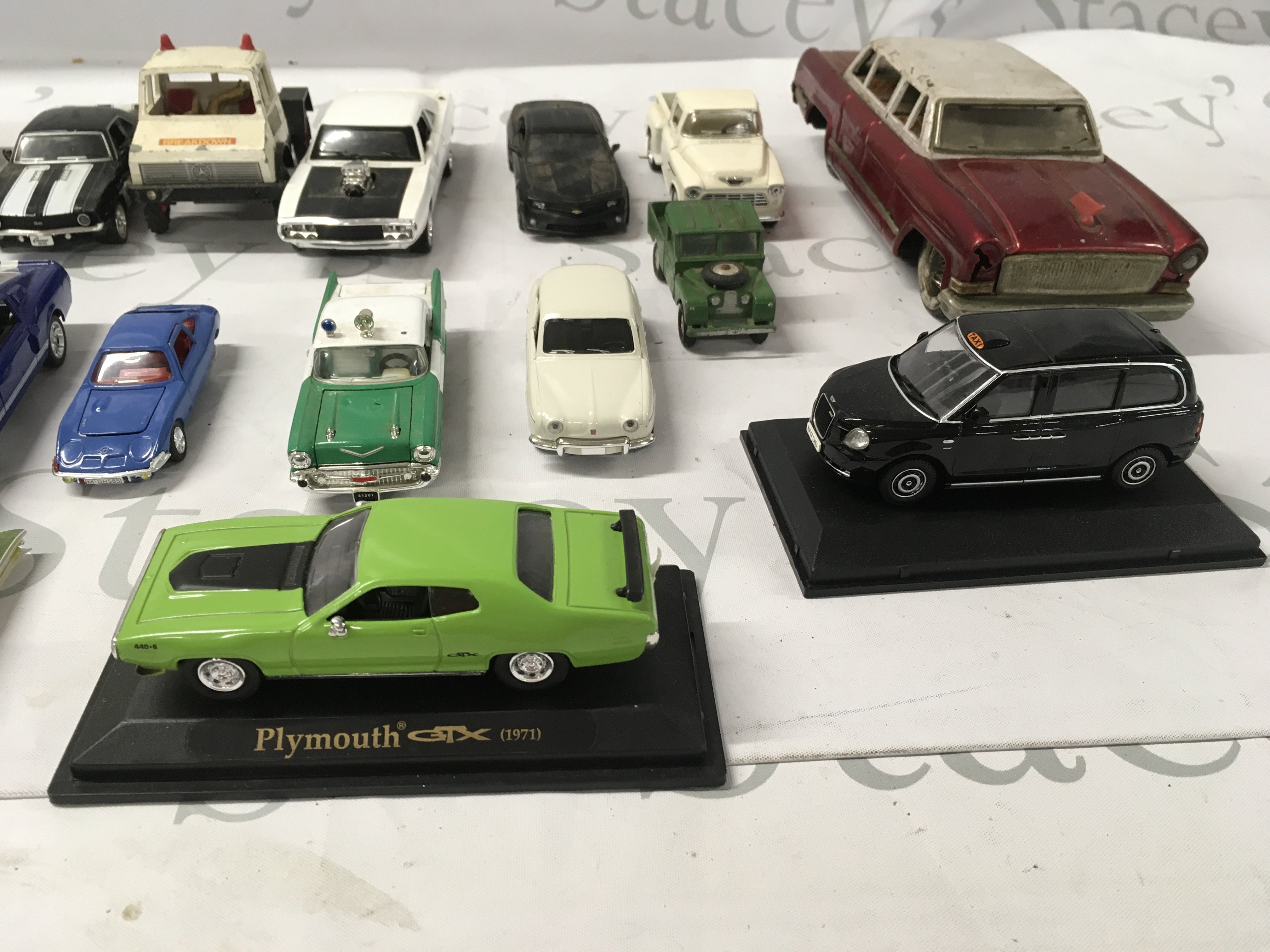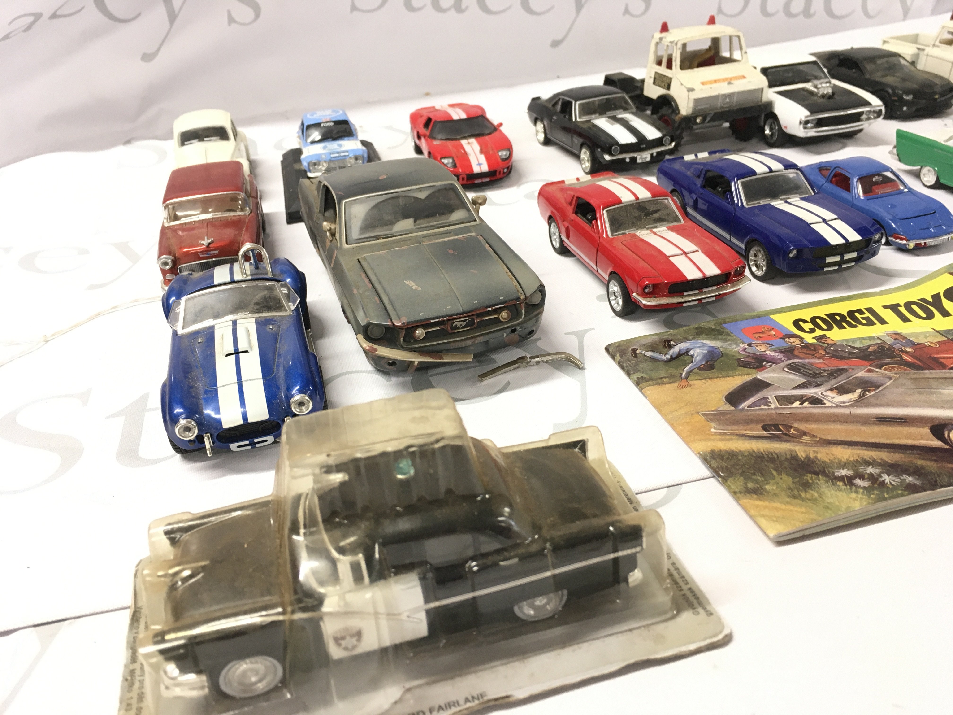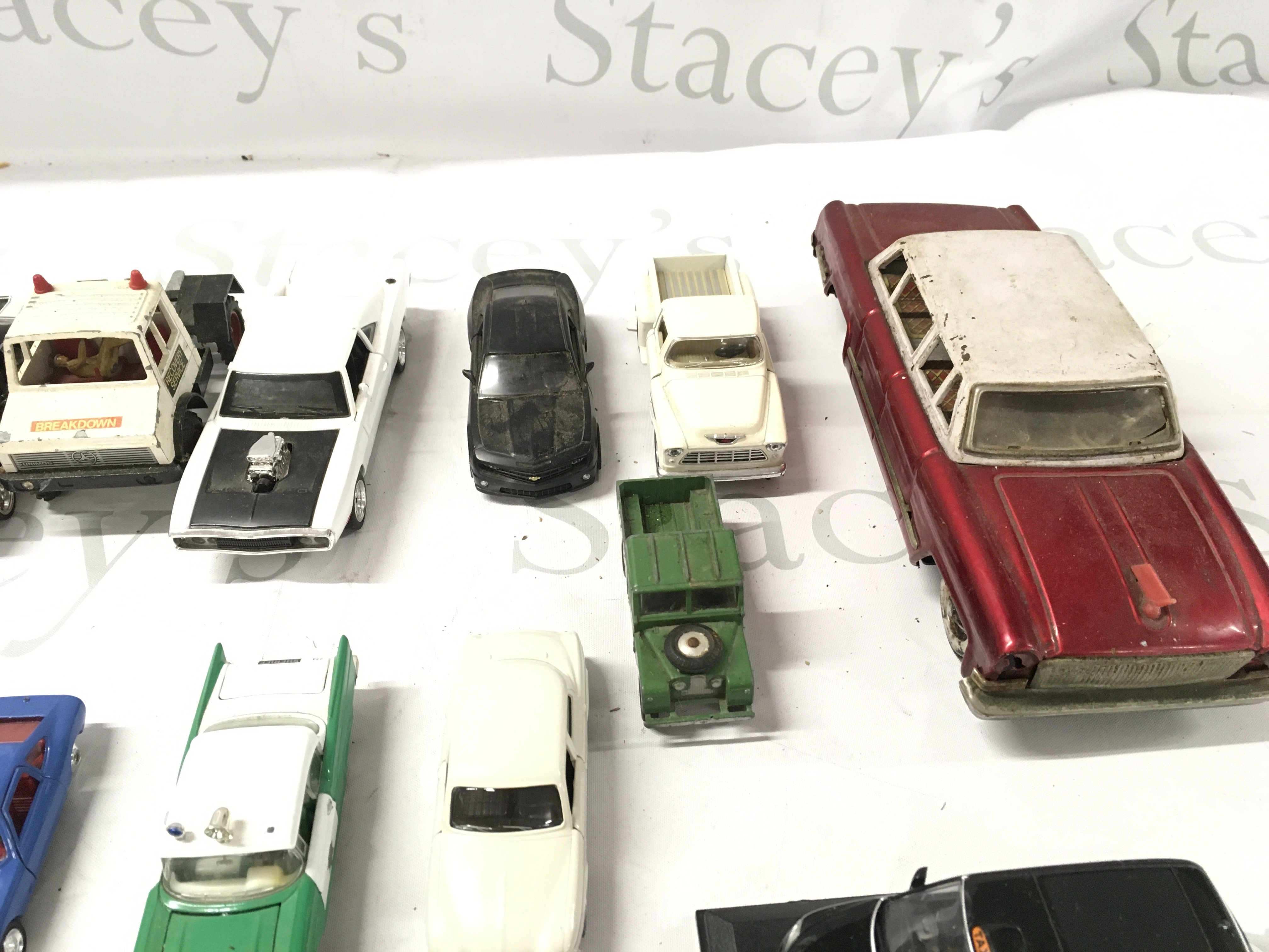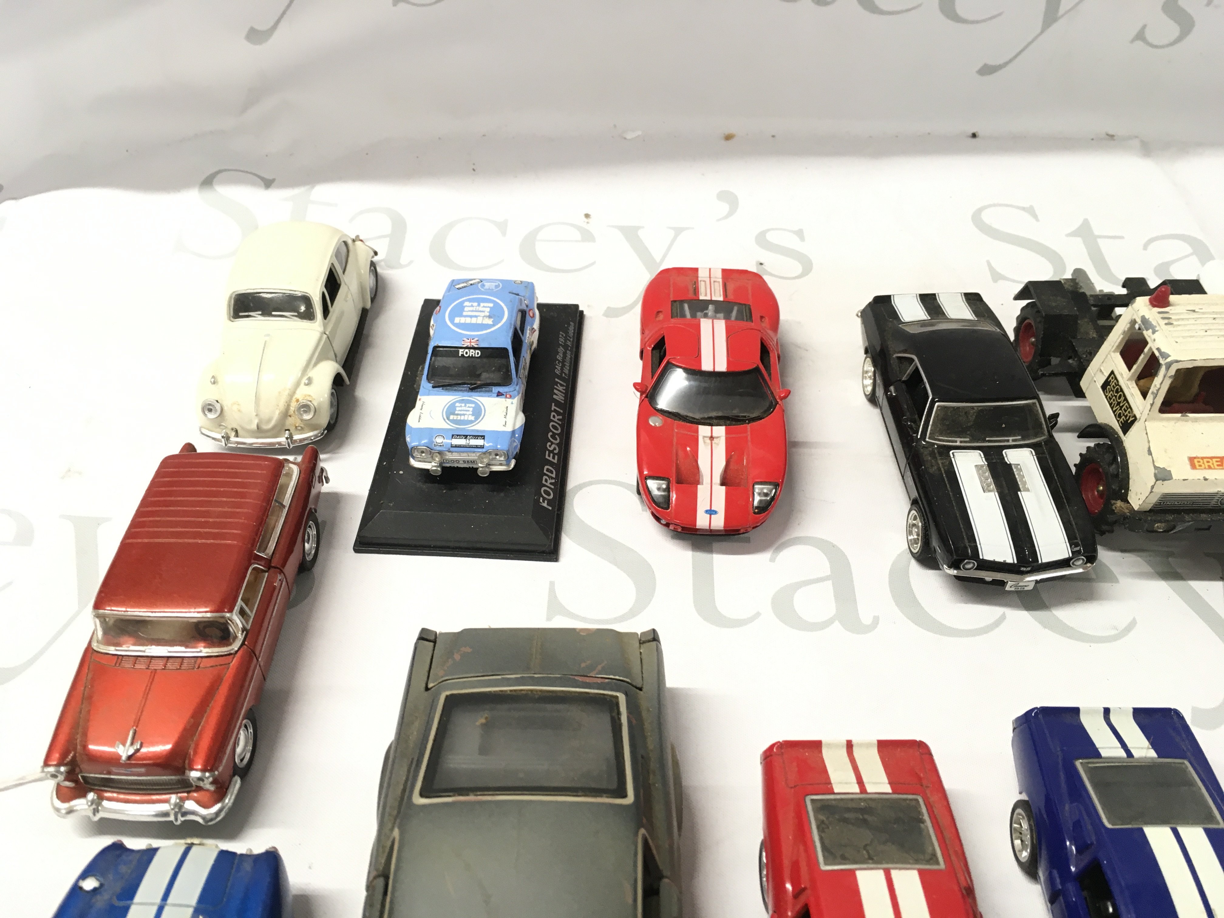 An assorted collection of model cars, mostly diecast but includes 1 tin friction model and a Willys Dauphine. No reserve
