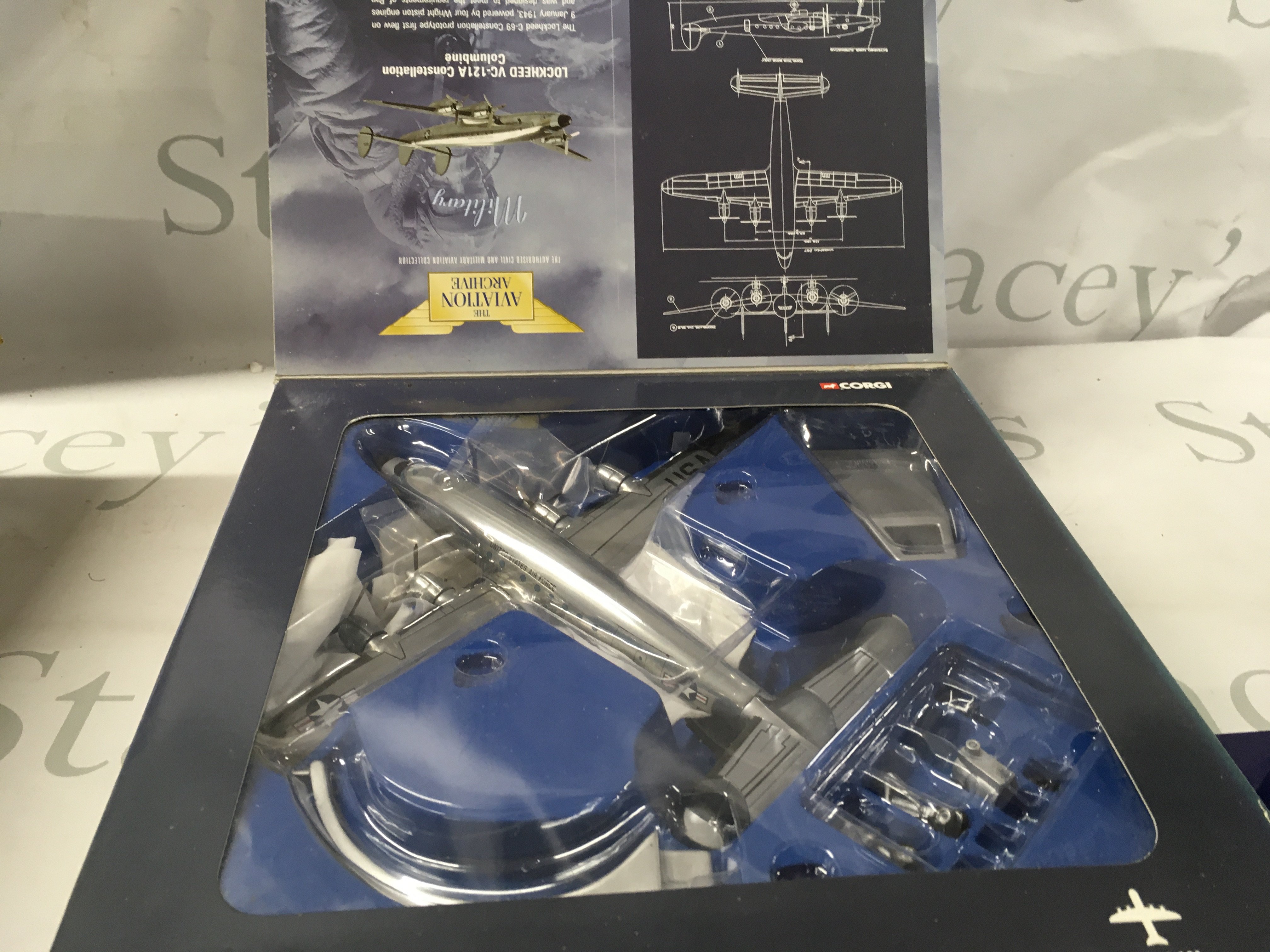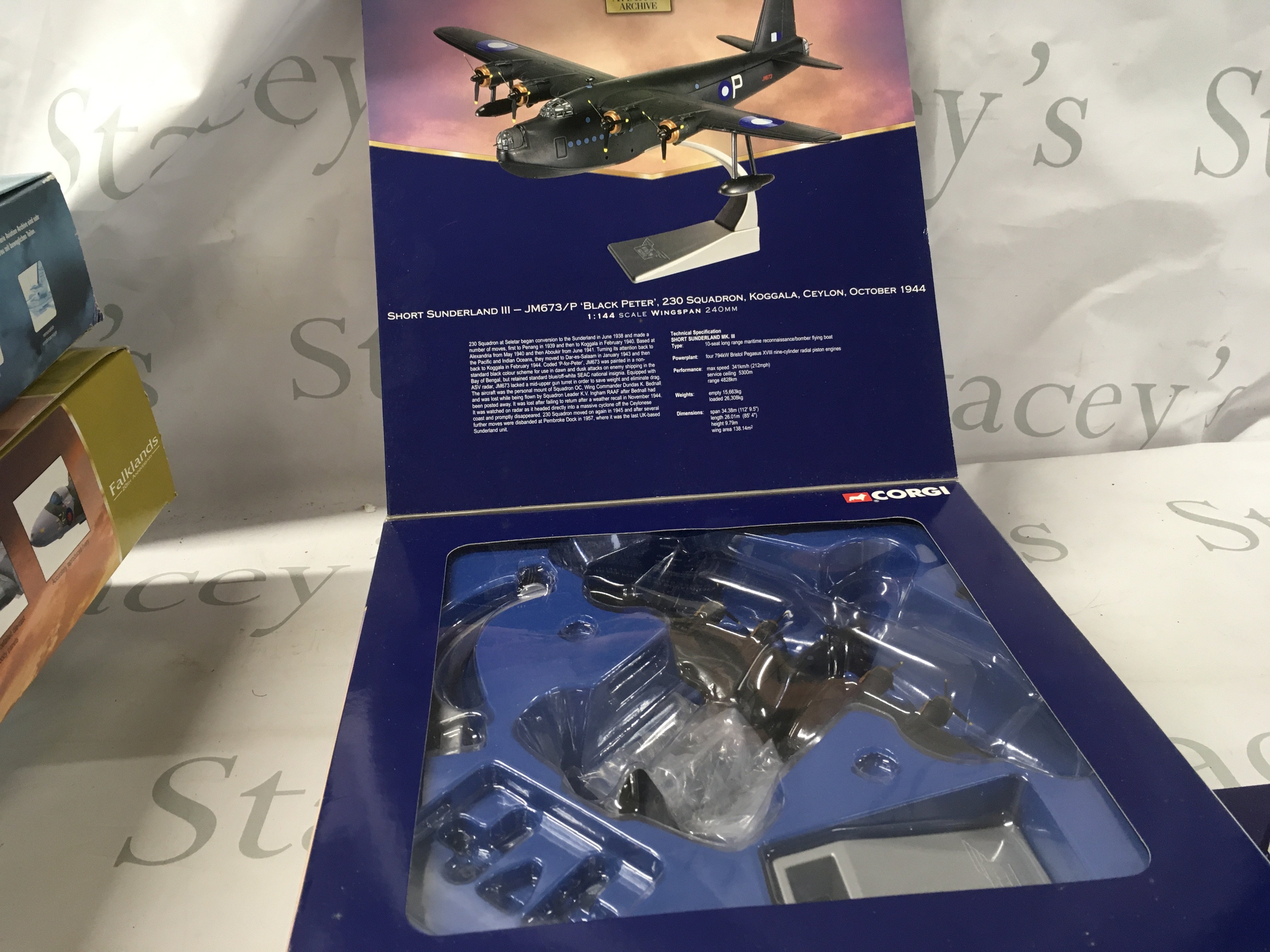 A Collection of Boxed Corgi Aviation Archive model planes including AA31703 Short Sunderland….AA30402 Lockheed Constellation..AA32406 Sea Harrier…AA33802 Thunderbolt…AA31902 Spitfire….AA31502 Bristol Britannia. No reserve