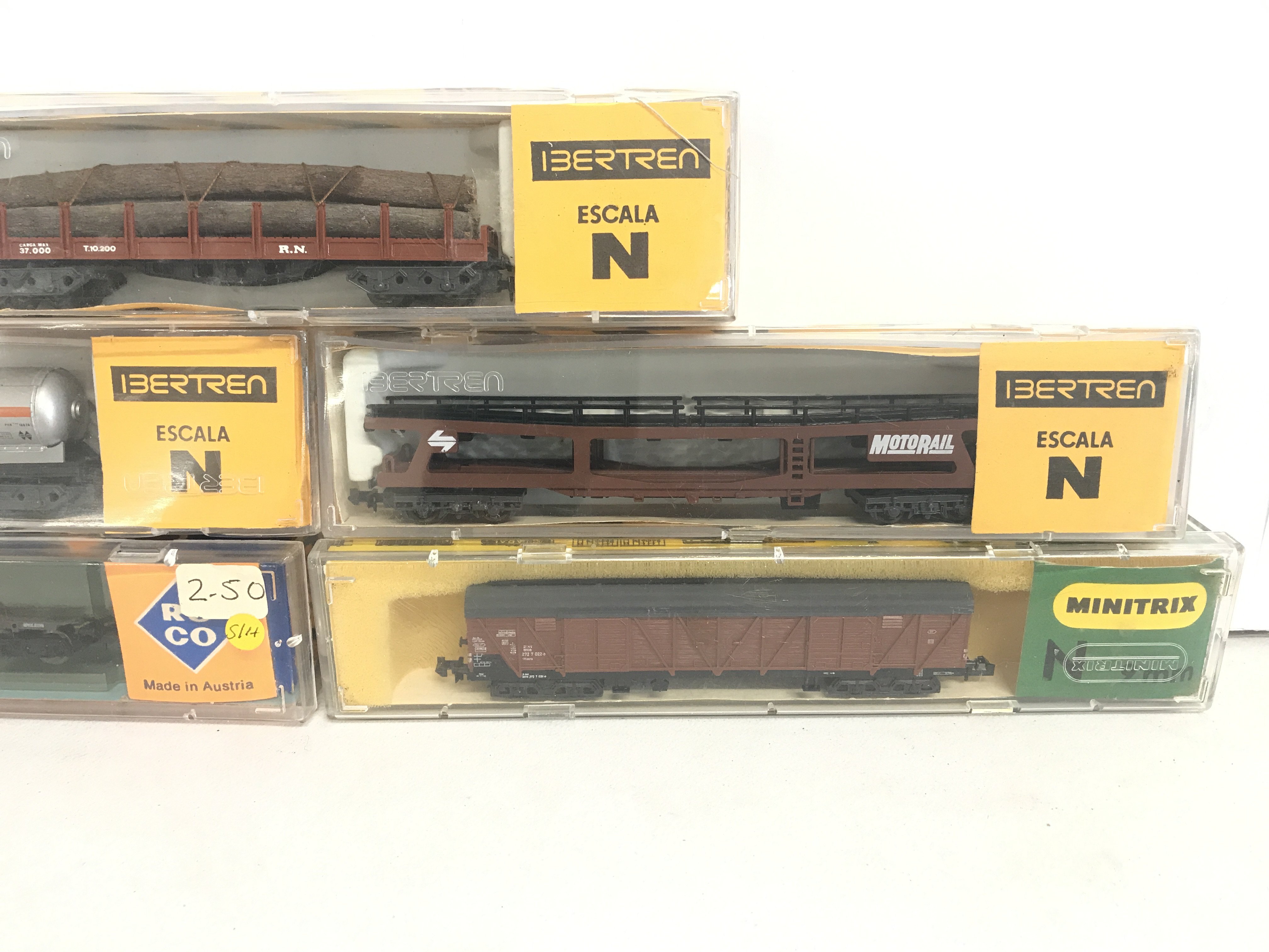 5 Boxed N Gauge Wagons Including Inertren. Minitrix And Roco. No Reserve.