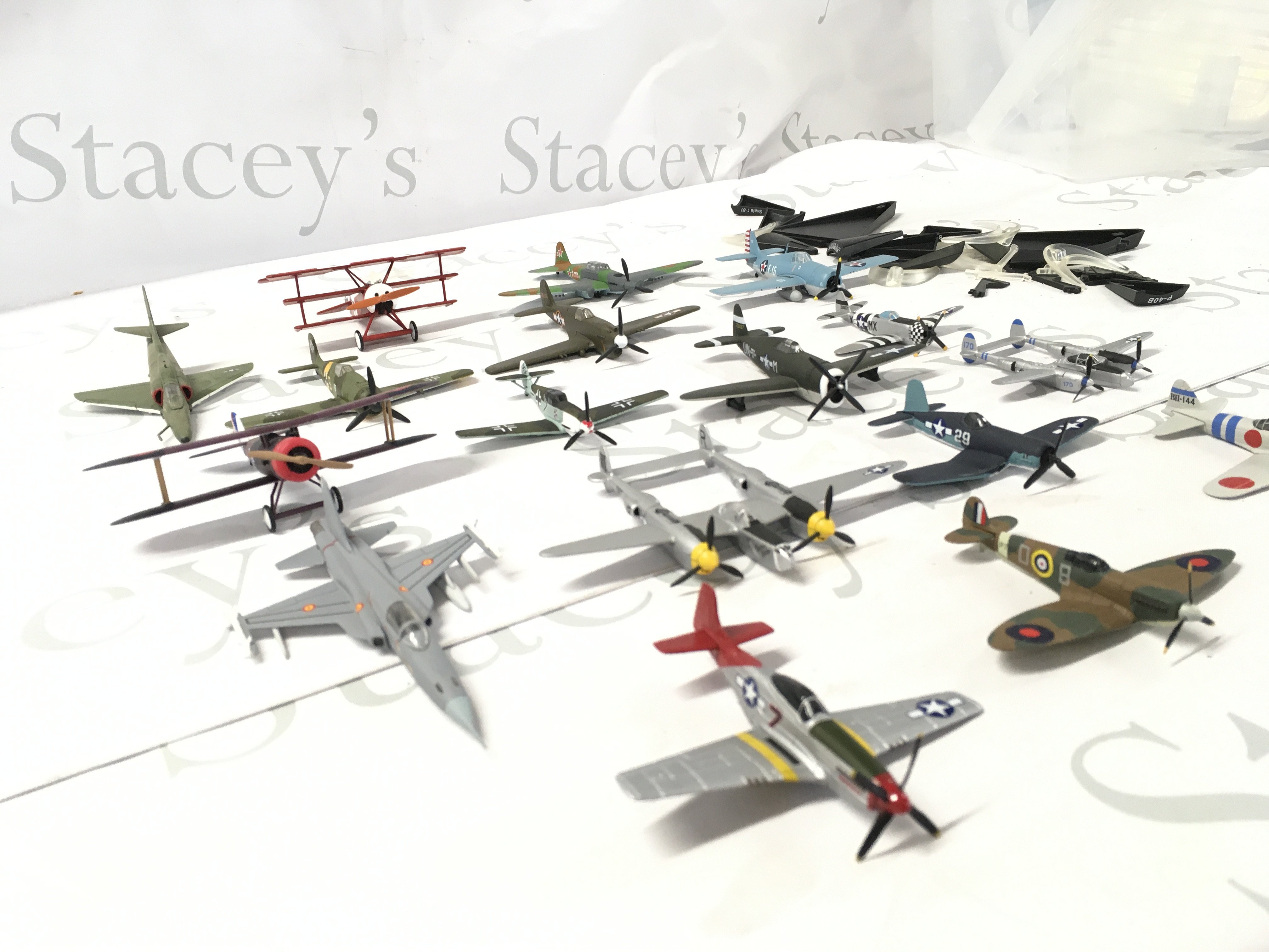 A small collection of metal model military aircraft. Stands included. No reserve.